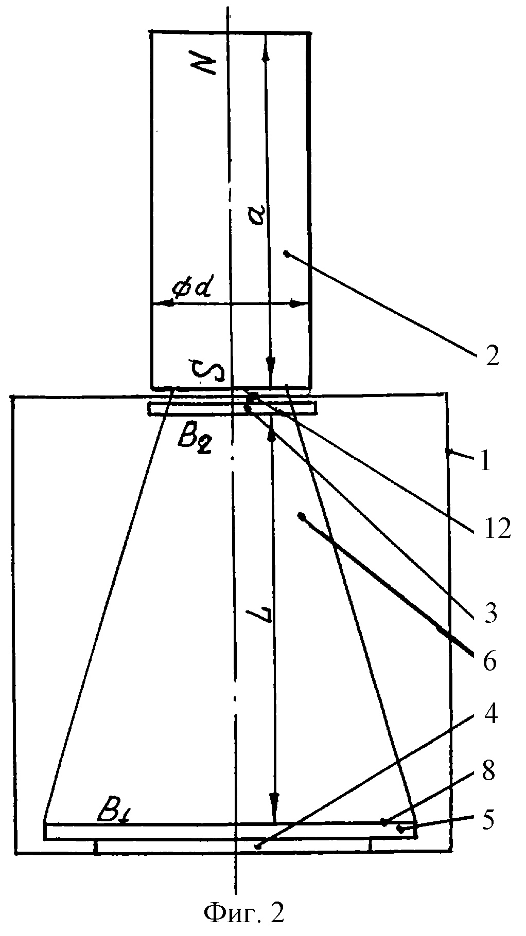 Усовершенствование заключается в осуществлении формирования магнитного поля равномерно возрастающим в сторону размещения устройства регистрации в виде сходящихся магнитных силовых линий. Для