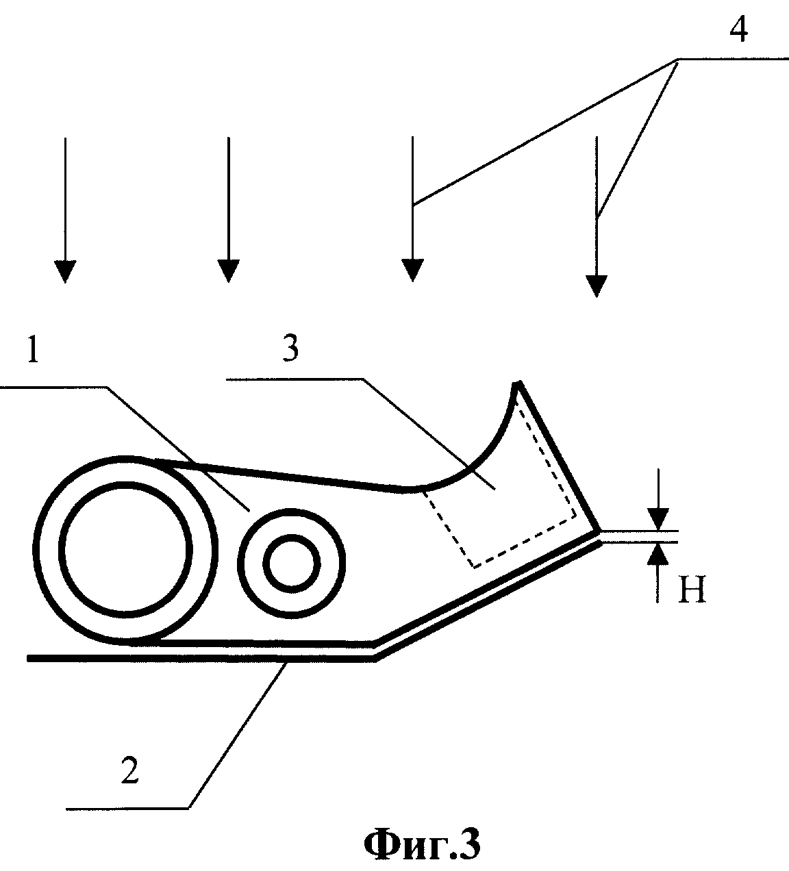 и ребром кронштейна 1. А при непосредственном контакте кассеты 2 с пленкой и "корыта" 3 кронштейна 1 (при повторном просвечивании) расстояние Н˜0 (фиг.3), поэтому h=2Н·sinθ˜