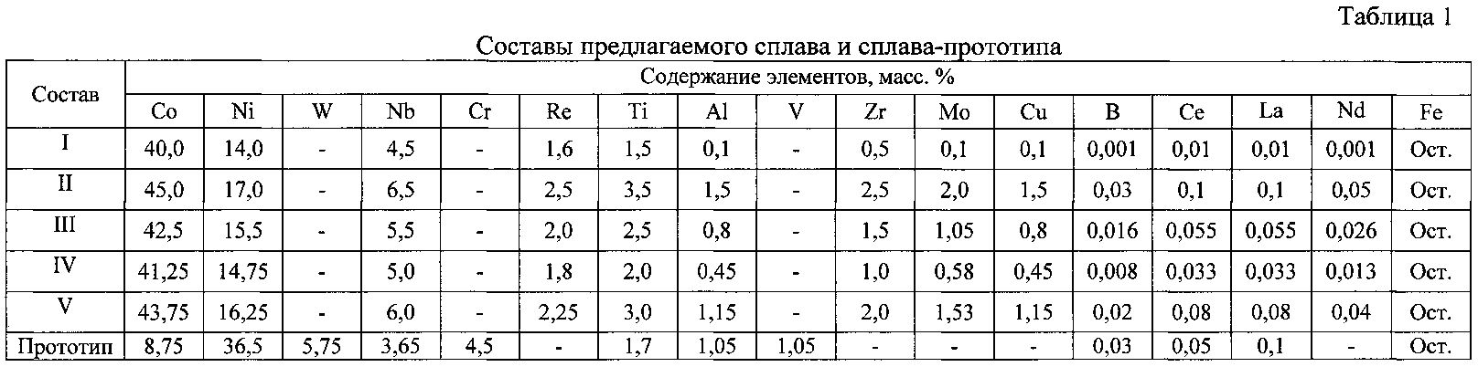 Кобальт 40-45 Никель 14-17 Ниобий 4,5-6,5 Рений 1,5-2,5 Молибден 0,1-2,0 Цирконий 0,5-2,5 Алюминий 0,1-1,5 Титан 1,5-3,5 Медь 0,1-1,5 Бор 0,001-0,03 Неодим 0,001-0,05 Церий 0,01-0,1 Лантан 0,01-0,1 Железо остальное