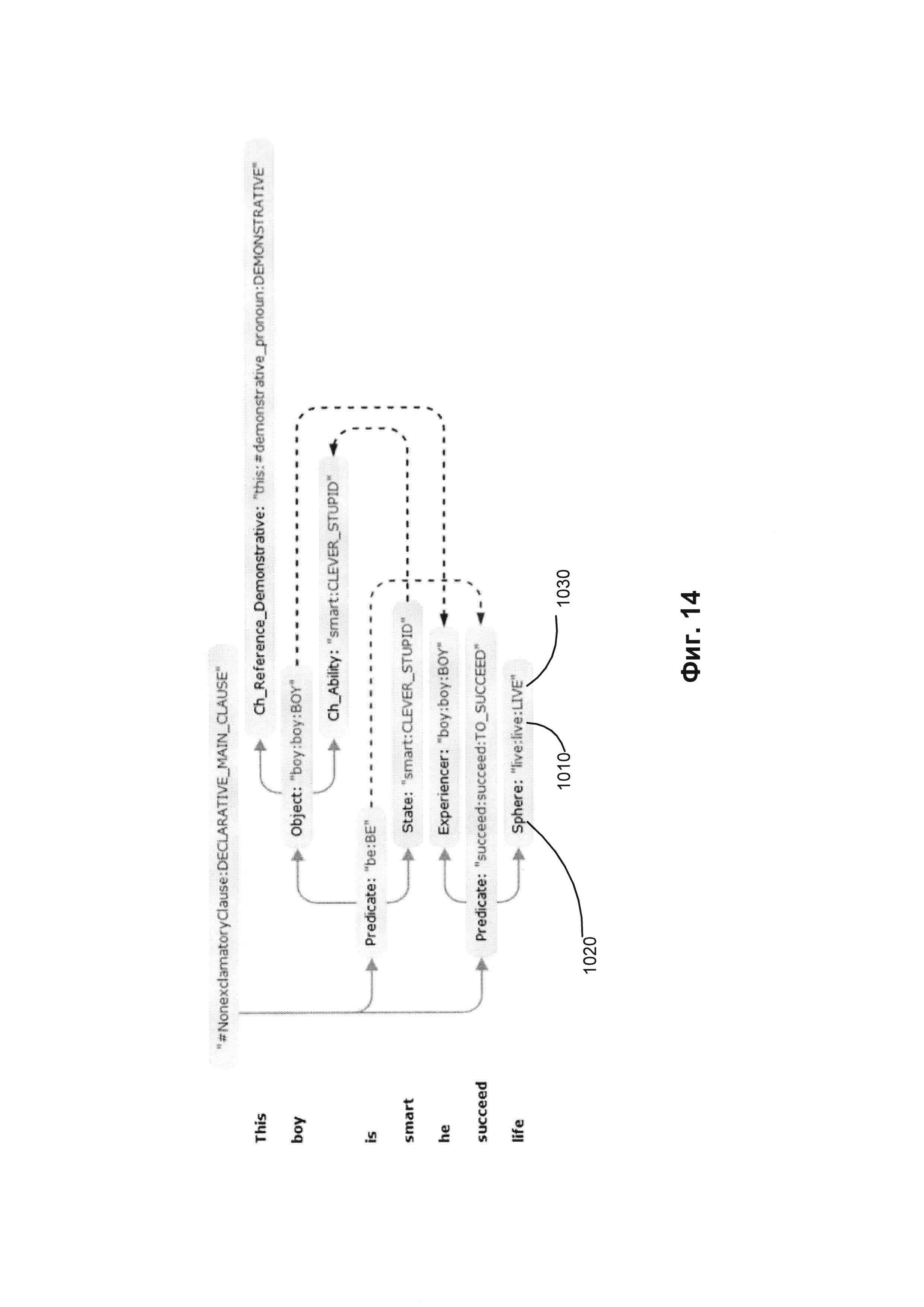 Изобретение относится к системам и способам обработки естественного языка. Техническим результатом является повышение точности выполнения классификации текстов, в том числе на различных языках. В способе классификации текстов на естественном языке семантико-синтаксический анализ текста на естественном языке для создания семантической структуры, включающей набор семантических классов. Связывают первый семантический класс с первым значением, отражающим значение некоторого атрибута семантического класса. Выявляют второй семантический класс, связанный с первым семантическим классом заданными семантическими отношениями, и связывают его со вторым значением, отражающим указанный атрибут семантического класса. При этом второе значение определяется применением заданной трансформации к первому значению. Вычисляют признак текста на естественном языке на основе первого значения и второго значения и определяют с помощью модели классификатора с помощью вычисленного признака текста степени соотнесения текста на естественном языке с конкретной категорией из заданного набора категорий. 3 н. и 17 з.п. ф-лы, 15 ил.