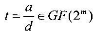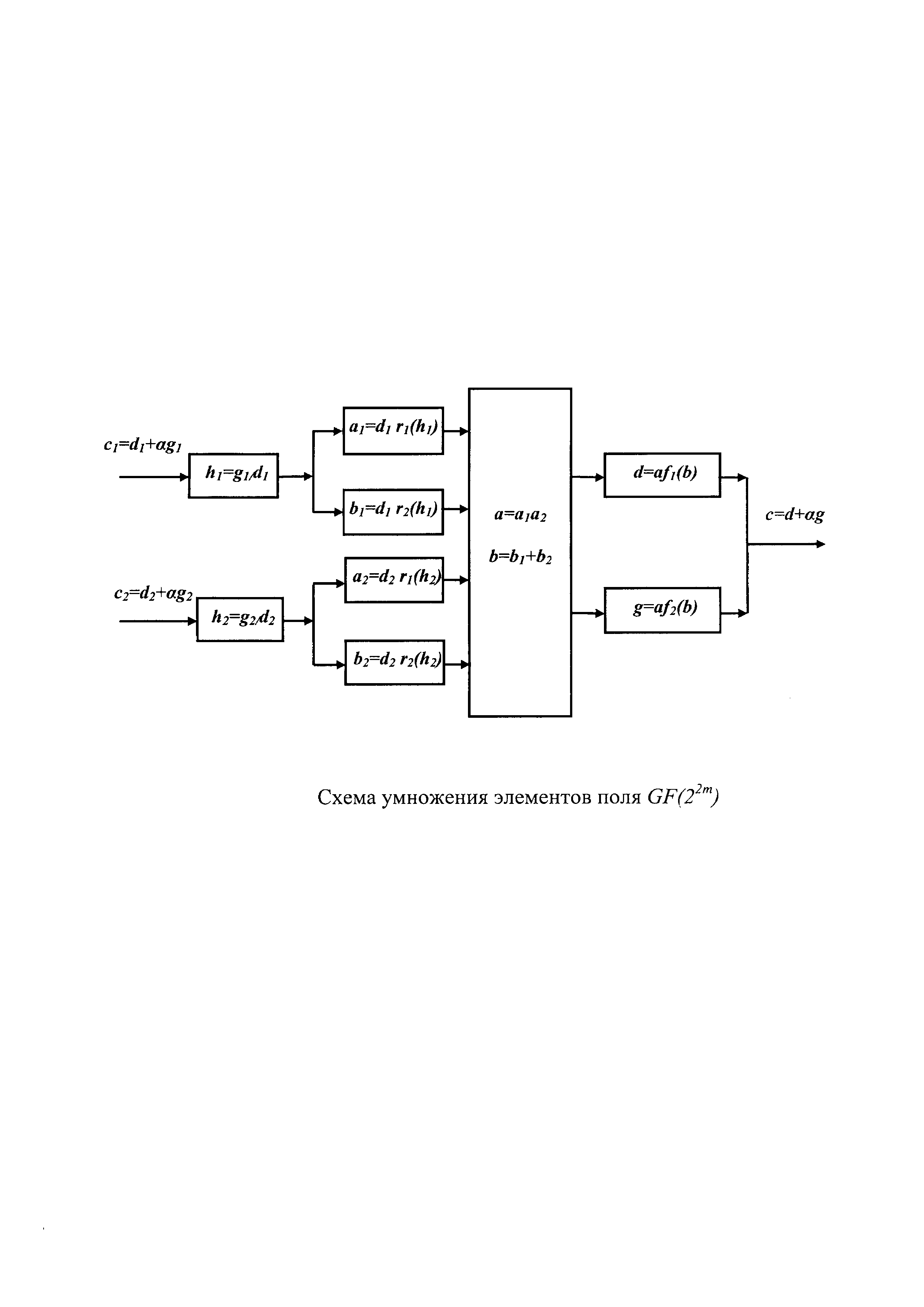 Изобретение относится к области вычислительной техники и может быть использовано при создании специализированных вычислителей для кодирования и декодирования информации, защищенной помехоустойчивым кодом. Одним из основных путей повышения помехоустойчивости передачи сообщений по каналам связи с ошибками является применение помехоустойчивого кодирования. Для кодирования и декодирования алгебраических помехоустойчивых кодов Боуза-Чоудхури-Хоквинхема (БЧХ-коды), Рида-Соломона, Гоппы и других необходимо выполнение арифметических операций с элементами конечных полей. Структура конечных полей отличается от структуры обычных бесконечных числовых полей, таких как поля рациональных, действительных и комплексных чисел. Выполнение умножения и деления элементов конечных полей отличается от умножения и деления обычных чисел и часто вызывает затруднения. Для умножения и деления элементов конечных полей, особенно при большой их разрядности, требуется выполнение большого числа команд и наличие большого объема памяти для хранения таблиц логарифмов и антилогарифмов (таблиц индексов и антииндексов). Предлагаемый способ основан на использовании аддитивной и мультипликативной формы представления элементов конечных полей в виде соответственно суммы и произведения элементов подполей. Умножение и деление элементов конечных полей выполняется для мультипликативной формы их представления и сводится к умножению и делению элементов подполей, что и позволяет уменьшить сложность способа. При этом уменьшается объем памяти, требуемой для умножения и деления элементов конечных полей, и тем самым сокращаются необходимые вычислительные ресурсы. Способ может использоваться в расширениях конечных полей, содержащих подполя, например в полях Галуа GF(22m), и других, число элементов в которых разлагается на простые множители. Известен способ умножения и деления элементов конечных полей, при котором для умножения элементов конечных полей сначала оба сомножителя представляют в виде полиномов с двоичными коэффициентами, затем вычисляют произведение этих двух полиномов и определяют остаток от деления произведения на порождающий полином поля, для деления элементов конечных полей сначала по таблице обратных элементов конечного поля находят обратный элемент делителя, а затем умножают делимое на этот обратный элемент [Касами Т., Токура Н., Ивадари Е., Инагаки Я. Теория кодирования. Пер. с японского А.В. Кузнецова. - М.: - Мир. - 1978. - с. 72-78]. Недостатком этого способа является его большая сложность из-за большого числа команд, необходимых для вычисления произведения полиномов и остатка от деления произведения на порождающий многочлен конечного поля, а также большой объем памяти для хранения таблицы обратного элемента конечного поля. Наиболее близким к предлагаемому способу является способ (прототип) умножения и деления элементов конечных полей, заключающийся в том, что при умножении элементов конечных полей сначала по таблицам индексов конечного поля находят индексы сомножителей, затем складывают эти индексы по модулю n-1, где n - число элементов в конечном поле, и по таблице антииндексов находят произведение. При делении элементов конечных полей сначала по таблицам индексов конечного поля находят индексы делимого и делителя, затем вычитаю