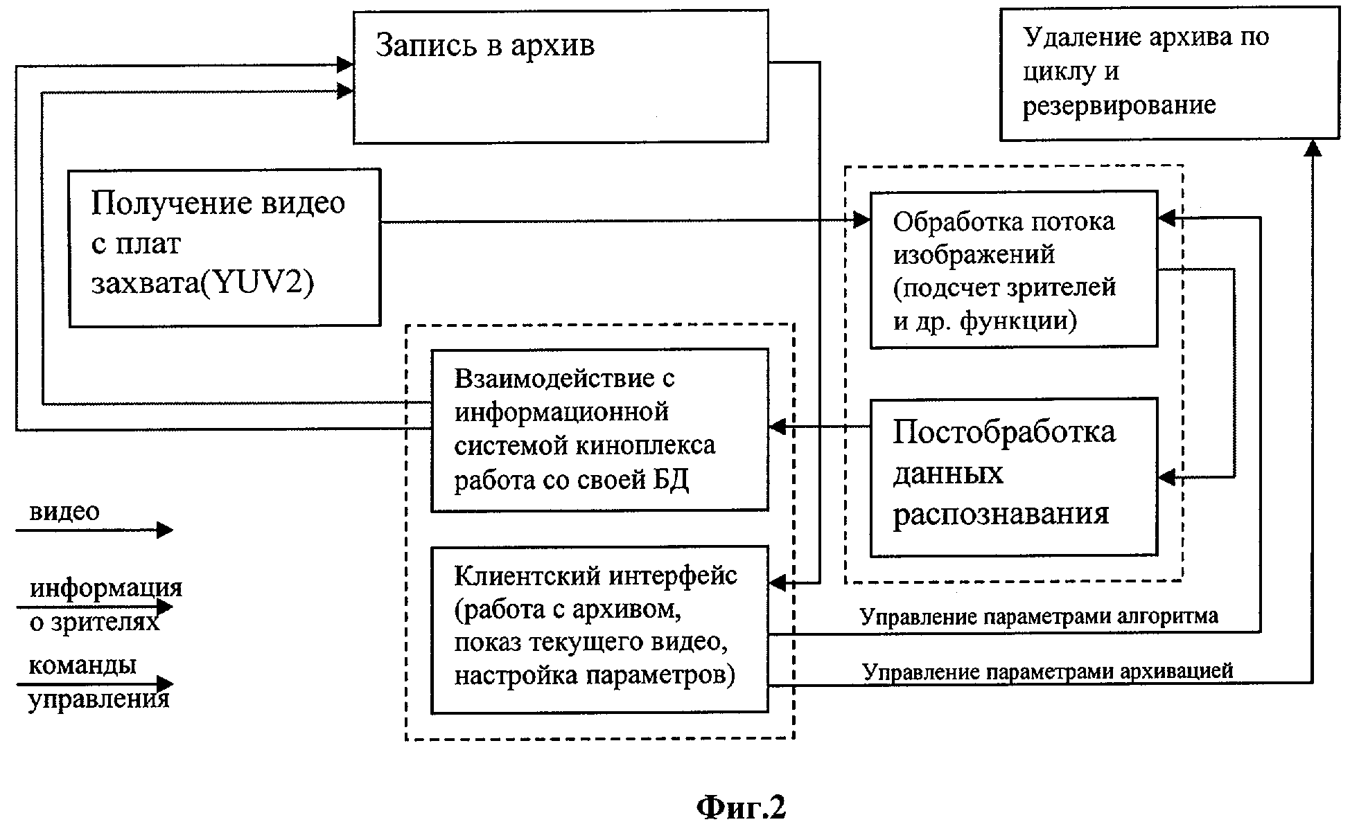 поступающих из-за пределов системы видеосигнале, командах управления и информации о зрителях): - получение видеосигнала с видеокамер на платы захвата (YUV2) видеосигнала, установленных