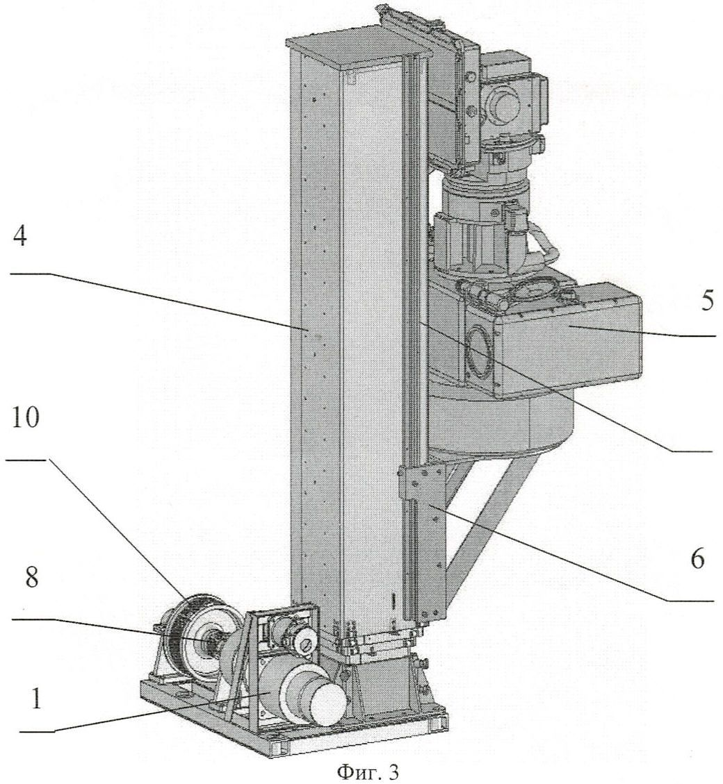 1. Телескопическая мачта, содержащая неподвижное колено с установленной на нем лебедкой, содержащей барабан, и подвижные колена, кинематически связанные системой тросов и роликов с барабаном и между собой, отличающаяся тем, что в состав телескопической мачты введена подвижная площадка для крепления полезной нагрузки, которая установлена с возможностью перемещения вдоль наружной поверхности последнего подвижного колена и кинематически связана с барабаном через систему тросов и роликов таким образом, что она перемещается от нижнего положения в сложенном состоянии телескопической мачты до верхнего среза последнего подвижного колена при подъеме телескопической мачты, при этом неподвижное и подвижные колена телескопической мачты образуют обратную пирамиду и на внешней поверхности последнего подвижного колена установлены направляющие для перемещения подвижной площадки. 2. Телескопическая мачта по п.1, отличающаяся тем, что в состав лебедки введены шкив и трос принудительного опускания подвижных колен телескопической мачты, причем трос принудительного опускания подвижных колен одним концом закреплен на верхнем подвижном колене, а вторым концом соединен со шкивом, установленным на одной оси с барабаном и имеющим размер d·n, где d - диаметр барабана, а n - количество подвижных колен.