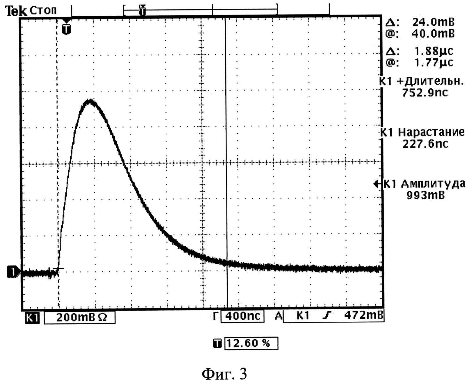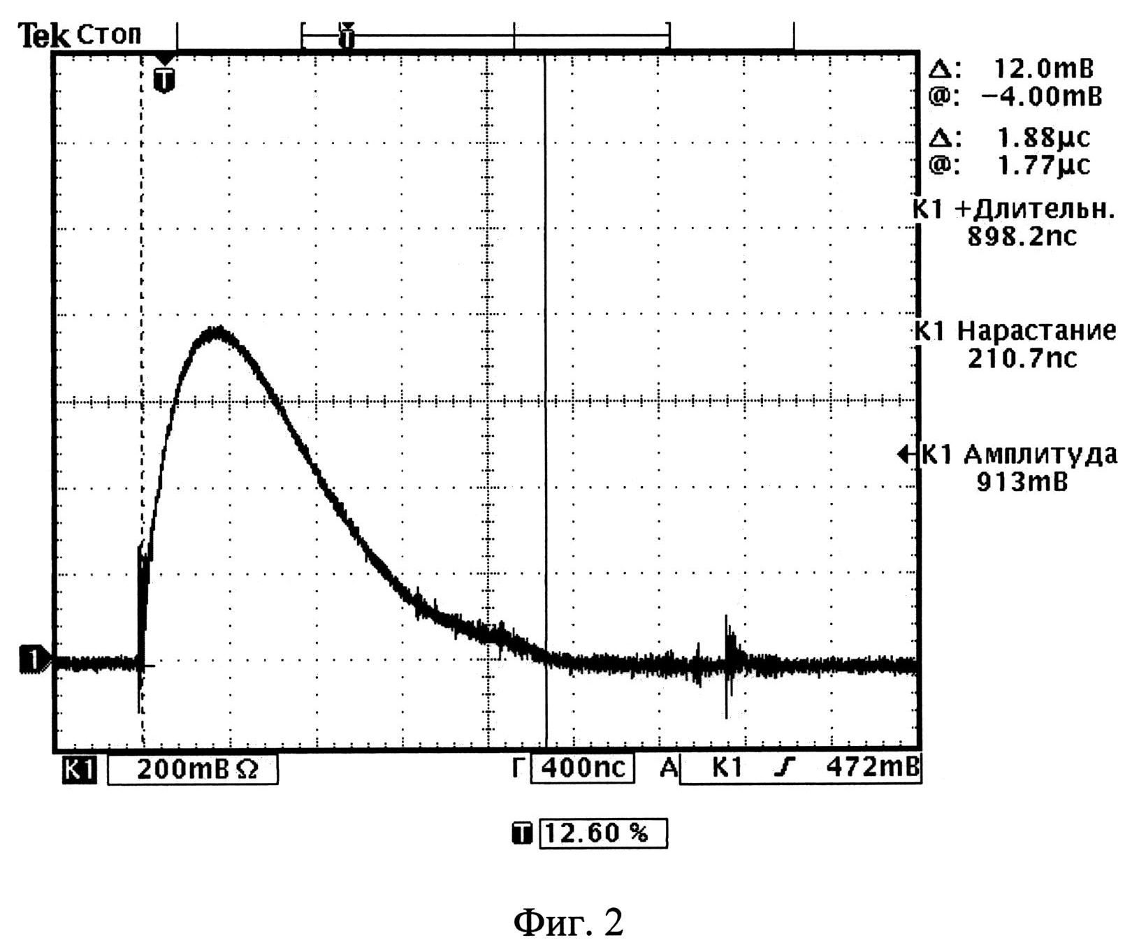 Изобретение относится к области измерительной техники и может быть использовано при исследованиях однократных быстропротекающих физических процессов, сопровождаемых многоканальными измерениями интервалов времени между электрическим сигналом, инициирующим физический процесс в исследуемом объекте, и сигналами, формируемыми при замыкании электроконтактных датчиков (ЭКД) в ходе развития процесса. В простейшем случае ЭКД представляет центральный проводник, заключенный в коаксиальный корпус и изолированный от него. Центральный проводник ЭКД подсоединяют к жиле длинной кабельной линии канала измерения интервалов времени, которую перед проведением измерений заряжают статическим напряжением отрицательной полярности, корпус ЭКД подсоединяют к оплетке кабельной линии. При воздействии на ЭКД динамической нагрузки происходит замыкание центрального проводника на корпус ЭКД, и по кабельной линии распространяется положительный перепад напряжения, поступающий на вход устройства формирования сигналов, в котором перепад напряжения преобразуется в сигнал положительной полярности. С выхода устройства формирования сигналов этот сигнал подают на информационный вход устройства измерения интервалов времени, на пусковой вход которого приходит сигнал, формируемый одновременно с началом исследуемого физического процесса, и проводят измерение интервала времени между началом исследуемого процесса и срабатыванием ЭКД [1]. Количество ЭКД и, соответственно, каналов измерения интервалов времени при исследованиях однократных быстропротекающих процессов в большинстве экспериментов находится в пределах от нескольких единиц до нескольких сотен. При замыкании ЭКД, подсоединенного к кабельной линии с волновым сопротивлением 50 Ом, заряженной до напряжения минус 200 В (максимального по абсолютной величине напряжения зарядки в методике измерений интервалов времени, применяющей ЭКД), по линии распространяется электрический сигнал с амплитудой тока 4 А, таким образом, суммарный ток в измерительных каналах при наличии 100 ЭКД составляет величину 0,4 кА. Перед проведением измерений проводят проверку функционирования измерительных каналов, позволяющую убедиться в готовности их к измерениям, для чего на входе каждого измерительного канала вручную кратковременно замыкают жилу заряженной кабельной линии измерительного канала, от которой на время проверки отсоединяют центральный проводник ЭКД, с общим проводом (оплеткой кабеля), имитируя тем самым сигнал, поступающий на вход измерительного канала при срабатывании ЭКД. О функционировании измерительного канала судят по характеристикам электрического сигнала на выходе устройства формирования сигналов, который регистрируют с помощью осциллографа. Указанный способ формирования сигнала, имитирующего сигнал на входе измерительного канала при срабатывании ЭКД, применялся при проведении исследований, приведенных в [1], и принят за прототип. Недостатком этого способа формирования сигналов является то, что устройства измерения интервалов времени между началом исследуемого процесса и замыканием ЭКД, входящие в состав измерительных каналов, не включены в число контролируемых устройств при проверке функционирования измерительных каналов перед проведением измерений, поскольку для их 