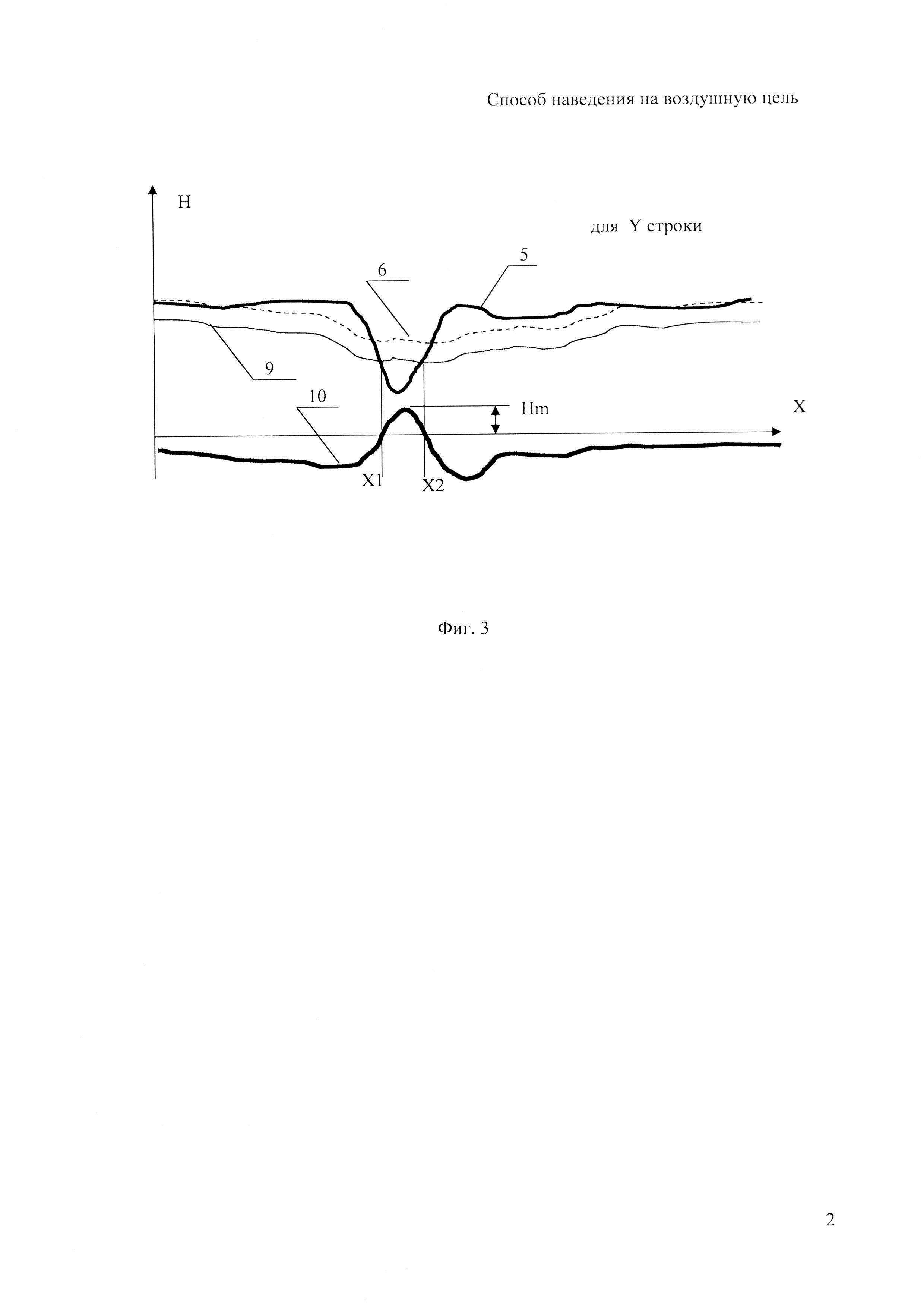 Изобретение относится к средствам наведения на воздушную цель. Способ предназначен для наведения носителя с оптической головкой самонаведения на цель. Свет от цели в воздухе через объектив проецируют на приемник. Построчно регистрируют и записывают сигналы от пикселей фоточувствительной матрицы. Начиная с первой строки Y матрицы, обрабатывают сигналы от пикселей, одновременно с обработкой сигналов от пикселей в текущей строке записывают сигналы от пикселей в следующей строке. Усредняют значения Н сигналов от каждого пикселя. Полученные значения Н преобразуют в зависимости от яркости цели относительно яркости окружающего ее фона и определяют разность Н усредненного и не усредненного сигналов. Начиная с начала текущей строки определяют номер пикселя X1, для которого значение Н становится положительным, максимальное положительное значение Hm, номер пикселя Х2, после которого значение Н в текущей строке не является положительным, номер текущей строки Y, записывают в память X1, Hm, X2,Y. Обрабатывают следующую строку матрицы, определяют в ней значения X1, Hm, X2,Y. В случае превышения величины Hm значения, записанного для предыдущей строки, перезаписывают в память новые значения X1, Hm, X2,Y, по окончании обработки сигналов всех строк матрицы определяют координаты цели как (Х1+Х2)/2 и Y и выдают соответствующие управляющие сигналы на исполнительные устройства носителя. Технический результат заключается в понижении вычислительной нагрузки устройства обработки сигнала, уменьшении количества операций сохранения и передачи массивов данных, ускорении обработки изображений, получаемых ОГС одновременно с приемом изображений, повышении стойкости работы к цветомаскировке цели и выбросу световых ловушек. Это позволяет решить задачу ускорения поиска воздушного объекта, повышения устойчивости к применению маскировки цели, выдачи сигнала при достижении заданной дистанции до цели известного размера. 8 з.п. ф-лы, 3 ил.