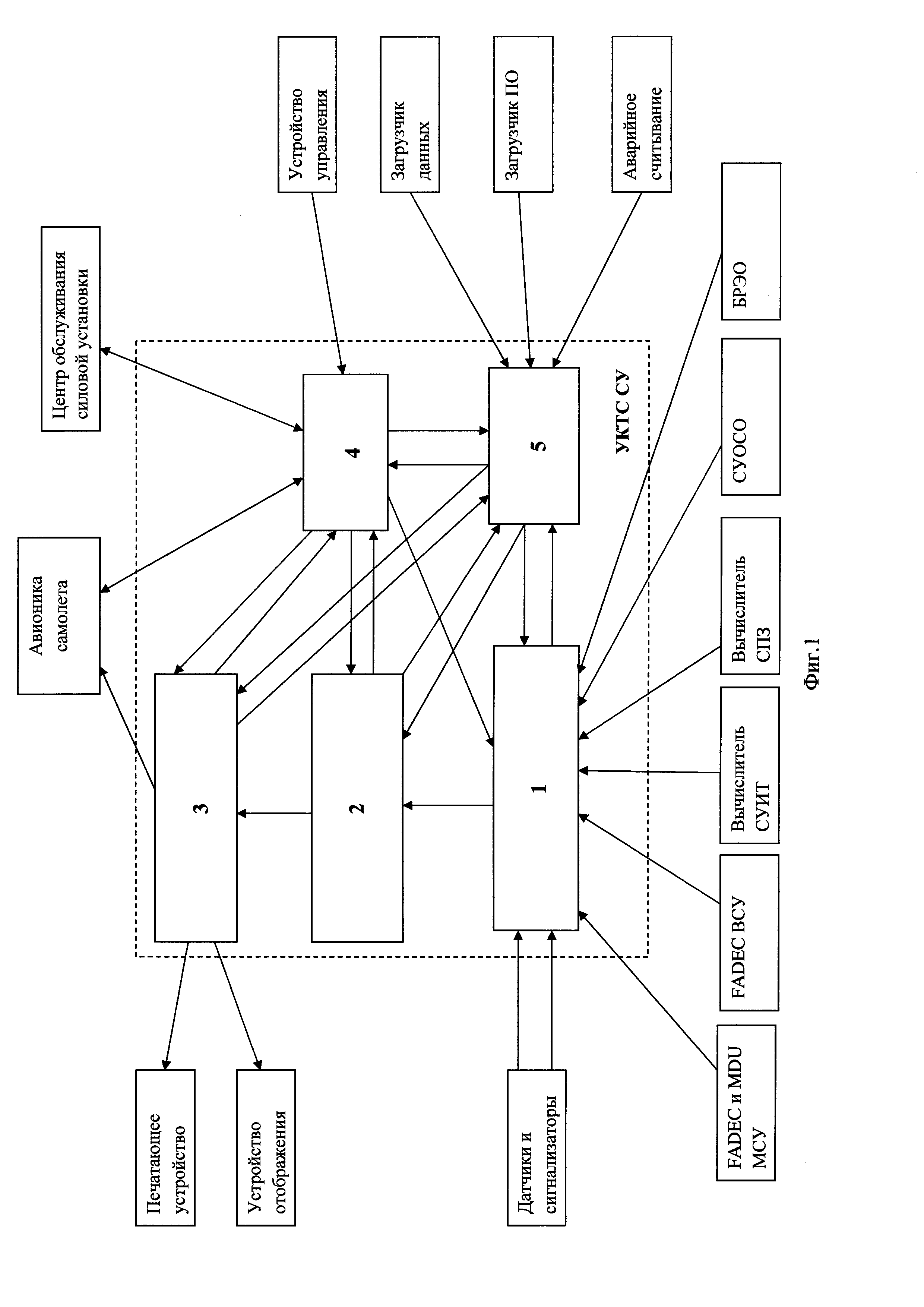 1. Устройство контроля технического состояния силовой установки, содержащее модуль обработки и анализа данных, регистратор параметров и диагностических данных, отличающееся тем, что дополнительно содержит модуль документирования и отображения данных, модуль интерфейсов, модуль контроля и изменения программного обеспечения (ПО), при этом модуль обработки и анализа данных выполнен с возможностью подключения к самолетным системам и оборудованию, причем каждый из указанных модулей и регистратор параметров и диагностических данных подключены к сети контроллеров, при этом, первый вход и второй выход модуля обработки и анализа данных соединены соответственно с первым выходом и третьим входом модуля контроля и изменения ПО, второй вход модуля обработки и анализа данных соединен со вторым выходом модуля интерфейсов, а первый выход модуля обработки и анализа данных соединен с первым входом регистратора параметров и диагностических данных, второй вход и второй выход которого соединены соответственно с первым выходом и четвертым входом модуля контроля и изменения ПО, а третий вход и третий выход регистратора параметров и диагностических данных соединены соответственно с третьим выходом и вторым входом модуля интерфейсов, причем первый выход регистратора параметров и диагностических данных соединен с первым входом модуля документирования и отображения данных, второй вход и второй выход которого соединены соответственно с третьим выходом и вторым входом модуля контроля и изменения ПО, а первый выход и третий вход модуля документирования и отображения данных соединены соответственно с первым входом и четвертым выходом модуля интерфейсов, третий вход и первый выход которого соединены соответственно со вторым выходом и первым входом модуля контроля и измерения ПО. 2. Устройство по п. 1, отличающееся тем, что модуль обработки и анализа данных содержит модуль электропитания, модуль входной аналоговой информации, модуль дискретных интерфейсов, модуль входной информации и модуль процессора, при этом модуль электропитания соединен с системой электроснабжения самолетом (СЭС), модулем входной аналоговой информации и модулем дискретных интерфейсов, а модуль дискретных интерфейсов соединен с сигнализаторами, а также с модулем процессора посредством шины передачи данных, при этом модуль входной информации соединен с устройствами самолетных систем и оборудования посредством последовательного канала информационного обмена, модуль входной информации также соединен с модулем входной аналоговой информации и модулем процессора при помощи шины передачи данных, причем модуль процессора выполнен с возможностью соединения с регистратором параметров и диагностических данных, с модулем контроля и изменения ПО и модулем интерфейсов при помощи сети контроллеров. 3. Устройство по п. 2, отличающееся тем, что модуль входной аналоговой информации содержит устройство электропитания датчиков, устройство интерфейсов датчиков и аналого-цифровой преобразователь, соединенные между собой, при этом устройство электропитания датчиков соединено с модулем электропитания, устройство интерфейсов датчиков соединено с датчиками, а аналого-цифровой преобразователь соединен с модулем входной информации при помощи шины передачи данных. 4. Ус