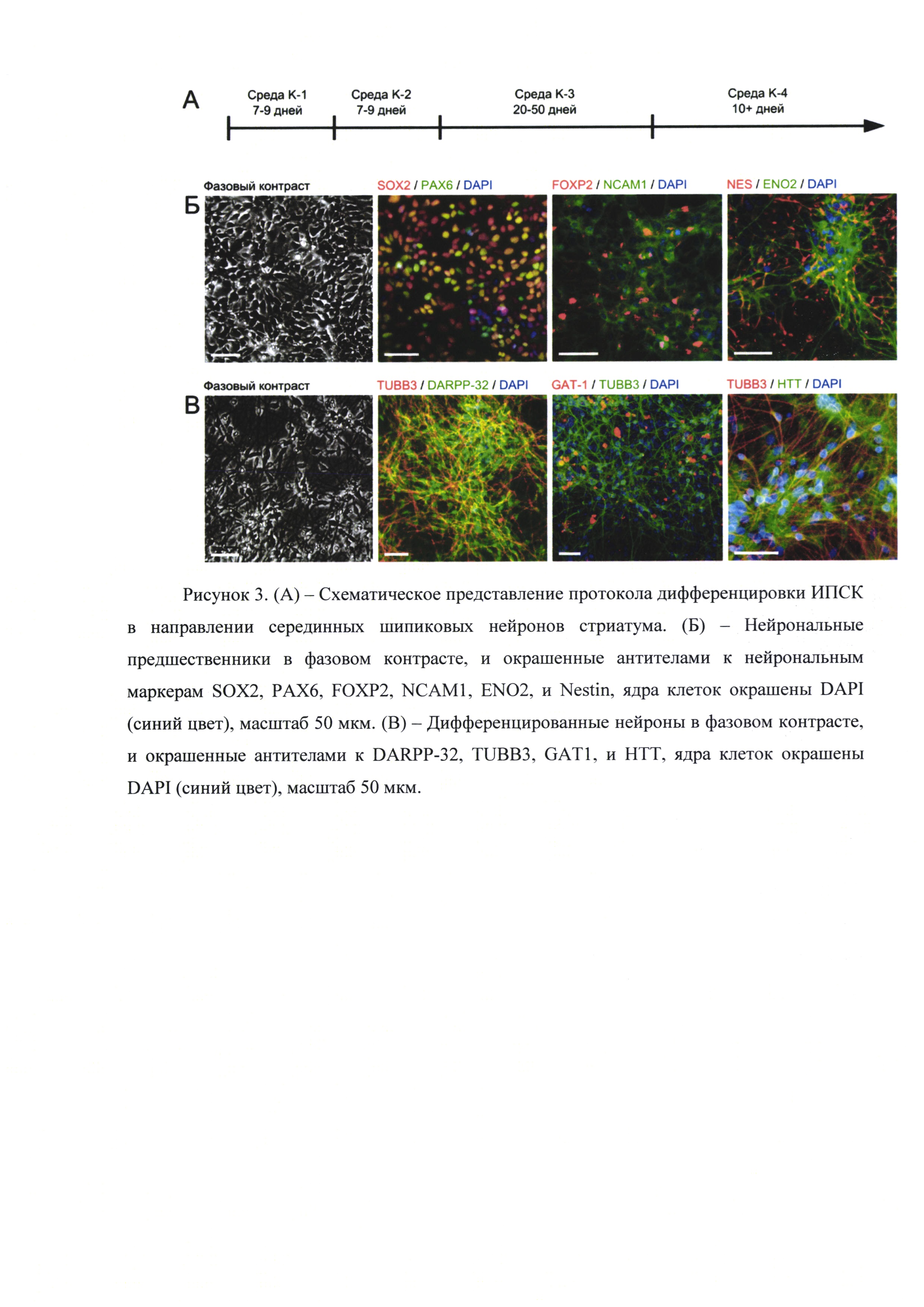Изобретение относится к способу получения белково-пептидной композиции с ноотропными свойствами и включает в себя: забор биоптата кожи, получение культуры фибробластов, криоконсервацию культуры фибробластов, размораживание культуры фибробластов, репрограммирование фибробластов для получения индуцированных плюрипотентных стволовых клеток (ИПСК), культивирование ИПСК, криоконсервацию ИПСК, размораживание ИПСК, нейрональную дифференцировку ИПСК, получение белково-пептидного комплекса. Получение белково-пептидного комплекса таким способом позволяет избежать иммунологических конфликтов, развитие которых возможно при использовании пептидных композиций ксеногенного происхождения, полученных из тканей мозга свиней, овец и других животных. Кроме того, использование клеточных культур человека позволит получить белково-пептидную композицию, содержащую белки и пептиды с молекулярной массой до 100 кДа, в которую будут включены не только небольшие пептиды, но и полноразмерные белковые нейрональные ростовые и дифференцировочные факторы. Эффективность действия таких факторов заведомо выше, чем у коротких пептидов, а иммуногенность отсутствует. Использование ИПСК в качестве источника получения белково-пептидной композиции позволяет решить проблему дефицита донорского материала и этические вопросы, возникающие при применении для аналогичных целей эмбрионального материала и культур эмбриональных стволовых клеток человека. 3 ил., 4 пр.