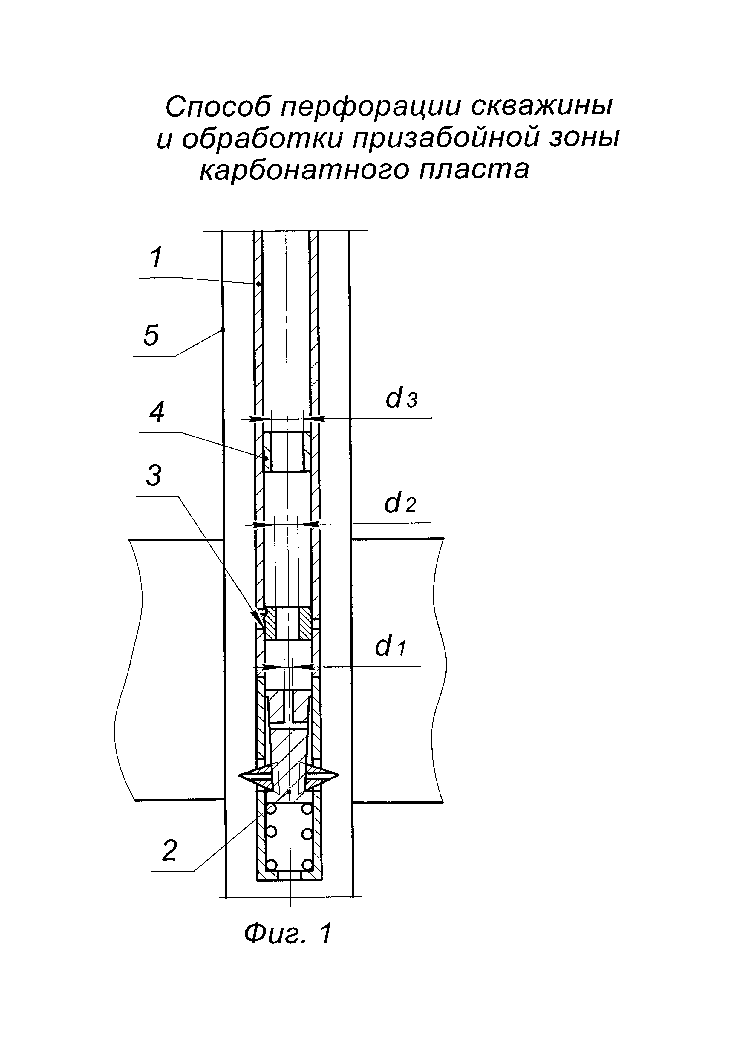 Способ перфорации скважины и обработки призабойной зоны карбонатного пласта, включающий спуск колонны насосно-компрессорных труб - НКТ с гидромеханическим прокалывающим перфоратором на нижнем конце в эксплуатационную колонну, вскрытие эксплуатационной колонны путем подачи в перфоратор под давлением рабочей жидкости с прокалыванием пробойниками перфорационных отверстий в эксплуатационной колонне, размытие каверн путем подачи рабочей жидкости в сформированные перфорационные отверстия эксплуатационной колонны через гидромониторные каналы пробойников перфоратора, отличающийся тем, что на устье скважины на нижний конец колонны НКТ снизу вверх собирают компоновку: гидромеханический прокалывающий перфоратор, циркуляционный клапан и свабный ограничитель, спускают компоновку на колонне НКТ в эксплуатационную колонну, так чтобы пробойники перфоратора находились на 0,2 м выше подошвы продуктивного пласта, затем производят ступенчатую прокалывающую гидромеханическую перфорацию - ПГМП с намывом каверн снизу вверх в продуктивном пласте с шагом 0,2 м, при этом на каждой ступени в колонне НКТ и перфораторе ступенчато создают давление 5,0-8,0-10,0-12,0 МПа с выдержкой 10 сек при достижении каждого значения, при этом пробойники перфоратора прокалывают два симметричных отверстия в эксплуатационной колонне, расположенных под углом 180° в интервале продуктивного пласта, затем, не извлекая пробойники перфоратора из перфорационных отверстий в эксплуатационной колонне, доводят давление закачки до 15,0 МПа и через гидромониторные каналы пробойников перфоратора производят размыв каверн рабочей жидкостью в течение 15 мин, после чего сбрасывают давление в колонне НКТ и перфораторе до нуля, после чего все вышеописанные технологические операции, начиная с создания давления и заканчивая сбросом давления, повторяют в зависимости от высоты продуктивного пласта, по окончании ступенчатой ПГМП с размывом каверн производят обработку пласта и извлекают продукты реакции, для этого доспускают колонну НКТ в эксплуатационную колонну так, чтобы циркуляционный клапан находился посередине продуктивного пласта, далее сбрасывают шар в колонну НКТ, повышают давление в колонне НКТ до открытия отверстий в циркуляционном клапане, затем при открытой затрубной задвижке закачивают в колонну НКТ 15%-ный водный раствор соляной кислоты в объеме из расчета 1,5 м3 на 1 м высоты продуктивного пласта, доводят 15%-ный водный раствор соляной кислоты до интервала вскрытия, закрывают затрубную задвижку и продавливают 15%-ный водный раствор соляной кислоты через каверны в призабойную зону пласта, затем спускают сваб в колонну НКТ и свабированием по колонне НКТ извлекают продукты реакции 15%-ного водного раствора соляной кислоты с породой пласта и осваивают скважину.