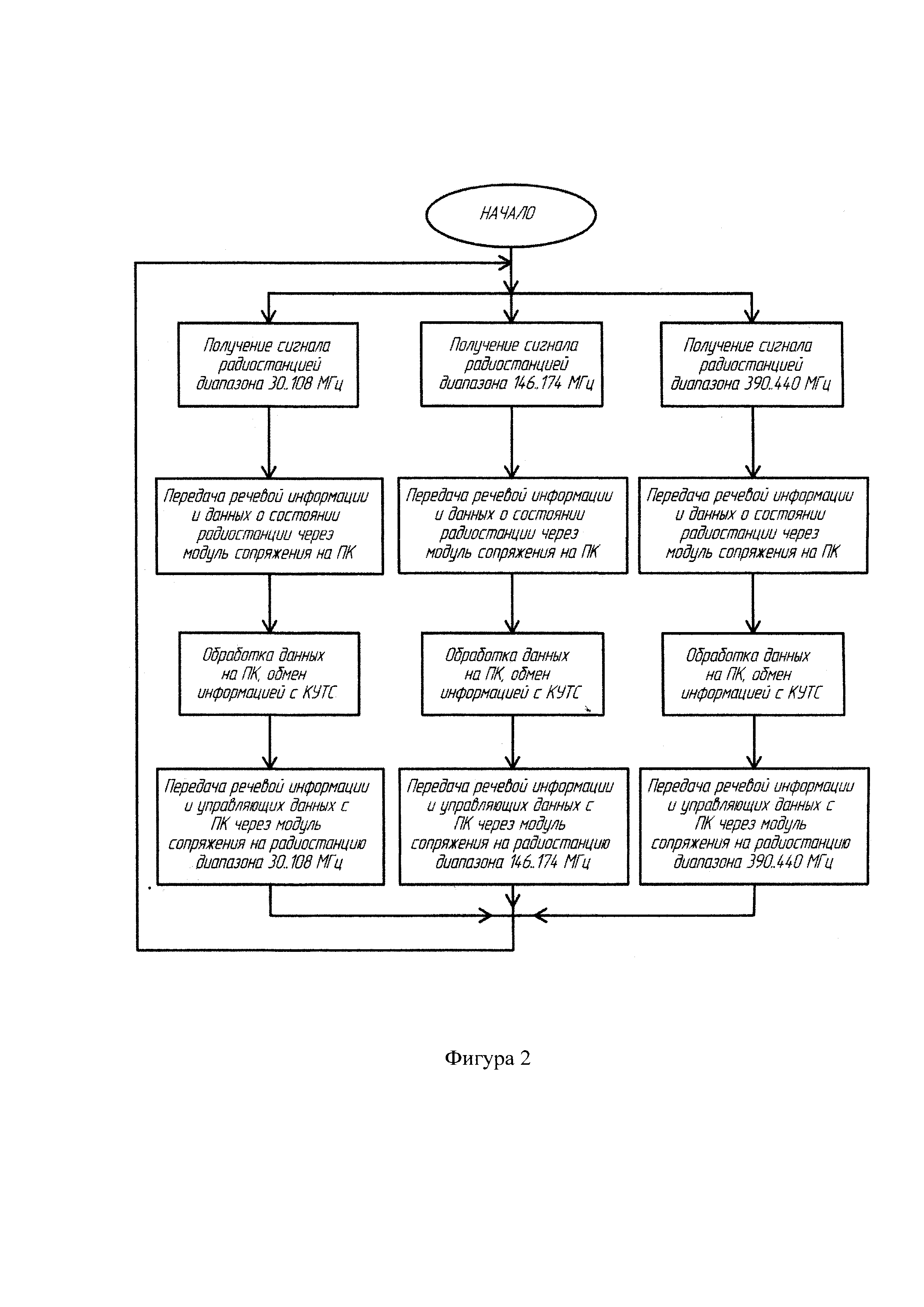 Изобретение относится к области тренажеростроения и может быть использована для обмена речевой информации между виртуальными радиосетями, образованными комплексом учебно-тренировочных средств (КУТС), и реальными радиосетями, образованными радиостанциями УКВ-диапазона, в том числе и в Комплексах сопряжения реальных и виртуальных радиосетей. Известен Блок сопряжения устройства сопряжения двухпроводной линии с радиостанцией УКВ-диапазона (патент №2445744). Изобретение предназначено для обмена информационными сигналами между оборудованием конечных пользователей по различным каналам связи и может быть использовано для обмена сообщениями между оборудованием конечных пользователей и радиостанцией УКВ-диапазона. Технический результат заключается в повышении эффективности передачи информационных сигналов между оборудованием конечного пользователя и каналами связи, входящими в радиостанцию УКВ-диапазона, за счет цифровой обработки информационных сигналов. Для этого блок сопряжения устройства двухпроводной линии с радиостанцией УКВ-диапазона содержит интерфейс сопряжения радиостанции УКВ-диапазона с телефонной линией, телефонный кодек, аудиокодек, сторожевой таймер, ключ переключения радиостанции, микропроцессорный узел обработки информации и преобразователь элекропитания. Известен Блок сопряжения устройства сопряжения двухпроводной линии с радиостанцией УКВ-диапазона (патент №102281), содержащий интерфейс сопряжения радиостанции УКВ-диапазона с телефонной линией, телефонный кодек, аудиокодек, сторожевой таймер, ключ переключения радиостанции, микропроцессорный узел обработки информации и преобразователь электропитания, выход которого соединен со входами электропитания интерфейса сопряжения радиостанции УКВ-диапазона с телефонной линией, телефонного кодека, аудиокодека, сторожевого таймера, ключа переключения радиостанции и микропроцессорного узла обработки информации, первая информационная шина которого соединена с первой информационной шиной телефонного кодека, а вторая информационная шина подключена к информационной шине аудиокодека, вторая информационная шина телефонного кодека соединена с информационной шиной интерфейса сопряжения радиостанции УКВ-диапазона с телефонной линией, информационный выход сторожевого таймера подключен к информационному входу микропроцессорного узла обработки информации, информационный выход которого связан с информационным входом ключа переключения радиостанции, выполненного с возможностью подключения к радиостанции, при этом информационные выводы аудиокодека выполнены с возможностью соединения с информационными выводами радиостанции. Известно Устройство сопряжения ультракоротковолновой радиолинии с линией цифровой автоматической телефонной станции (патент №121112), содержащее ультракоротковолновую радиолинию, предназначенную для функционирования в режиме РТТ полудуплексном стандарте голосовой связи с двусторонним радиоинтерфейсом и возможностью передачи сигнала одновременно только в одном направлении, линию цифровой автоматической телефонной станции, предназначенную для приема и передачи протокола интерфейса Е&М, резистор, транзистор, две диодные оптопары, каждая из которых имеет излучающий диод и фотодиод, катоды излучающих диодо