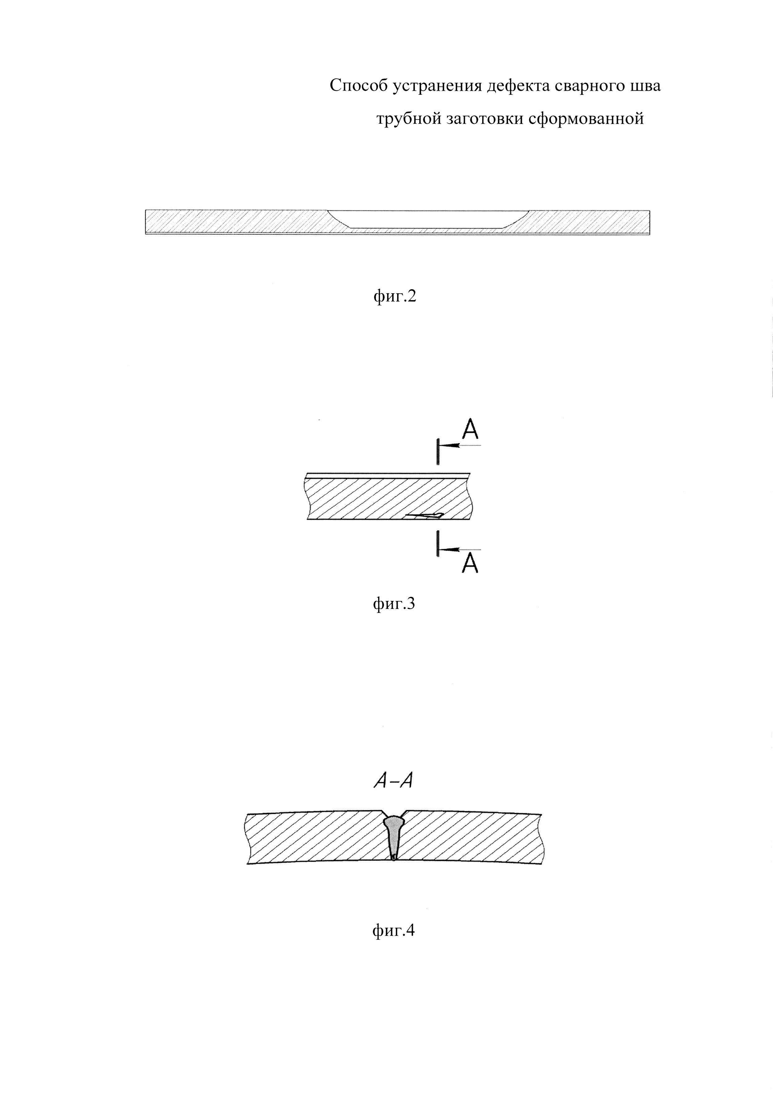 Изобретение относится к области машиностроения, лазерной техники и технологии и может быть использовано для ремонта полученного лазерной или лазерно-дуговой сваркой рабочего сварного шва стальной сформованной трубной заготовки толщиной от 8 до 45 мм, диаметром до 1420 мм и притуплением кромок до 20-22 мм. Проведение сварочных работ для изготовления сформованных стальных труб посредством лазерной или лазерно-дуговой сварки (далее - лазерной сварки) представляет собой технологию изготовления стальной трубы с помощью сварки продольных краев (кромок) открытой трубы воздействием лазерного луча и электрической дуги. Производство является сложным многоэтапным процессом, включающим: - наложение технологического шва, например, дуговой сваркой с последующим контролем качества и возможным ремонтом, - наложение рабочего шва лазерно-дуговой сваркой, с последующим контролем качества и возможным ремонтом, - в зависимости от разделки кромок наложение облицовочного наружного шва или внутреннего и наружного швов дуговой сваркой с последующим контролем качества и возможным ремонтом. Особенностью лазерной сварки являются высокие требования к точности сборки свариваемых кромок трубной заготовки, несоответствие которым может привести к такому дефекту, как несплавление. Кроме того, характерным дефектом для лазерной сварки является образование такого дефекта, как протяженная газовая полость (пористость). В то время как технология ремонта швов, полученных методом дуговой сварки, хорошо изучена и опробована, технология ремонта швов, полученных методом лазерной и гибридной лазерно-дуговой сварки, является малоизученной и труднореализуемой. Анализ уровня техники, касающегося способов ремонта сварных швов, которые могут быть использованы для ремонта рабочего сварного шва стальной сформованной трубной заготовки, полученного лазерной или лазерно-дуговой сваркой, выявил следующее. Известен способ ремонта сварных швов, в соответствии с которым дефектный участок расплавляют концентрированным источником тепла на глубину равную 1,3-1,5 от глубины залегания дефекта. Направляя тепло в зону дефекта в начале процесса интенсивность теплового излучения плавно увеличивают от нуля до рабочего значения, а затем, после всплытия дефекта на поверхность шва изделия, плавно уменьшают до нуля. (РФ, патент №2012474, В23Р 6/04, опубликовано 15.05.1994). Необходимость проплавления области дефекта на глубину, значительно превышающую его глубину его формирования (в полтора раза больше), ограничивает использование способа, поскольку дефект может быть в нижней корневой зоне шва, близкой к внутренней поверхности, например, трубы. Кроме того, воздействие концентрированным источником тепла не позволяет концентрировать термическое воздействие в пределах зоны дефекта. В результате тепловое воздействие переходит и в приграничную с дефектом область, расширяя зону теплового воздействия. Потребность в большом количестве тепла для расплавления металла шва в зоне дефекта, необходимость расплавления зоны дефекта на указанную глубину, невозможность оптимизации границ термического воздействия приводят к образованию обширной зоны термического влияния и, как следствие, к возрастанию внутренних напряжений в металле шва и в околошовном пространстве, также к образованию новых 