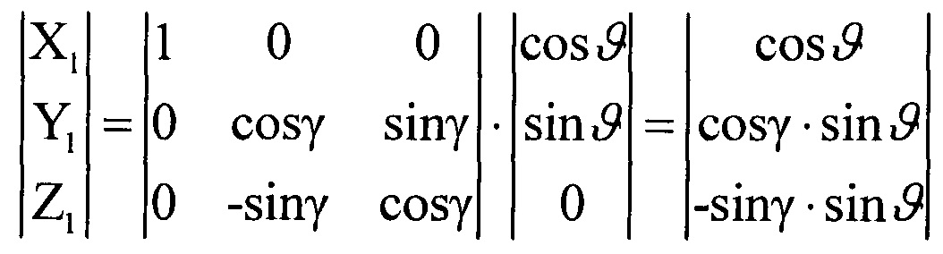на угол γПУ вокруг оси 0ХНКН. В матричном виде данный разворот можно выразить следующим образом: