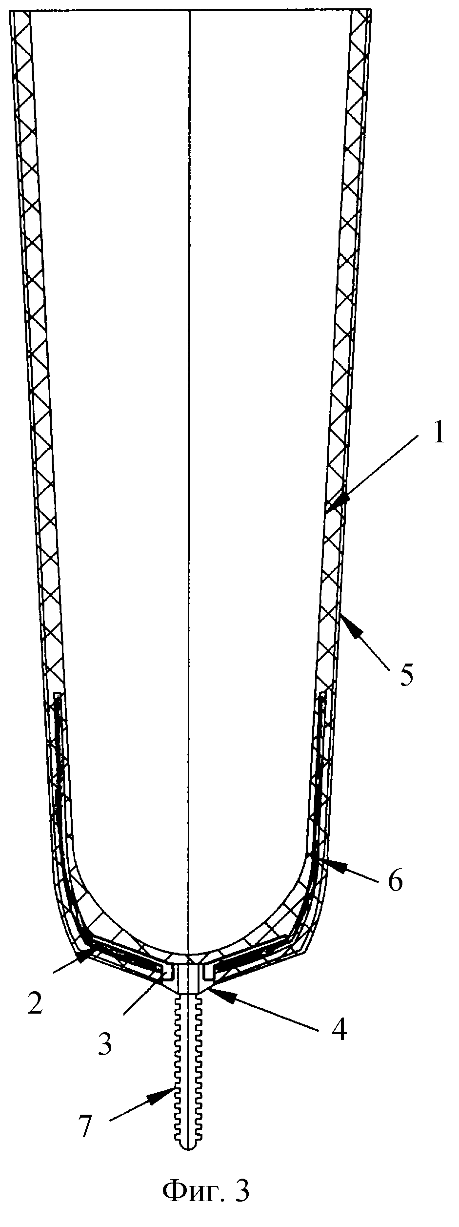 быть выполнена как с внутренней резьбой под стержень 7, так и без резьбового отверстия. Наружный армирующий слой 5 выполнен из трикотажа