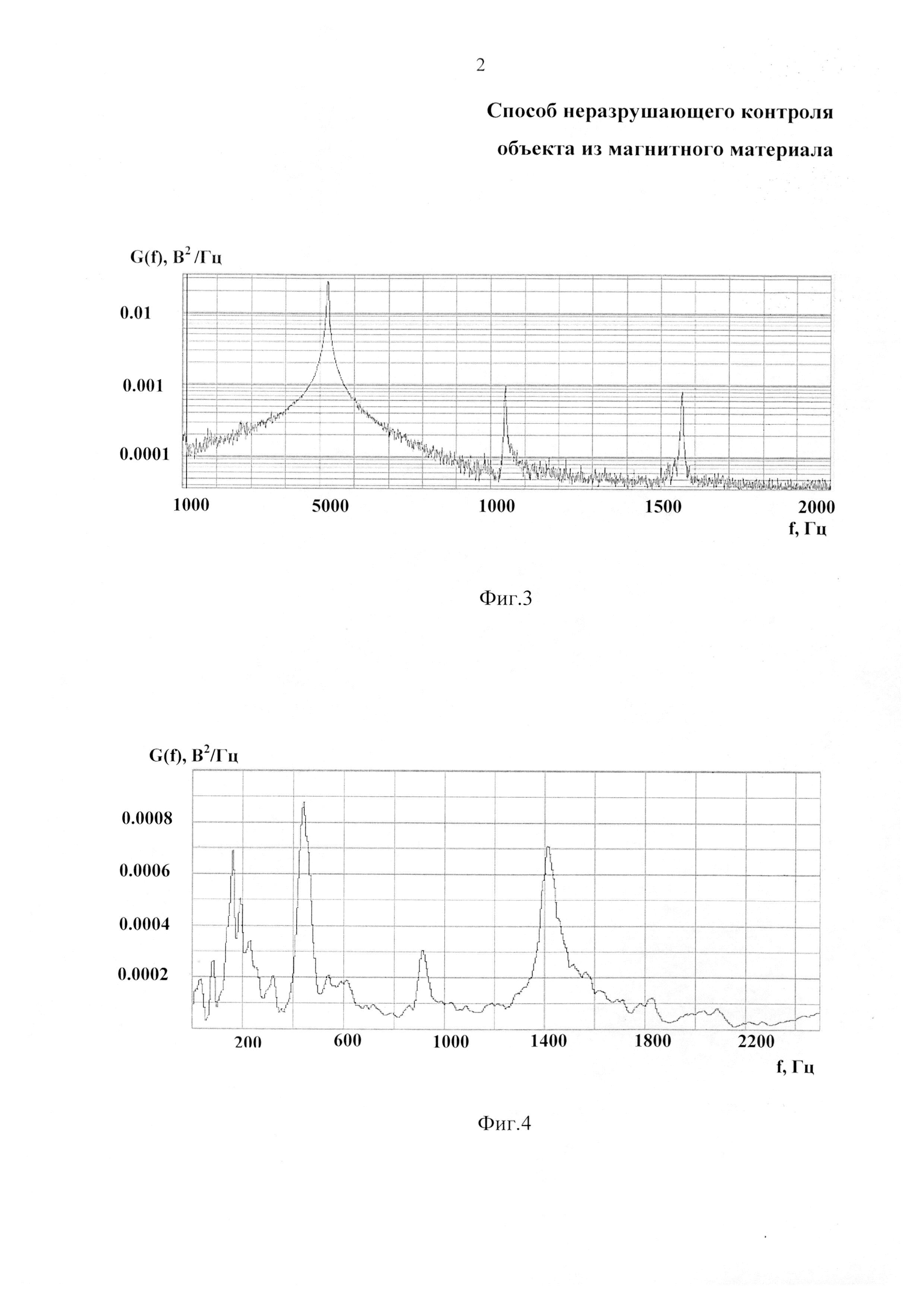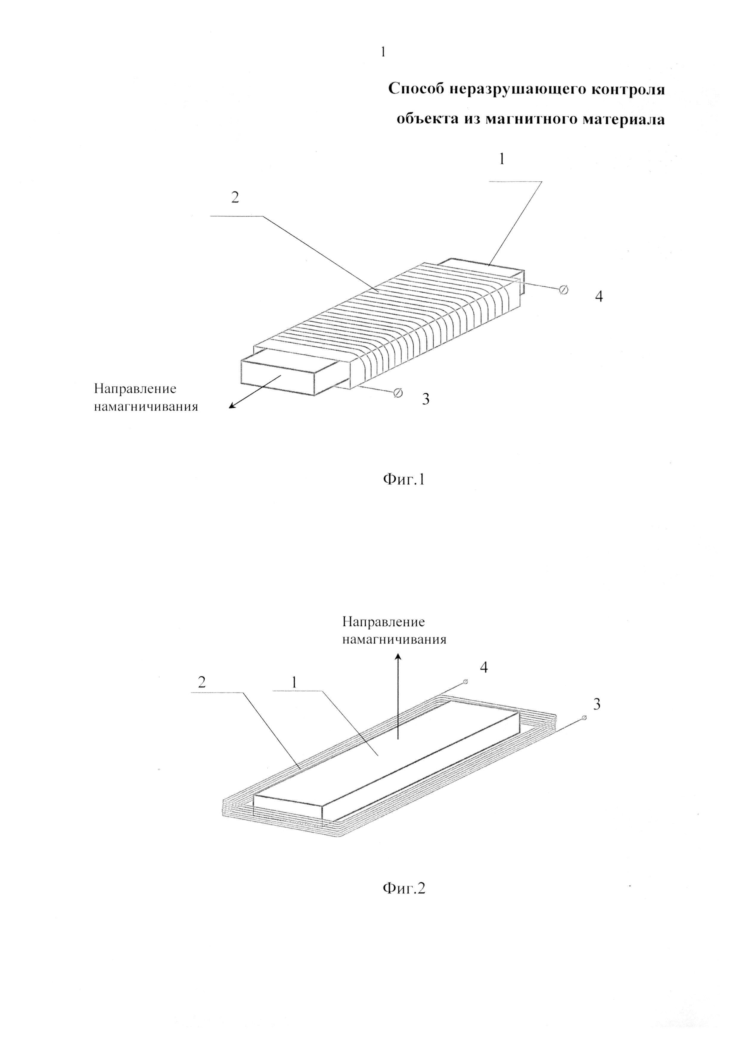 Изобретение относится к контрольно-измерительной технике, а именно к способам неразрушающего контроля магнитных материалов. Способ неразрушающего контроля объекта из магнитного материала заключается в том, что контролируемый объект помещают в постоянное магнитное поле и подвергают механическому воздействию, по значению отклика судят о механических свойствах объекта. Магнитное поле используют для намагничивания объекта в заданном продольном или поперечном направлении. В зависимости от направления намагничивания в качестве механического воздействия применяют соответственно продольное или поперечное воздействие, обеспечивающее возбуждение в контролируемом объекте собственных форм колебаний в звуковом диапазоне частот. Регистрируют частотный состав колебаний объекта по напряжению, наведенному в обмотке при указанном воздействии и по значениям частот максимумов судят о механических свойствах объекта. Намагничивание объекта и регистрацию частотного состава колебаний осуществляют посредством одной и той же обмотки, охватывающей контролируемый объект в продольном или поперечном направлении соответственно. Технический результат – повышение точности и производительности контроля механических свойств магнитных материалов. 1 з.п. ф-лы, 4 ил., 2 табл.