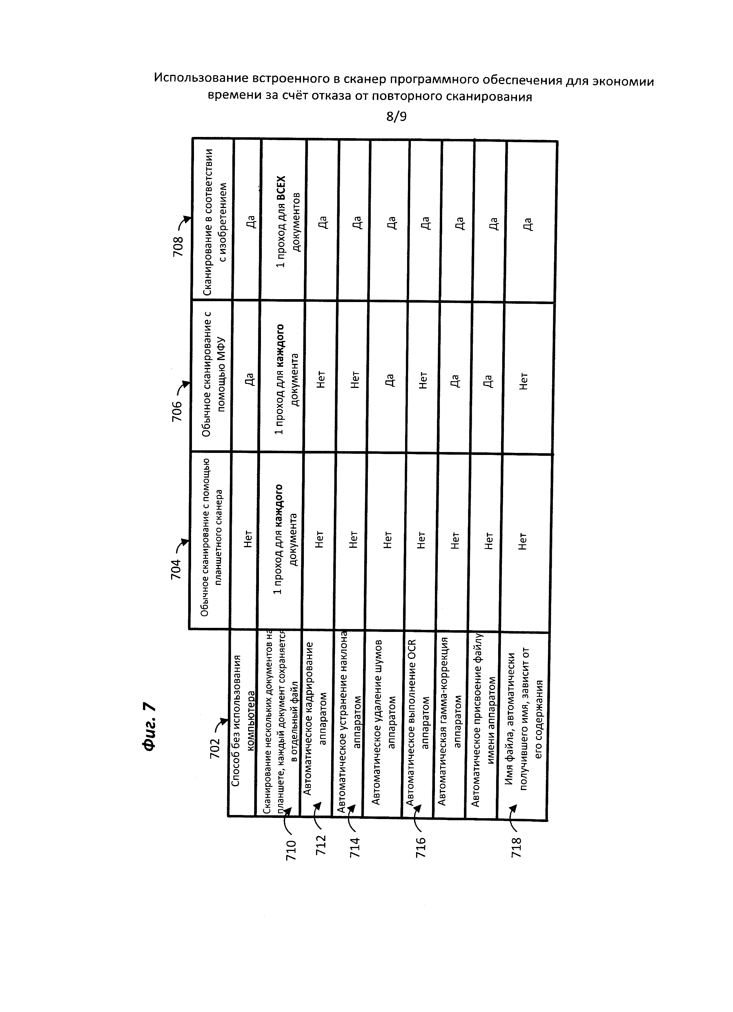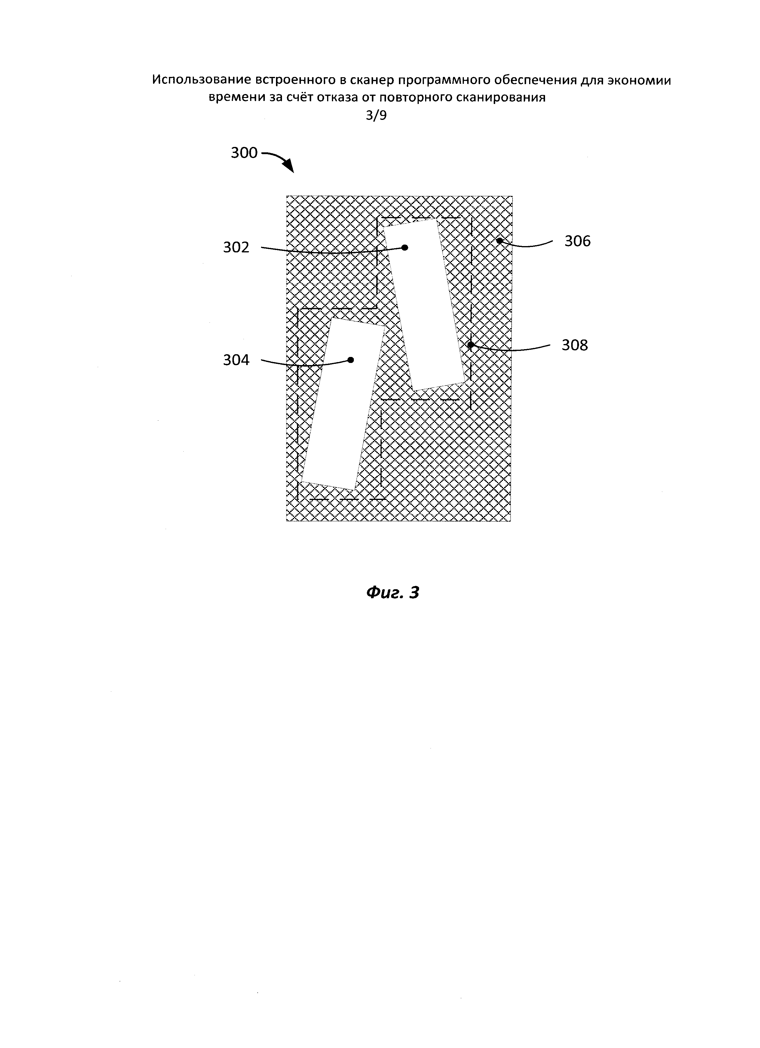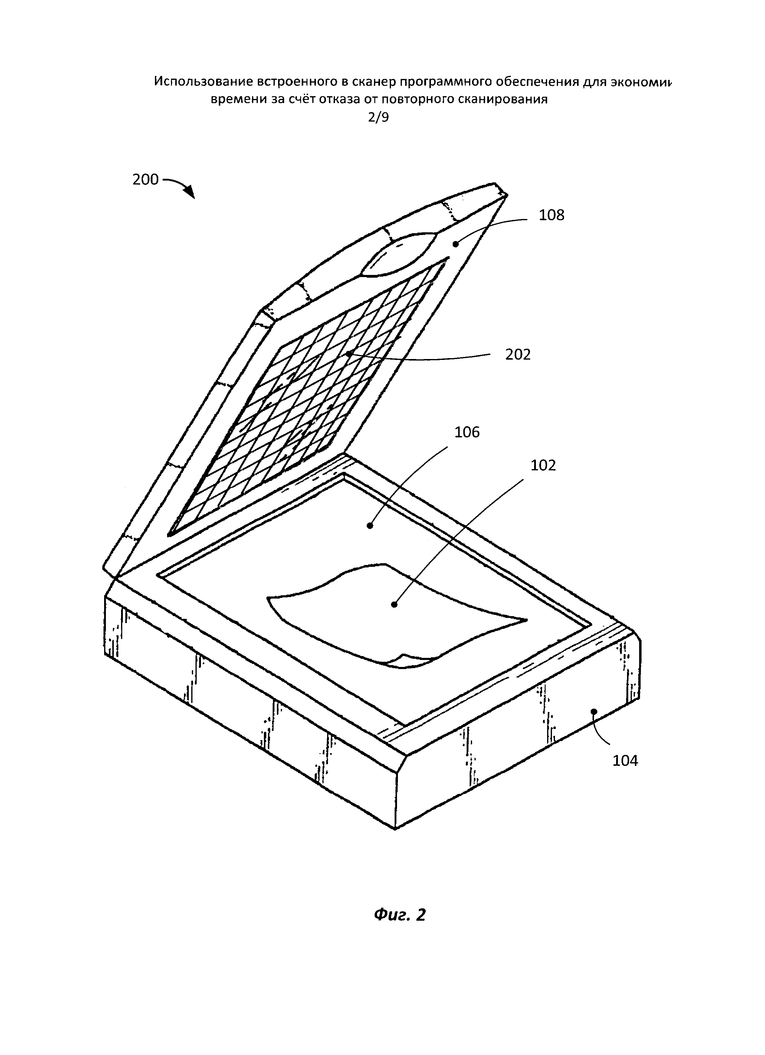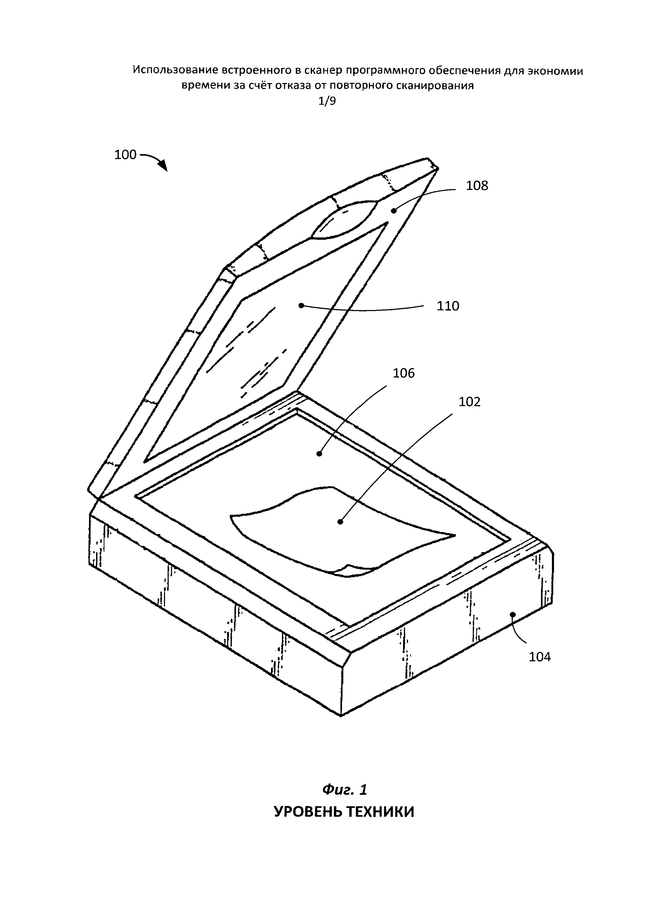 ОБЛАСТЬ ТЕХНИКИ Настоящее изобретение относится к функциям, традиционно связанным с конвертацией печатных документов в электронные изображения для обработки или хранения в компьютерной системе. Для решения этой задачи часто используются планшетные сканеры и многофункциональные устройства (МФУ). В частности, варианты реализации обеспечивают повышение скорости сканирования и сокращение числа проходов сканирования, необходимых для обработки документов или других объектов. УРОВЕНЬ ТЕХНИКИ Документ, обрабатываемый системой оптического распознавания символов (OCR), первоначально, как правило, представлен в виде электронного изображения. Печатные изображения, которые должны быть сохранены в компьютерной системе, также обычно изначально представлены в виде электронного изображения. Обычно такие изображения получают с планшетного сканера или многофункционального устройства с функциями принтера и сканера (МФУ). В планшетном сканере или МФУ обычно имеется узел каретки, который преобразует световой поток в электронное изображение, узел шагового двигателя, который перемещает каретку, и основная электронная плата, которая формирует и обрабатывает электронное изображение и, при необходимости, передает электронное изображение в компьютерную систему по интерфейсному кабелю, кабелю локальной сети или через беспроводную сеть посредством одного или нескольких сетевых протоколов. На Фиг. 1 показан пример обычного сканера 100 в соответствии с известным уровнем техники и типичный пример операции сканирования бумажного документа 102. На Фиг. 1 сканер 100 содержит корпус сканера 104 и стекло или планшет 106, на котором размещен один бумажный документ или несколько бумажных документов 102. Откидная крышка 108 закрывает собой документы 102. На крышке 108 имеется равномерный сплошной белый фон или сплошной черный фон 110 в рабочей области сканера. В процессе работы крышка 108 закрыта. При работе с планшетным сканером пользователь сначала запускает предварительный просмотр, чтобы увидеть, где находятся бумажные документы на планшете 106 устройства 100. Необходимо выяснить, как эти документы 102 расположены на планшете 106, чтобы пользователь смог вручную выбрать или указать одну или несколько областей сканирования. Во время предварительного просмотра сканер быстро перемещает каретку (не показана) вдоль планшета 106 или корпуса 104 из исходного положения в конечное положение. В этот момент, то есть во время предварительного просмотра, лампа в каретке включена. Устройство производит сканирование и получает электронное изображение с достаточно низким разрешением. Затем каретка возвращается в исходное положение. Во время обратного перемещения для продления срока службы лампы и уменьшения потребляемой мощности лампа в каретке выключена, и сканирование не производится. Предварительное изображение передается на подключенный компьютер. Затем пользователь изучает результат предварительного просмотра на экране компьютера, подключенного к сканеру. Пользователь выбирает одну или несколько областей сканирования и инициирует сканирование, как правило, с высоким разрешением для получения электронного изображения достаточно высокого качества, чтобы выполнить OCR (оптическое распознавание символов), сохранить его в виде электронного файла, распечатать