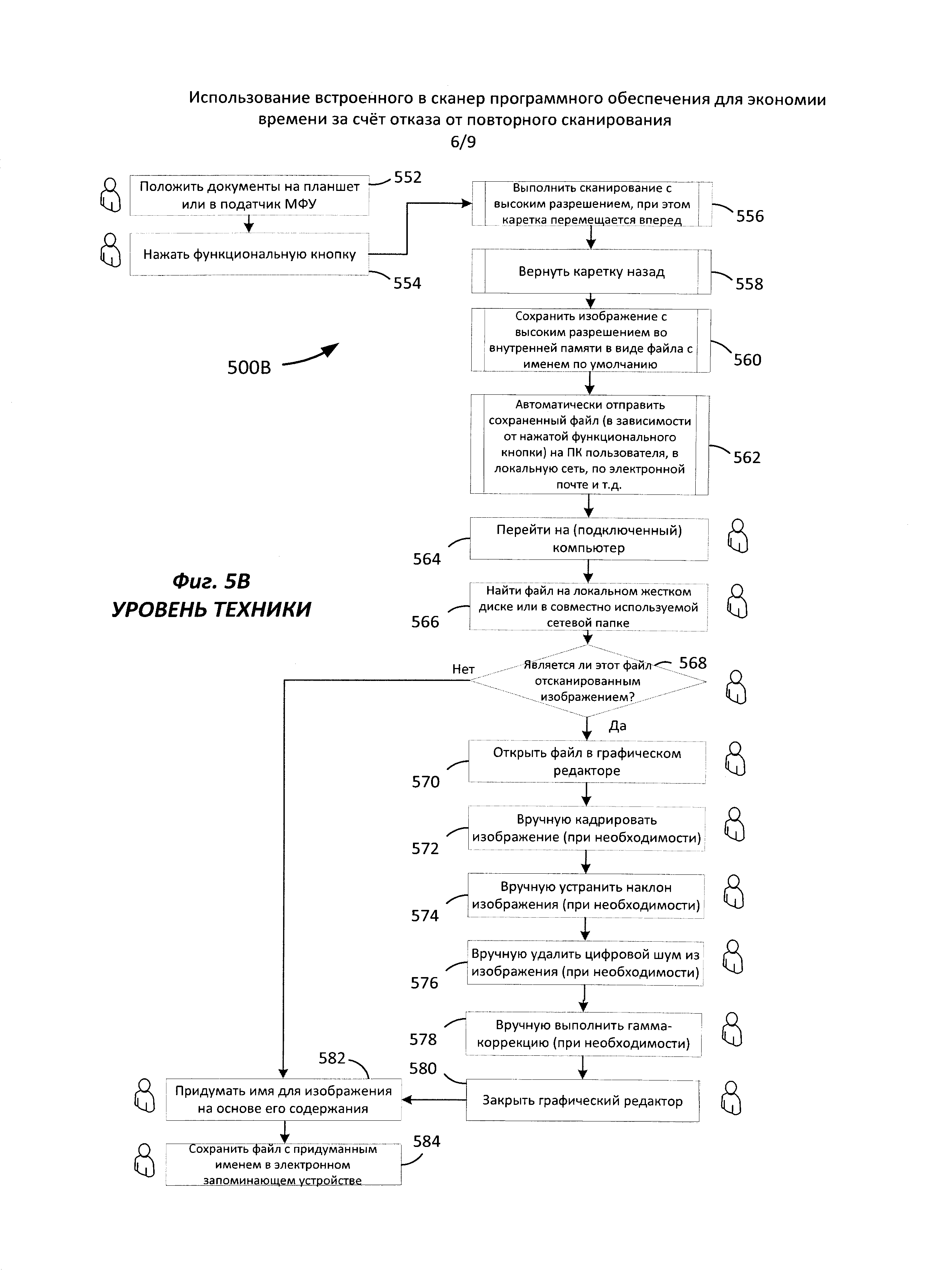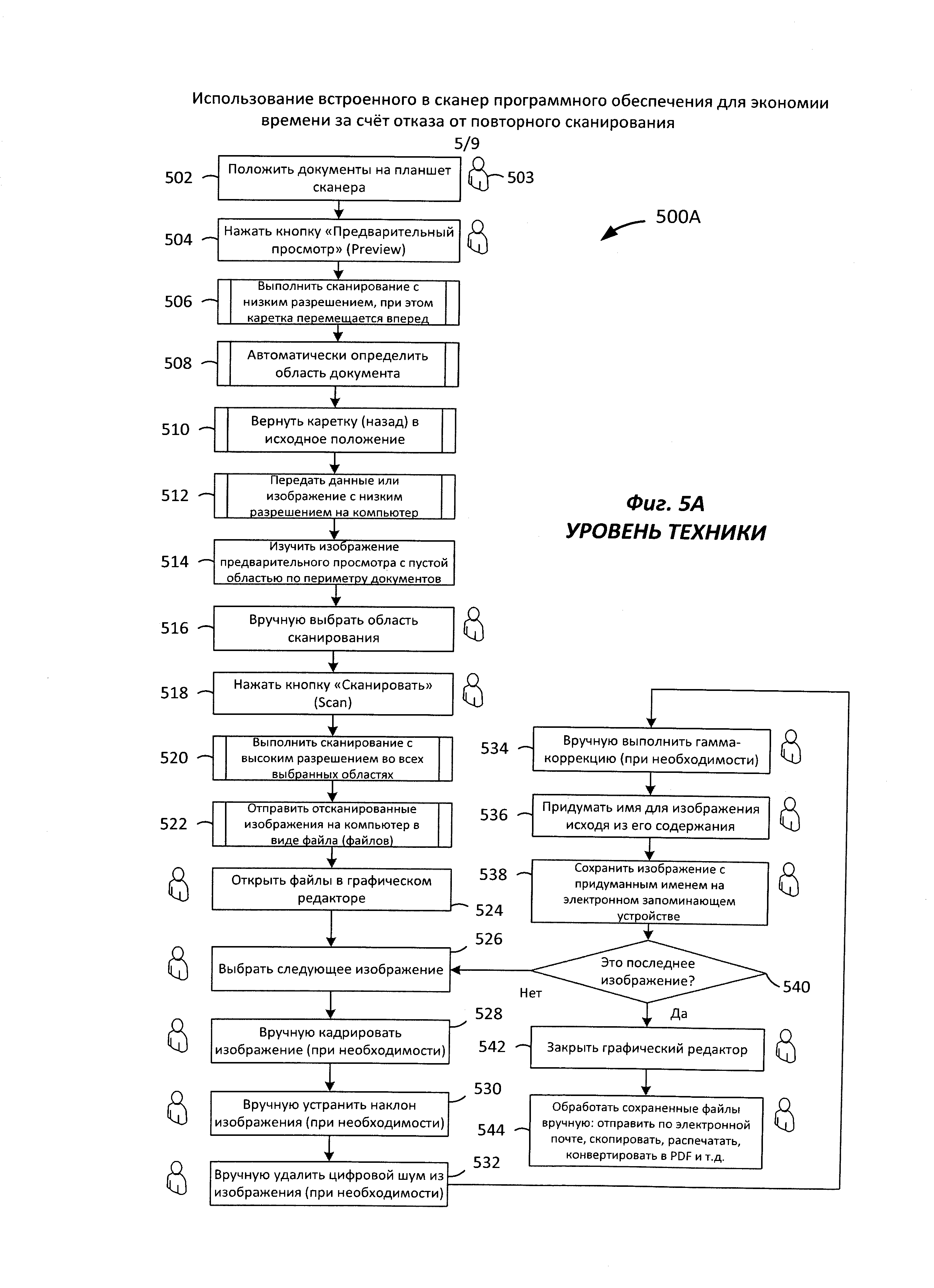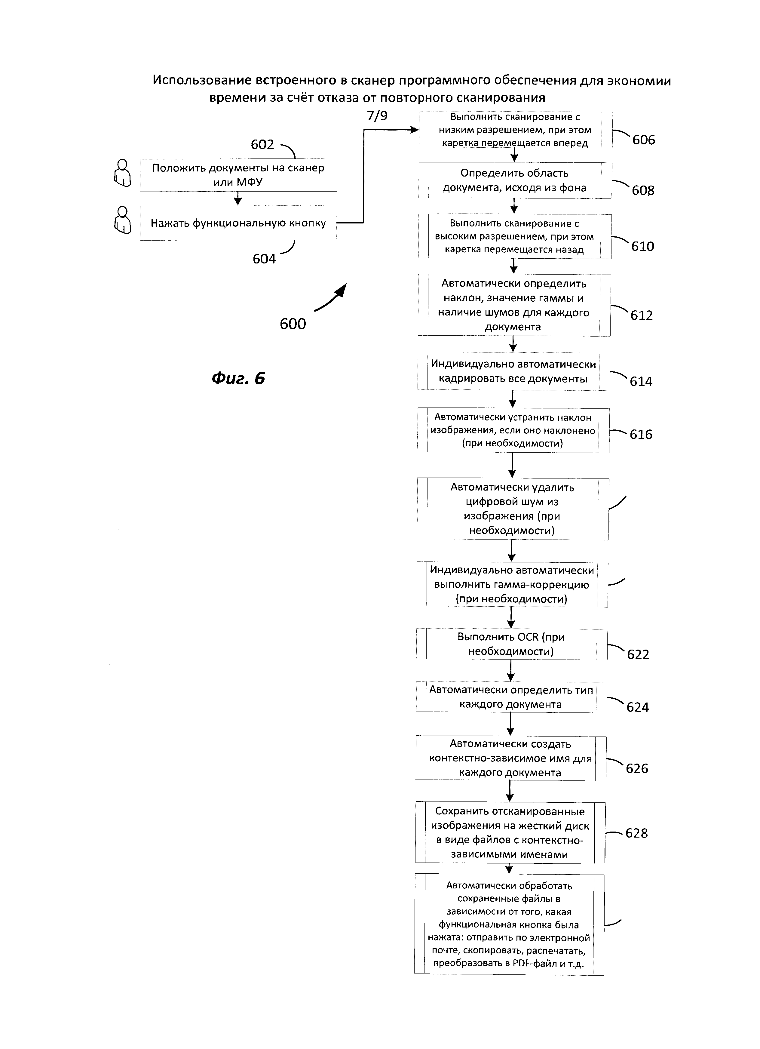Изобретение относится к конвертации печатных документов в электронные изображения для обработки или хранения в компьютерной системе. Технический результат заключается в сокращении времени сканирования документа. Приведено описание способов и устройств для обнаружения границ документов в планшетных и многофункциональных сканерах при первом проходе узла каретки и последующем сканировании с высоким разрешением при втором проходе. Затем изображения документов с высоким разрешением можно получить без операций или практически без операций, обычно необходимых для выявления необходимых областей на планшете сканера. Текстуры на крышке сканера облегчают не только выявление краев документа, но и определение ориентации текста и других объектов, а также обработку изображений в рамках подготовки к OCR и связанных с ним функций. Электронные изображения и файлы, полученные из бумажных документов, могут автоматически кадрироваться, в них может корректироваться наклон, они могут подвергаться OCR, и им могут присваиваться имена, соответствующие их содержанию или другой полученной от них информации. 3 н. и 33 з.п. ф-лы, 9 ил.