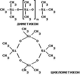 основе диметил-силоксанов (диметикон) и циклометилсилоксанов (циклометикон). Выпускают марки А, Б, В, Г, Д с содержанием диметикона, %: 10, 30, 50, 70, 90 соответственно, остальное - циклометикон. Достоинства: защищают кожу, отталкивают воду, придают коже мягкость и бархатистость, воздухопроницаемы, устраняют липкость,