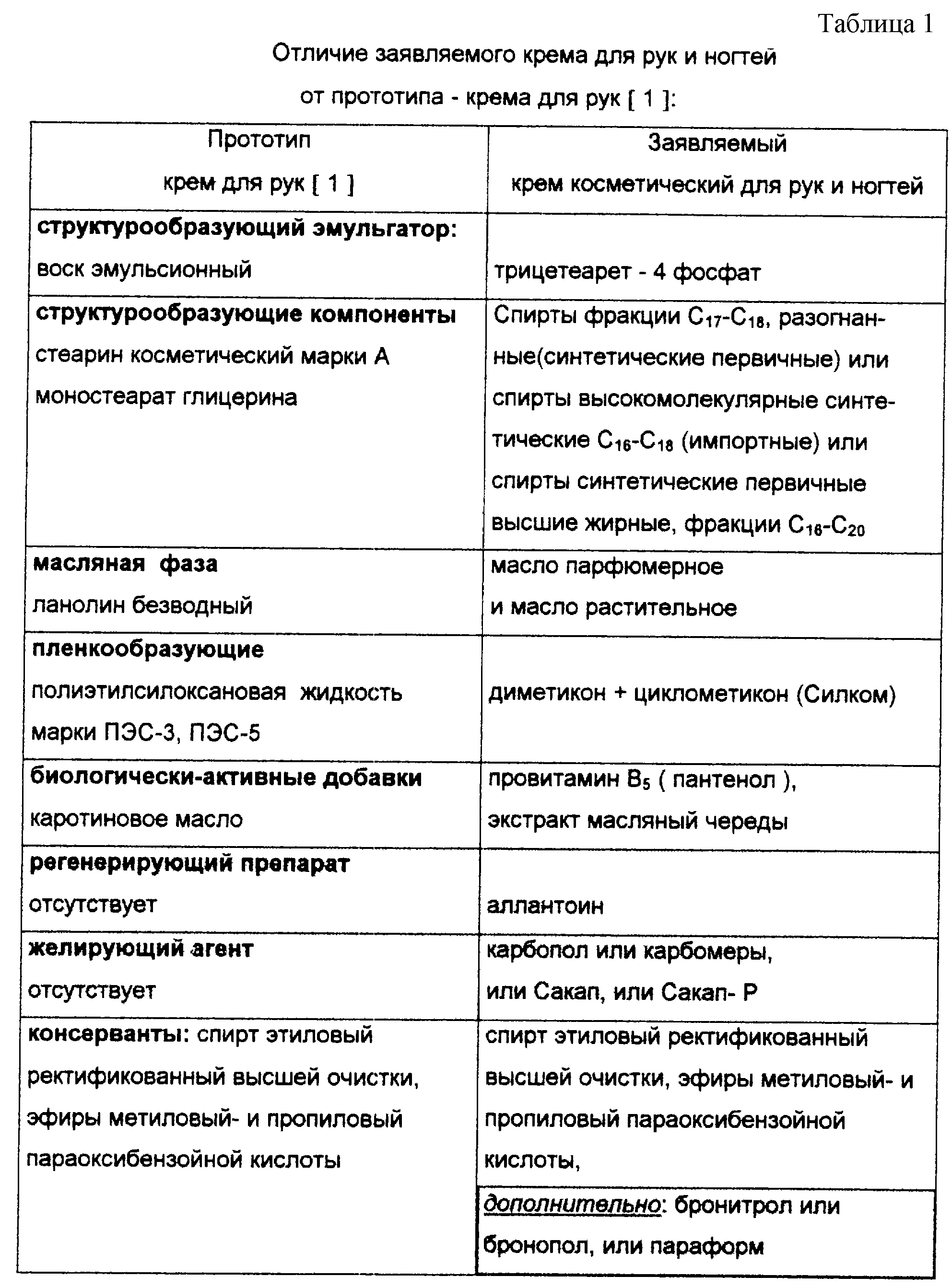 или бронопол, или параформ при следующем соотношении компонентов, мас.%: Характеристика основного сырья, используемого в заявляемом креме для рук и ногтей: ТРИЦЕТЕАРЕТ-4 ФОСФАТ используют в качестве