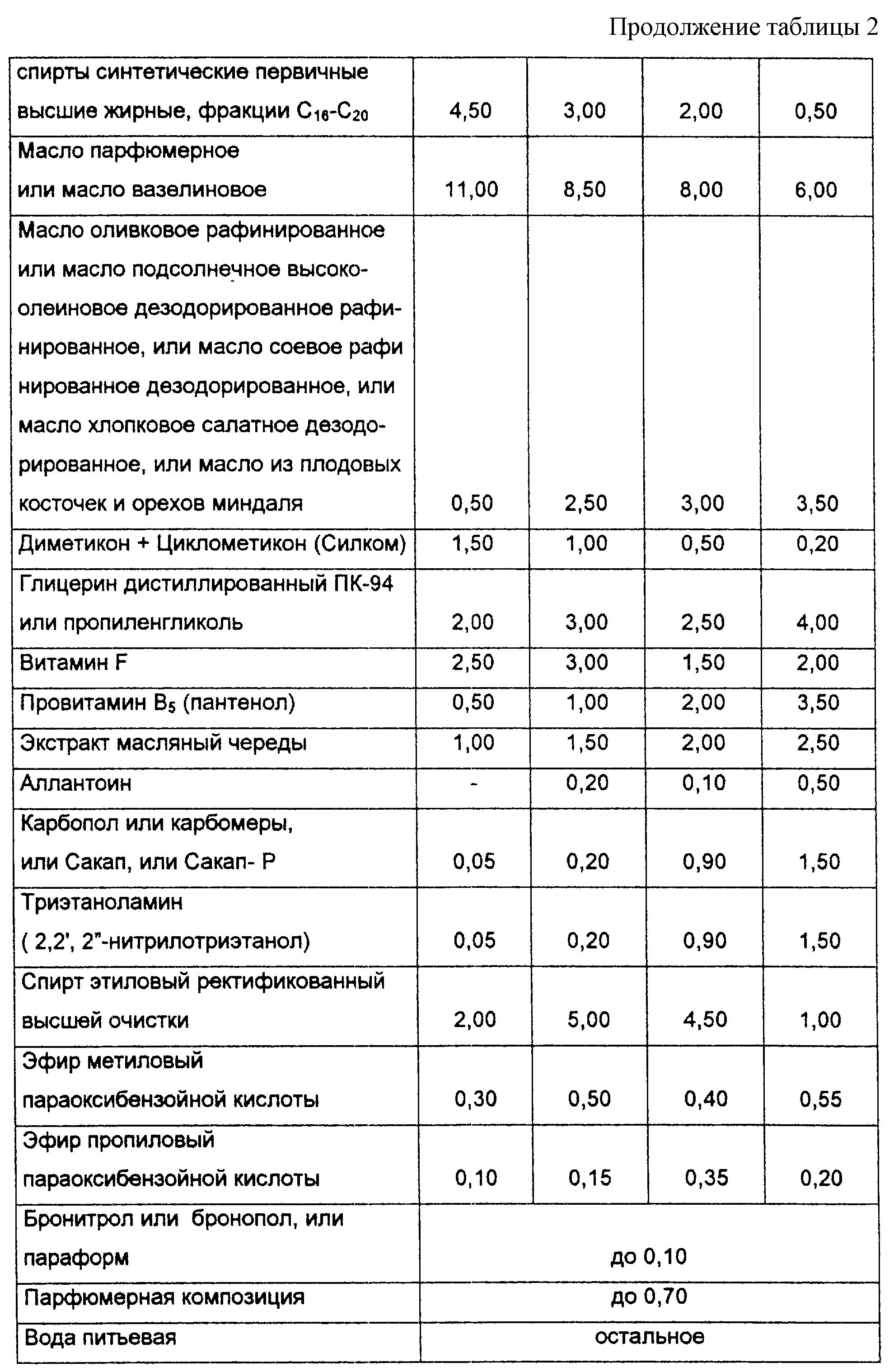 6-36-41П-94. Составы крема косметического для рук и ногтей по нескольким примерам приведены в таблице N 2 При введении в крем компонентов ниже указанных концентраций не обеспечивается защитный и профилактический эффект, а увеличение ввода компонентов