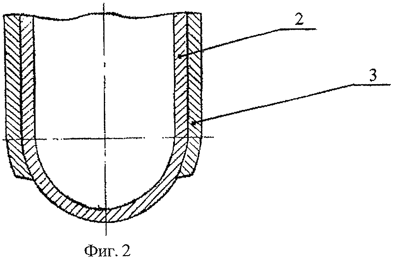 Изобретение относится к машиностроению, а именно к обработке металлов давлением, и может быть использовано для изготовлении биметаллических переходников с нахлесточным соединением слоев с наружным слоем из менее пластичного материала, по отношению к внутреннему. Биметаллические переходники - это высоконагруженные детали для соединения гидравлических и газовых трубопроводов из разнородных материалов, например жидкостных реактивных двигателей (ЖРД). К ним предъявляются повышенные требования по прочности, герметичности, надежности работы в условиях высоких давлений при минимальном весе. Известен способ изготовления биметаллических переходников из материалов: цирконий - сталь, титан - сталь, алюминий - сталь, согласно которому получают наружную трубчатую заготовку, выполняют в ней внутреннюю резьбу и, как минимум, одну кольцевую канавку, в наружную заготовку вставляют внутреннюю, выполненную в виде стержня, полученную сборку помещают в вакуум и нагревают до температуры диффузионной сварки, после чего стержень пластически деформируют путем сжатия его по торцам до заполнения резьбовой и кольцевой канавок материалом стержня, полученную сборку выдерживают при температуре диффузионной сварки до образования сварного соединения по резьбе и канавке, после чего полученное изделие охлаждают (см. патент РФ № 2219024, кл. В23К 20/04, 2003 г.). В результате анализа известного способа необходимо отметить, что он весьма трудоемок и энергоемок, длителен по времени, что обусловлено применением диффузионой сварки, а также требует для осуществления большого количества разнородной оснастки. Известен способ изготовления биметаллических изделий, согласно которому осуществляют сборку цилиндрической заготовки из стального основного материала и трубной заготовки из материала покрытия, например нержавеющей стали, нагревают заготовку, деформируют ее и подвергают термообработке, причем при сборке цилиндрическую заготовку вводят в ее трубчатую часть по свободной посадке, после чего заваривают один торец и полученную биметаллическую заготовку подвергают холодному обжатию, заваривают второй торец, а деформацию проводят после нагрева за один проход на стане прокатки-ковки (см. патент РФ № 2238180, кл. В23К 20/04, 2004 г.). В результате анализа известного способа необходимо отметить, что использование обработки давлением позволяет повысить прочностные характеристики изделия, однако данный способ, как и приведенный выше, характеризуется значительными трудозатратами, сложен в осуществлении, требует большой номенклатуры оснастки, а кроме того, при использовании материалов с разной деформационной способностью возможно трещинообразование при изготовлении изделия. В настоящее время в качестве исходного материала для изготовления наиболее высоконагруженных переходников для ЖРД наиболее часто применяют биметаллический лист, состоящий из композиции - алюминиевый сплав АМг6 - коррозионностойкая сталь 12Х18Н10Т. Слои биметаллического листа обладают разной деформационной способностью. При изготовлении биметаллических переходников из данного листа получают листовые дисковые биметаллические заготовки, а биметаллическое изделие (переходник) получают путем штамповки-вытяжки заготовок за несколько переходов в матрице с криволинейным профилем с промеж