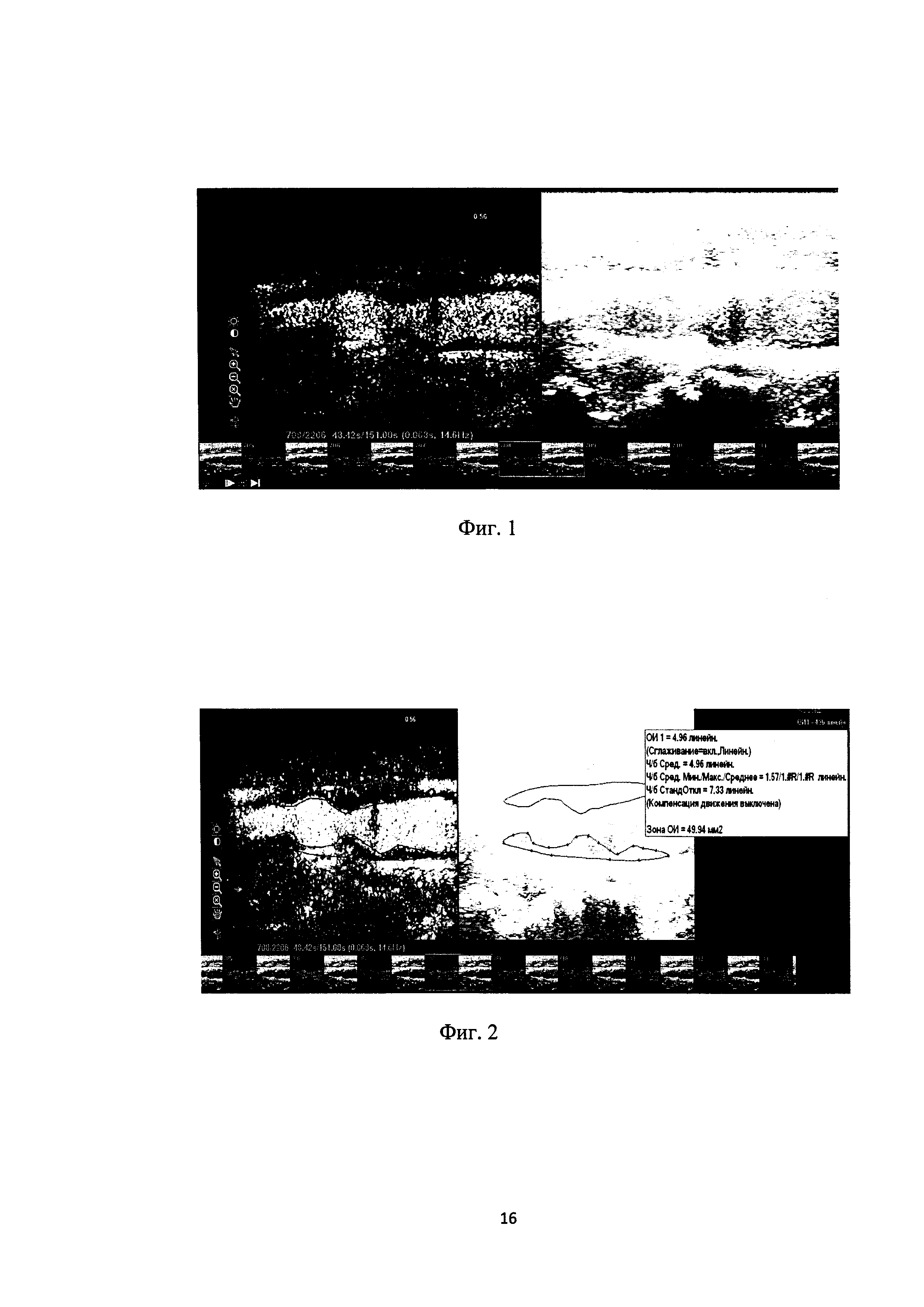 Изобретение относится к области медицины, в частности к ангионеврологии и сосудистой хирургии, и может быть использовано для количественного расчета микрососудов (МС) в атеросклеротической бляшке (АСБ) сонных артерий с помощью дуплексного сканирования (ДС) с введением контрастного вещества. Атеросклеротическое поражение сонных артерий является ведущей причиной атеротромботического и гемодинамического подтипов ишемического инсульта (Джибладзе Д.Н. Патология сонных артерий и проблема ишемического инсульта (клинические, ультразвуковые и гемодинамические аспекты) / Под ред. Д.Н. Джибладзе. - М.: НИИ неврологии РАМН, 2002. - 207 с.). На сегодняшний день, помимо наличия или отсутствия очаговой неврологической симптоматики, степень стеноза брахиоцефальных артерий остается главным показателем, на основании которого оценивается риск развития острого нарушения мозгового крозообращения и определяется дальнейшая тактика лечения (Национальные рекомендации по ведению пациентов с заболеваниями брахиоцефальных артерий / «Ангиология и сосудистая хирургия». - 2013. - Т. 19 (приложение). - №2). Помимо степени стеноза артерий, как правило, уточняется локализация, протяженность, состояние поверхности и эхоструктура АСБ. Данная информация играет важную роль при определении как показаний к реконструктивному хирургическому вмешательству, так и вида его выполнения. Известно, что формирование АСБ происходит в несколько этапов. В результате прогрессирования патологического процесса в участках отложения липидов разрастается молодая соединительная ткань, что ведет к образованию фиброзных бляшек, в центре которых формируется липидное ядро, представляющее собой скопление атгроматозных масс (липидно-белкового детрита). Вокруг липидного ядра возникает зона соединительной ткани, богатая клеточными элементами (макрофагами, пенистыми и гладкомышечными клетками, Т-лимфоцитами), коллагеном и эластическими волокнами (Верещагин Н.В., Моргунов В.А., Гулевская Т.С. Патология головного мозга при атеросклерозе и артериальной гипертонии / Под ред. Н.В. Верещагина, В.А. Моргунова, Т.С. Гулевской. - М.: Медицина, 1997. - 288 с.). В то же время происходит васкуляризация очага атеросклеротнческого поражения. Сеть МС (vasa vasorum), окружающих сосуд, необходима для его нормального роста и развития. Однако эти же МС могут иметь значимую роль в развитии патологических процессов, в частности при атеросклеротическом поражении. Наличие новообразованных кровеносных сосудов в АСБ является новым маркером и важным прогностическим фактором ее нестабильности, который может быть связан с развитием симптомов острых нарушений мозгового кровотока. Согласно существующей гипотезе, в растущей АСБ диффузия кислорода уменьшается, что стимулирует ангиогенные факторы роста. Образованные новые сосуды внутри бляшки имеют незрелую структуру. Отсутствие перицитов в этих сосудах может привести к их разрыву с развитием кровоизлияний в бляшке, образованием участков изъязвлений и надрывов покрышки, и, как следствие, попаданию атероматозных масс в кровоток с эмболизацией артерий головного мозга (Alonso A., Artemis D., Hennerici M.G. Molecular Imaging of Carotid Plaque Vulnerability. Cerebrovasc Dis, 2015, vol. 39, №1, pp. 5-12). To есть основным фактором, лежащим в основе трансформации стабильной АСБ в нестабильную, является нарушение целостности ее структ