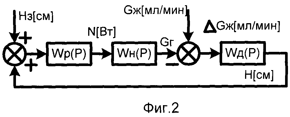 первого порядка по уровню Н относительно возмущающих воздействий по изменению циркуляционного потока и управляющих воздействий Нз, поэтому необходимо применение в законе регулирования Wp(P)