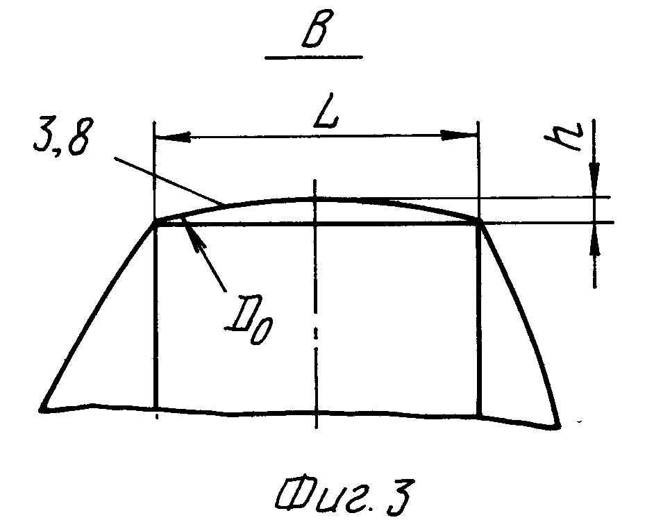 выпуклой "бочки" 8 (см. фиг. 3, где L - ширина кромки, а h - высота "бочки"), а не прямой линии (образующей цилиндра или конуса), причем значения "бочки" не входят в пределы светового диаметра