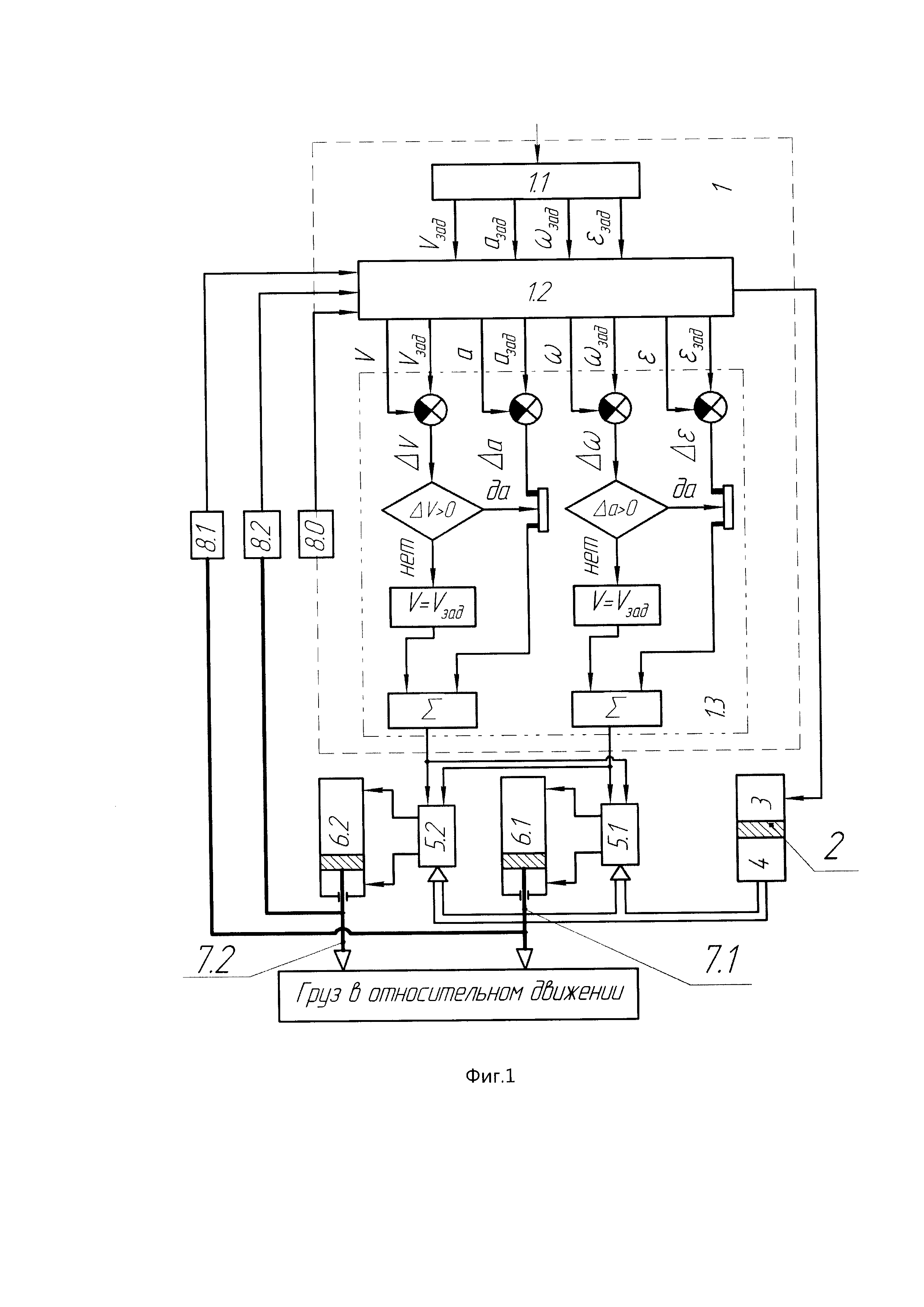 1. Способ принудительного сброса - катапультирования груза, заключающийся в том, что измеряют линейные ускорения на корпусе, переднем и заднем штоках гидротолкателей; рассчитывают заданные значения кинематических параметров движения центра масс груза и вокруг центра масс в зависимости от режима полета; рассчитывают по измеренным перегрузкам текущие значения кинематических параметров движения груза; формируют управляющие сигналы на гидрораспределители переднего и заднего гидротолкателей с определенными весовыми коэффициентами, отличающийся тем, что управляющие сигналы гидрораспределителей переднего и заднего гидротолкателей формируют в два этапа: на первом этапе управляющие сигналы формируют по разности заданных и текущих значений линейных и угловых ускорений до момента выполнения условий V=Vзад и ω=ωзад, где V, Vзад и ω, ωзад - текущие и заданные значения линейных и угловых скоростей, т.е. управление катапультированием адаптивно к внешним факторам; на втором этапе в оставшееся до отделения груза время управляющие сигналы формируют по разности заданных и текущих значений линейной и угловой скоростей, т.е. управление катапультированием адаптивно к внутренним факторам. 2. Устройство принудительного сброса - катапультирования содержит корпус, в котором размещены пиропривод, выполненный на основе двухполостного цилиндра, одна полость которого является полостью сгорания, а вторая - полостью сжатия рабочей жидкости, последняя через гидрораспределители, управляемые от вычислительного блока, связана с гидроцилиндрами переднего и заднего гидротолкателей, на штоках гидротолкателей и корпусе размещены датчики линейных ускорений, выходы которых соединены с вычислительным блоком, отличающееся тем, что гидроцилиндры переднего и заднего гидротолкателей выполнены двухполостными, а гидрораспределители с двумя выходами, при этом каждая полость соединена с одним из выходов гидрораспределительного устройства, выполненного с регулированием подачи рабочей жидкости как по величине, так и по направлению.