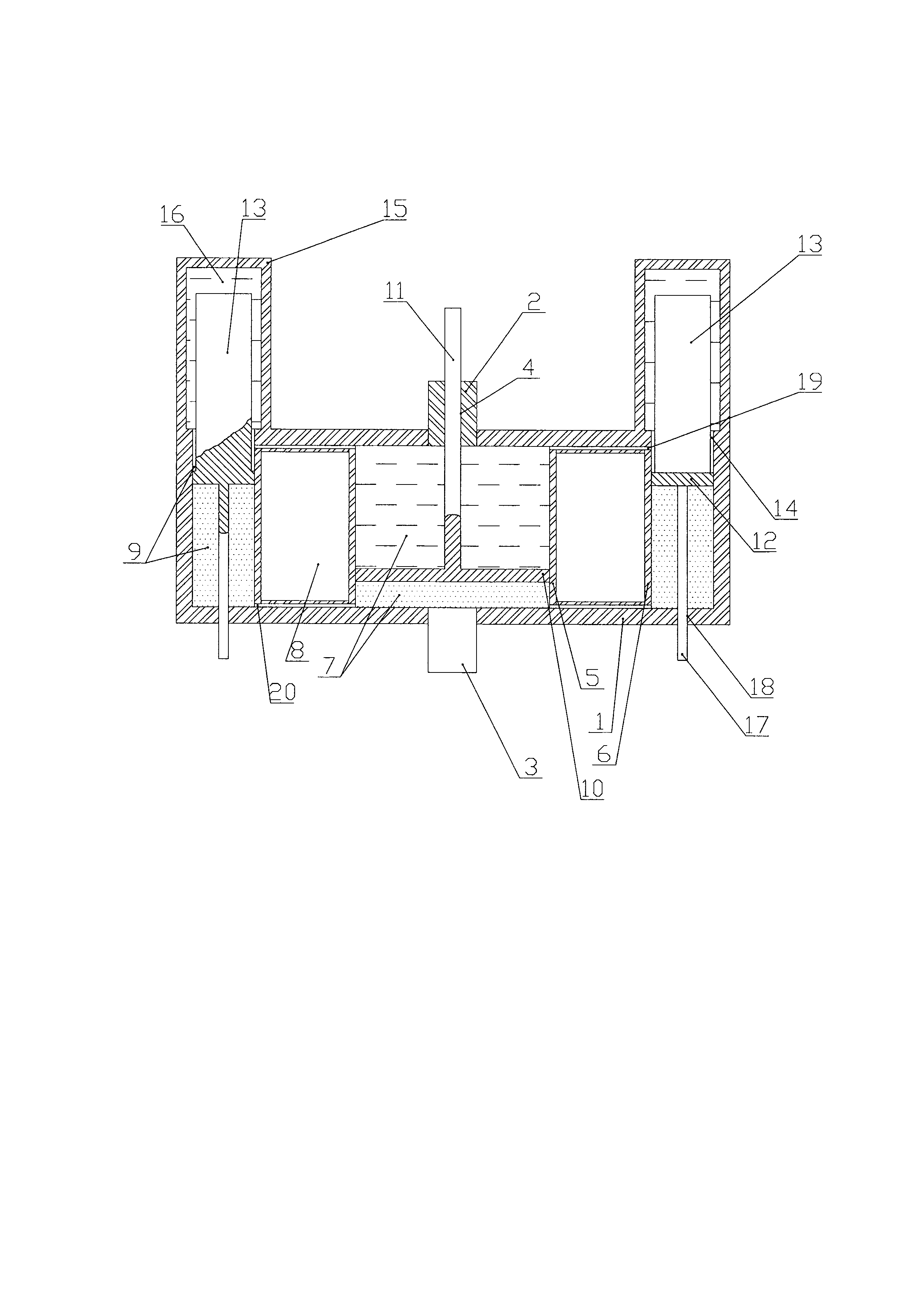 Изобретение относится к системам автоматического управления технологическими процессами, в работе которых необходимо поддерживать требуемые технологические параметры, зависящие от частоты вращения рабочих агрегатов, и может использоваться, в частности, в энергетическом машиностроении в системах управления гидроагрегатов при переходных процессах и аварийных режимах, возникающих при резком сбросе нагрузки большой суммарной мощности, характерных для малых гидроэлектростанций (ГЭС). Известен маховик переменного момента инерции (патент RU №2175085, публ. 20.10.2001, МПК F16F 15/31), содержащий корпус с внутренней камерой, заполненной подвижной средой. В периферийной части камеры размещено капиллярно-пористое вещество. Устройство нагрева и устройство охлаждения соприкасаются с подвижной средой и капиллярно-пористым веществом. Обеспечивается возможность регулирования момента инерции путем изменения расстояния между осью вращения и центром масс независимо от скорости вращения маховика. Недостатками настоящего технического решения являются сложность реализации и большие временные задержки при необходимости изменения момента инерции, вследствие необходимости использования специфического капиллярно-пористого вещества и устройства нагрева и охлаждения. Известен маховик с переменным моментом инерции (авторское свидетельство RU №1615439, публ. 23.12.1990, МПК F03G 3/00), содержащий пустотелый барабан с камерой для жидкости, соединенный с валом с возможностью совместного вращения. Внутри камеры установлены радиальные перегородки. Жидкость из резервуара с помощью шнека, закрепленного на валу маховика, подается в камеру. По мере раскручивания маховика его масса увеличивается за счет нагнетания жидкости в камеру. Недостатком данного технического решения является узкая область применения вследствие существенного ограничения возможности его использования в составе гидроагрегатов малых ГЭС, где требуется стабилизация частоты вращения при сбросе и наборе нагрузки, из-за отсутствия возможности изменения момента инерции маховика без изменения скорости его вращения. Наиболее близким по технической сущности к предлагаемому изобретению является маховик переменного момента инерции с вертикальной осью вращения (авторское свидетельство RU №1221405, публ. 30.03.1986, МПК F16F 15/30), содержащий концентрические секции, частично заполненные рабочей жидкостью, внешняя из которых разделена радиальными перегородками. При этом секции в нижней части соединены между собой гидравлическим диодом, а уровень рабочей жидкости во внутренней секции выше, чем во внешней. Недостатком настоящего технического решения является узкая область применения вследствие малого диапазона изменения момента инерции и необходимости изменения скорости вращения маховика для изменения его момента инерции. Технической задачей предлагаемого изобретения является обеспечение возможности управляемого регулирования момента инерции маховика, не требующего изменения скорости его вращения. Технический результат заключается в расширении области применения маховика переменного момента инерции за счет возможности его использования как для стабилизации частоты вращения, так и для управления частотой вращения рабочих агрегатов в соответствии с требуемым алгоритмом. Это достигает