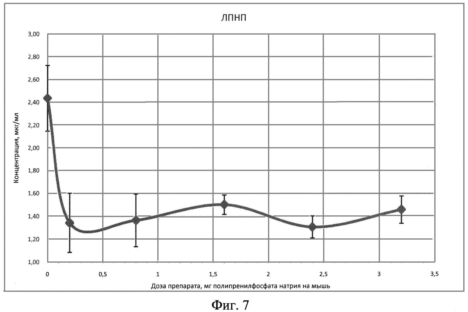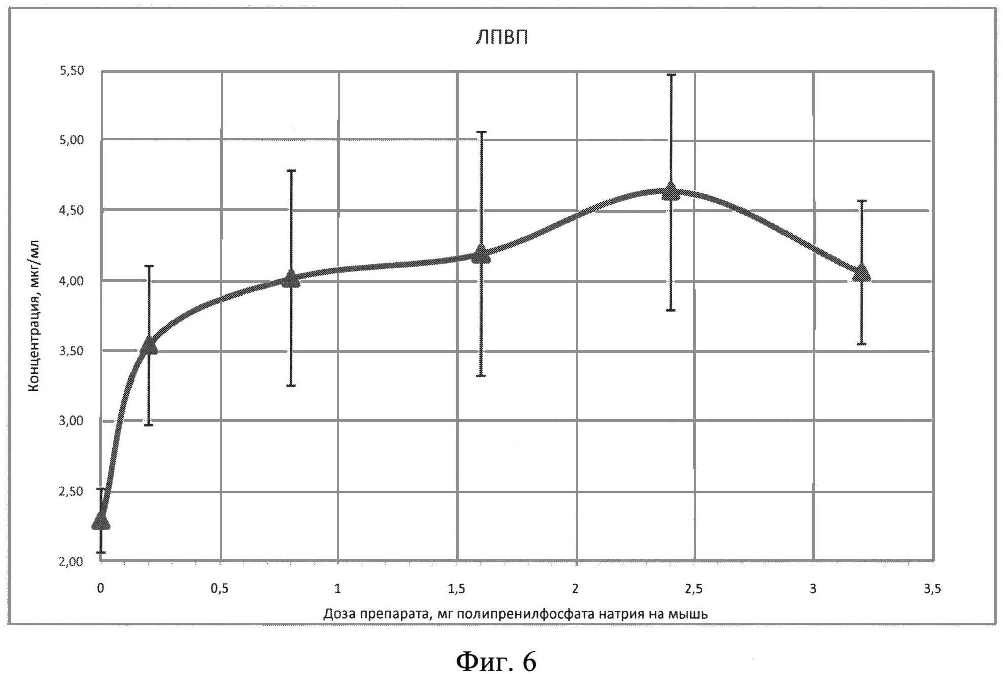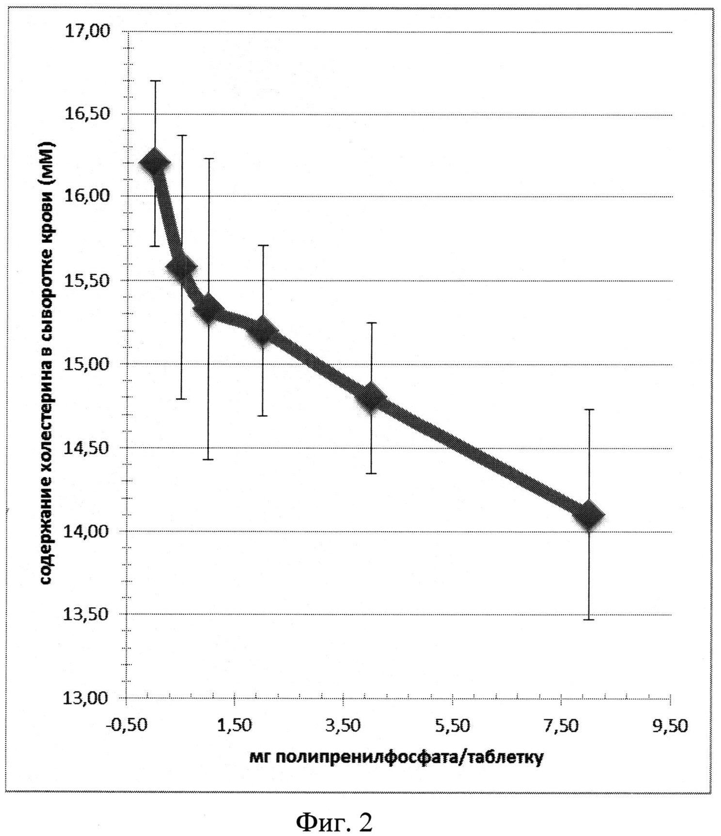 1. Способ получения лекарственного средства на основе полипренилфосфатов и бета-ситостерина, заключающийся в предварительном смешивании полипренилфосфатов и сорбита в ступке, размер которой соответствует суммарному объему смешиваемых веществ, при этом между стенкой и/или дном ступки и вводимыми полипренилфосфатами находится слой сорбита, полученную при смешивании смесь полипренилфосфатов в сорбите гомогенизируют, при этом в гомогенизатор добавляют сорбит, сухую смесь полипренилфосфатов в сорбите в соотношении 1:8 и бета-ситостерин, и гомогенизация производится в течение 10 минут в импульсном режиме, причем гомогенизацию осуществляют при скорости вращения 500-700 об/мин в течение 4 минут, 1000-1200 об/мин в течение 2 минут и затем со скоростью 500-600 об/мин в течение 4 минут, при этом при изменении скорости вращения делают перерыв 20 минут, причем после каждой остановки процесса производится интенсивное встряхивание чаши со смесью, после чего полученный порошок просеивают через сито с размером ячейки 20 мкм и, если масса отсева составляет менее 0,1% от массы загруженных ингредиентов, процесс гомогенизации заканчивают. 2. Лекарственное средство на основе полипренилфосфатов и бета-ситостерина для лечения гиперлипидемии, полученное способом по п. 1. 3. Лекарственное средство по п. 2, отличающееся тем, что содержит 8 мг полипренилфосфатов и 10 мг бета-ситостерина.