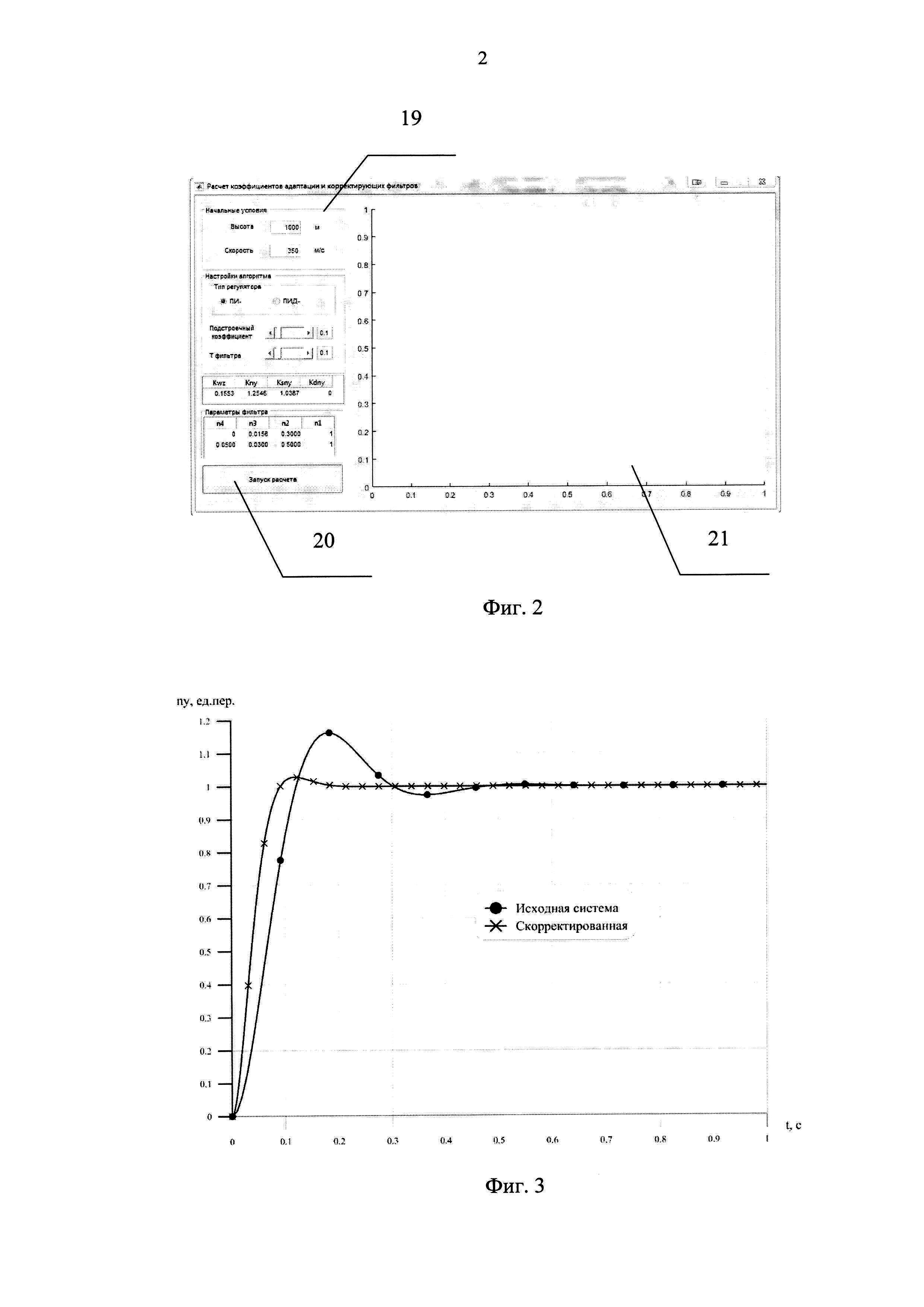Изобретение относится к области информационно-измерительной техники, в частности к системам стабилизации летательных аппаратов, и предназначено для автоматизированного расчета их параметров. Предлагаемый способ позволяет провести настройку параметров регуляторов для автономных каналов контура стабилизации системы автоматического управления, таких как продольный, боковой и канал крена, а также синтезировать параметры корректирующих фильтров для обеспечения устойчивости системы стабилизации летательного аппарата. В полете на летательный аппарат (объект управления) могут оказывать влияние различные возмущающие воздействия, например, ветер, упругие колебания корпуса и т.д. Системы, синтезированные по критерию максимальной степени устойчивости, сочетают в себе свойства сравнительно высокого быстродействия и робастности. Это следует из того, что крайние правые корни характеристических полиномов замкнутых систем максимальной степени устойчивости максимально удалены от мнимой оси, поэтому все собственные однородные решения систем управления мажорируются (т.е. ограничиваются) относительно быстро затухающими экспонентами, а максимальная удаленность этих корней от мнимой оси обеспечивает грубость систем этого класса к изменению параметров объектов управления. Таким образом, данный способ позволяет настроить параметры регуляторов так, чтобы система стабилизации оставалась устойчивой при некотором отклонении параметров летательного аппарата от расчетных. Оценку качества производят по следующим критериям: 1) критерий статической точности: где g - заданное значение единичного ступенчатого сигнала, h(∞) - установившееся значение переходной функции h(t); 2) величина перерегулирования: где hmax - максимальная амплитуда переходной функции; 3) время переходного процесса - время, начиная с которого выполняется неравенство: где Δ - некоторая заранее заданная величина (в %). Из уровня техники известен способ формирования сигнала управления системой стабилизации беспилотного летательного аппарата (БПЛА) на основе расчета областей достижимости в плоскости путем выбора оптимального гипотетического момента времени окончания переходного процесса (описание к патенту на изобретение RU №2487052). Данный способ обеспечивает формирование управляющего сигнала, компенсирующего внешние ограниченные возмущения с неизвестными статистическими свойствами. Недостатком данного способа является отсутствие анализа запасов устойчивости в расчетном моменте времени окончания переходного процесса, и как следствие, система стабилизации может не обладать достаточными запасами устойчивости. Наиболее близким известным способом, взятым за прототип, является способ многокритериального выбора параметров трехканальной системы стабилизации летательного аппарата с перекрестными связями (описание к патенту на полезную модель RU №142322). Оптимизацию проводят по параметрам (статическая точность, колебательность, быстродействие и устойчивость) в трех каналах, а затем полученные оптимальные параметры используют для задания начальных приближений и диапазона параметров для проведения оптимизации трехканальной системы. Способ позволяет сформировать управляющий сигнал с помощью методов динамической многокритериальной оптимизации на основе к