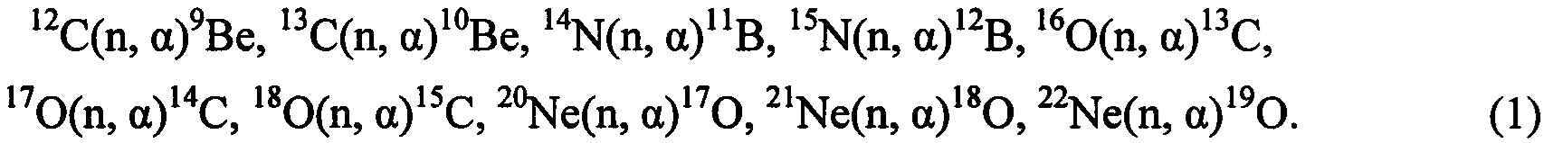 Изобретение относится к ядерной физике и физике высокотемпературной плазмы и может найти применение в управляемом термоядерном синтезе для термометрии термоядерной плазмы, при разработке диагностических приборов для управляемого термоядерного синтеза. Контроль температуры необходим для оперативного (в реальном времени) управления процессом подогрева плазмы от внешних источников энергии. Одной из актуальных проблем в управляемом термоядерном синтезе, например, в проекте INTOR (International Tokamak Reactor), является проблема измерения температуры ионов Ti в D-T плазме. Контроль температуры необходим для оперативного (в реальном времени) управления процессом подогрева плазмы от внешних источников энергии. Требования к методу измерения Ti весьма жестки - Ti должна измеряться с дискретностью ~50 миллисекунд с точностью ΔTi/Ti ≤ 0.1. Прямая информация о Ti содержится в ширине спектра ΔЕn нейтронов от реакции D+T в горячей плазме. В работе [Brysk Н. Fusion neutron energies and spectra. Plasma Physics. 1973. V. 15. P. 611] показано, что в случае максвелловской плазмы нейтронный спектр имееи гауссову форму. При этом ширина энергетического распределения нейтронного импульса ΔЕn связана с температурой ионов плазмы Ti соотношением Ранее для термометрии термоядерной реакции был предложен радиохимический детектор нейтронов [Д.Н. Абдурашитов, Э.А. Коптелов, С.Г. Лебедев, В.Э. Янц. Газовый радиохимический монитор нейтронов. Приборы и техника эксперимента. 2004. №1, С. 1; Lebedev S.G., Akulinichev S.V., Iljinov A.S., Yants V.E. A gaseous radiochemical method for registration of ionizing radiation and its possible applications in science and economy. Nuclear Instruments and Methods in Physics Research Section A 561 (2006) 90]. В детекторе под действием нейтронов образуется радиоактивный газ и затем измеряется его активность. Основным недостатком указанного метода является временная задержка сигнала из-за транспортировки радиоактивного газа из активной зоны в удаленный пропорциональный счетчик. Наиболее близким по своей технической сущности и достигаемому результату является способ измерения ΔЕn и температуры ионов Ti в D-T плазме с помощью алмазного детектора нейтронов [Krasilnikov A.V., Amosov V.N., Van Belle P. et al. Study of d-t neutron energy spectra at JET using natural diamond detectors. Nuclear Instruments and Methods in Physics Research A 476 (2002) 500] по реакции n+12C→α+9Be - 5.071 МэВ. Способ включает регистрацию нейтронов из D-T плазмы алмазным нейтронным детектором, использование сигналов детектора для формирования энергетического спектра нейтронов, определение его ширины на полувысоте ΔЕn и вычисление по величине ΔЕn температуры ионов Ti. При эффективном зарядовом сборе в алмазном детекторе возможно достижение энергетического разрешения (при энергии образования электронно-дырочной пары εпары=10 эВ) порядка 0.15% при энергии 9 МэВ. Тогда ΔЕn будет измерено с точностью около 1.5%, а температура Ti с точностью 3-4%. В реальности, с учетом требований высокой загрузки по скорости счета (для обеспечения приемлемой статистики за 50 мс) ~106 с-1 и большого рабочего ресурса - десятки и сотни дней, возможность применения твердотельных детекторов ограничена, учитывая накопление структурных дефектов в кристалле, а, следовательно, и зарядовых ловушек. Недостатками такого способа являются высокая стоимость и ограниченный рабочий ресурс используемого детектора нейтронов, существование ядерных каналов реакции, отличных от используемого для регистрации нейтронов каналаl2C(n,α)9Be, снижающих достоверность резул