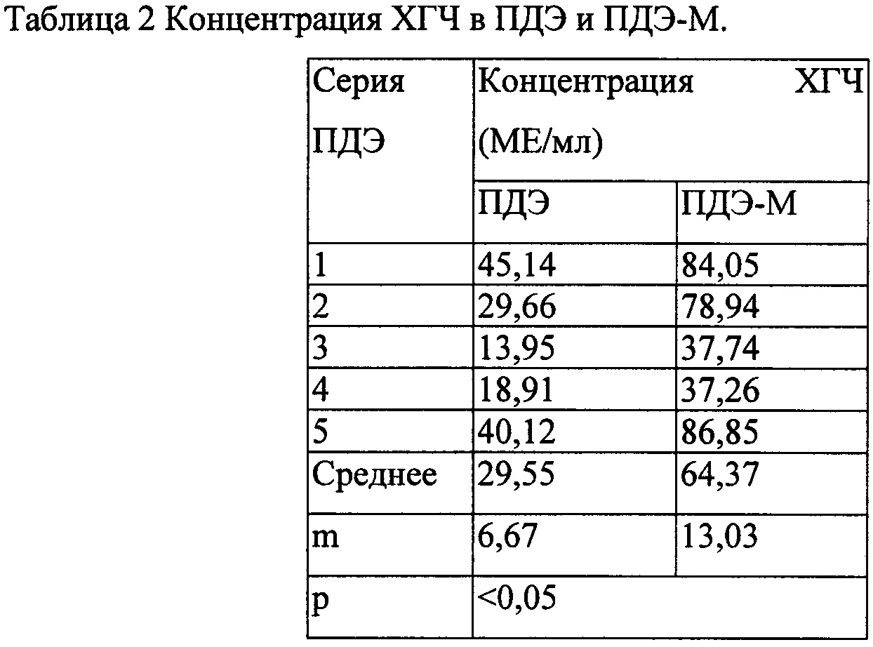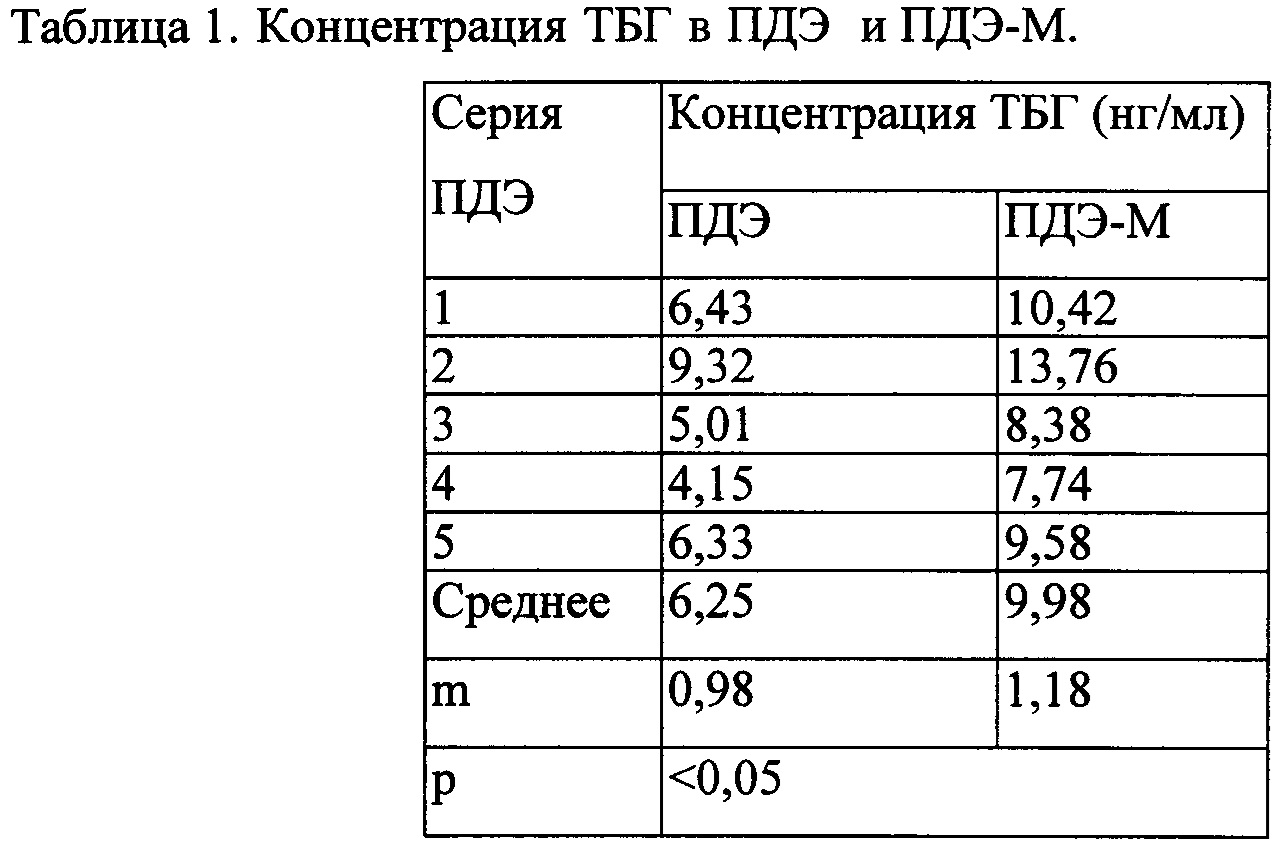 Изобретение относится к медицине и ветеринарии и может быть использовано для получения средства для стимуляции выработки соматотропного гормона гипофизом. Средства для стимуляции выработки соматотропного гормона гипофизом в доступных авторам источниках информации не обнаружены. Технический результат от использования предлагаемого изобретения заключается в получении средства для стимуляции выработки соматотропного гормона гипофизом. Указанный технический результат достигается тем, что средство для стимуляции выработки соматотропного гормона гипофизом содержит лиозольную составляющую диспергированной плаценты (например, плаценты денатурированной эмульгированной) человека или животного. Указанный технический результат достигается также тем, что средство для стимуляции получают путем замораживания смеси диспергированной плаценты с растворителем (водным раствором соли, изотоничным плазме крови), ее последующего размораживания и выделения из размороженной смеси лиозольной составляющей. Средство получают следующим образом. К диспергированной плаценте, например, денатурированной эмульгированной (ПДЭ) добавляют растворитель - водный раствор соли, например, физиологический раствор (стерильный 0,9% раствор хлористого натрия), в результате чего снижается концентрация дисперсной фазы смеси, что приводит к уменьшению коагуляционных контактов между частицами и прекращению гелеобразования. Затем смесь замораживают, что приводит к формированию золь-гель перехода. Затем смесь размораживают, в результате чего она преобразуется в смесь твердой и лиозольной составляющих, из которой фильтрованием выделяют лиозольную составляющую. Полученная лиозольная составляющая (ПДЭ-М) содержит основные белки плаценты (трофобластный бета1-гликопротеин и хорионический гонадотропин) в более высоких концентрациях, чем исходный препарат (таблицы 1 и 2). В результате получается растворимая в воде субстанция с высокой концентрацией активных компонентов плаценты, которая может быть стерилизована путем последующего мембранного фильтрования. Это позволяет использовать ПДЭ-М в инъекционных лекарственных препаратах. Сохранение в ПДЭ-М активных компонентов ПДЭ доказывается способностью ПДЭ-М стимулировать продукцию соматотропного гормона (таблица 3). Ниже приведен конкретный пример получения средства для стимуляции выработки соматотропного гормона гипофизом. Смешали 100 мл ПДЭ (ТУ 9358-001-48552915-07) со 150 мл 0,9% физиологического раствора в пластиковом флаконе. Флакон разместили на магнитной мешалке и перемешивали его содержимое со скоростью 100 об/мин в течение 5 мин. Полученную смесь поместили в холодильник и выдерживали в нем при температуре -20°С в течение 24 часов. Затем оттаяли смесь при комнатной температуре и отфильтровали с помощью лавсановой фильтровальной ткани (ФЛ-4, ГОСТ 26095-84). Хранение полученного средства при температуре -20°С обеспечивает его пригодность для использования в течение 1 года. Сравнение ПДЭ и ПДЭ-М по содержанию трофобластического бета1-гликопротеина (ТБГ). Трофобластический бета1-гликопротеин (ТБГ) - специфический белок беременности. В зарубежной научной литературе ТБГ чаще обозначается как SP-1 (Schwangerschaft Protein 1) или PSG (pregnancy specific glycoprotein). Трофобластический β-1-гликопротеин (ТБГ) представляет собой гликопротеин с моле