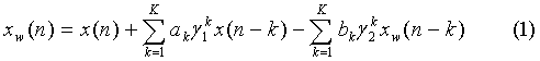 - энергетические LPC-спектры соответственно неквантованных и квантованных LPC, которые могут быть рассчитаны как: