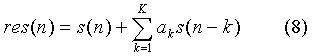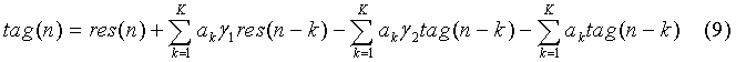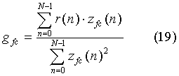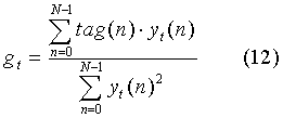 - коэффициент усиления предсказания для оптимальной задержки top, который может быть рассчитан как:
