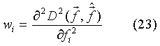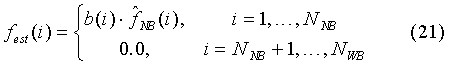 - функция взвешивания по частоте, которая определяется рабочей шириной частотной полосы и важностью восприятия слушателем отдельных участков спектра внутри рабочей полосы и может быть рассчитана, например, как: