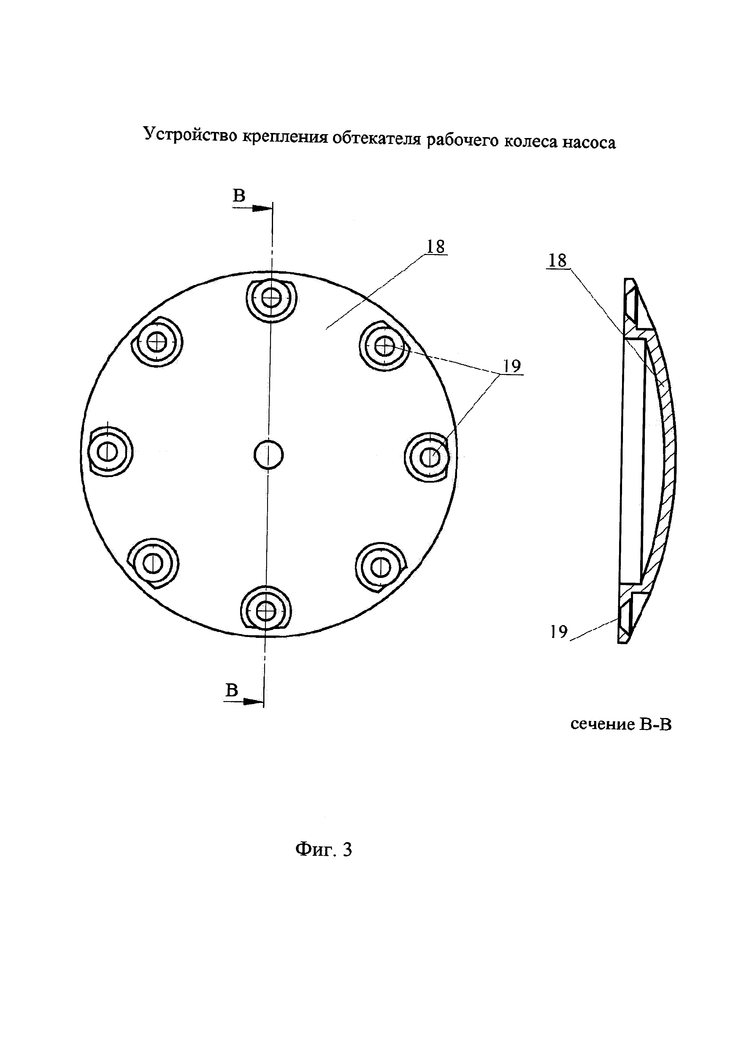 Изобретение относится к машиностроению, а именно к устройствам крепления обтекателя рабочего колеса циркуляционных насосных агрегатов, применяемых в системах водоснабжения тепловых и атомных электростанций. Устройство крепления рабочего колеса насоса содержит обтекатель, выполненный с фиксирующим кольцевым выступом для сопряжения с ответной поверхностью рабочего колеса, крепежный болт с резьбой для закрепления обтекателя соосно на рабочем колесе. Во внутренней центральной полости обтекателя выполнен стакан, обращенный донной частью к рабочему колесу. Донная часть стакана снабжена центральным отверстием для размещения резьбовой части крепежного болта и цилиндрическим упором, взаимодействующим с внутренней поверхностью головки крепежного болта, которая выполнена с кольцевой торцевой проточкой и галтельным переходом между ней и цилиндрической поверхностью крепежного болта. Внешняя сторона головки крепежного болта выполнена с кольцевой проточкой и выступом, ограненным для взаимодействия с монтажным инструментом в виде ключа. Между выступом и кольцевой проточкой выполнен галтельный переход, а обтекатель дополнительно снабжен крышкой. Изобретение направлено на создание устройства крепления рабочего колеса насоса, обладающего высокой надежностью. 3 з.п. ф-лы, 3 ил.