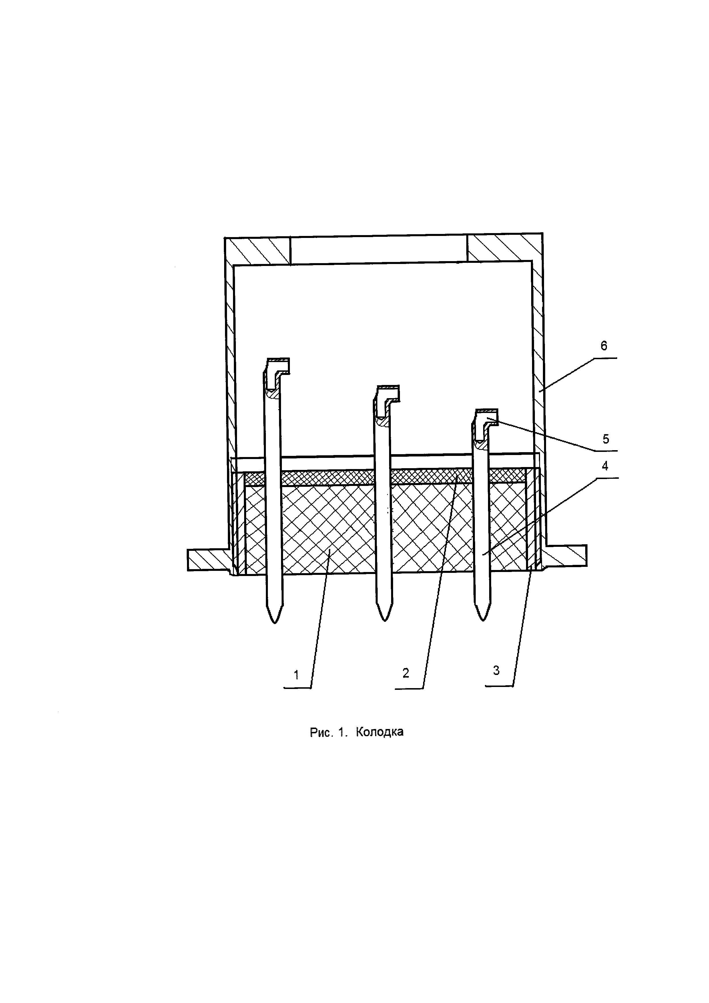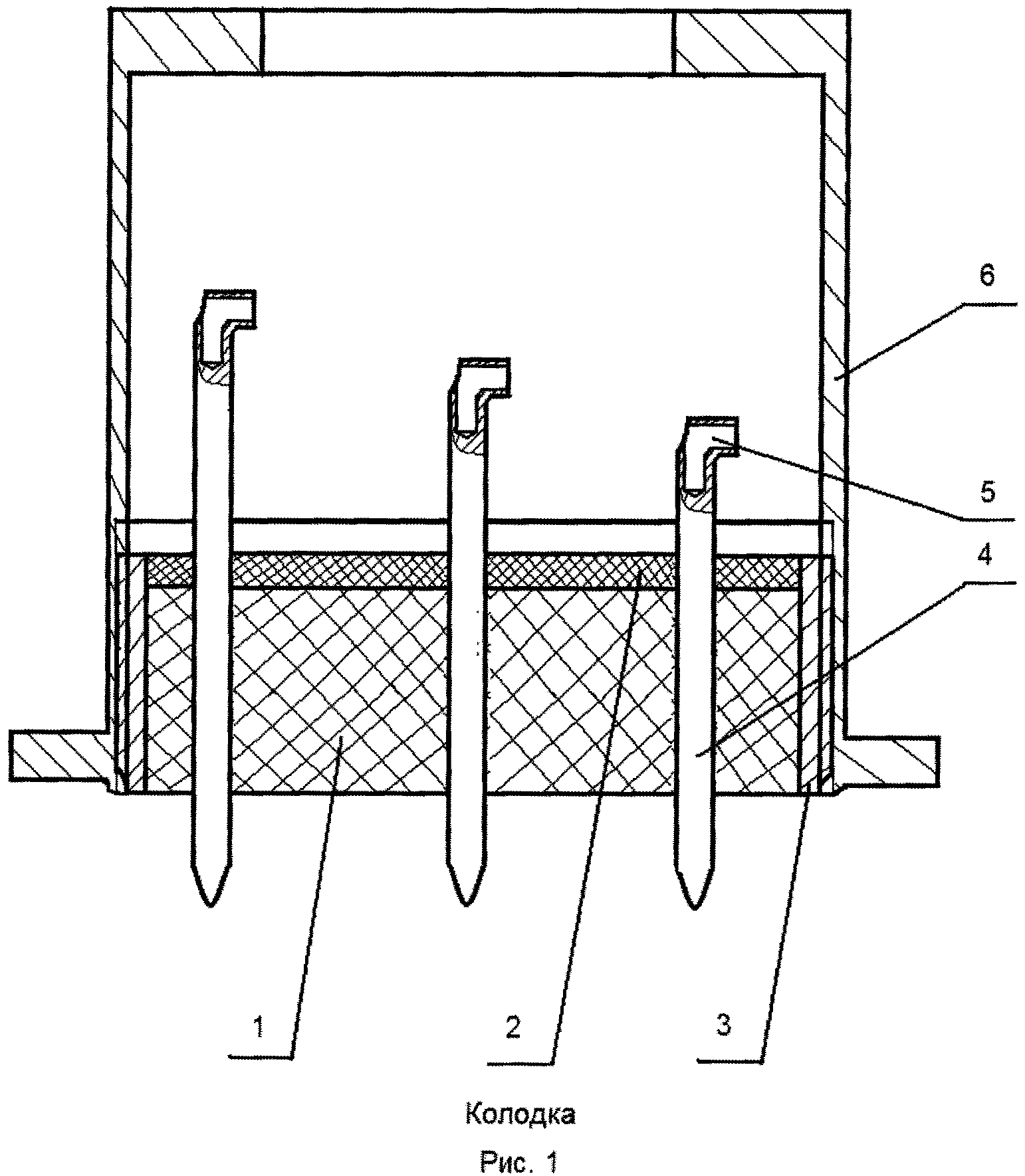 Предлагаемое устройство относится к области радио- и электротехники и может быть использовано в приборостроении. Известна электроизоляционная колодка для коммутации электрических цепей в условиях воздействия высоких температур (патент РФ №146229, МПК4 H01R 9/24, 1989 г.). Колодка содержит корпус (манжету), керамический изолятор с отверстиями, жесткие контактные штыри (выводы) с резьбой для подключения проводников. Керамический изолятор установлен в корпус, а контактные штыри установлены в отверстия изолятора, а коммутирующие проводники зафиксированы гайкой на штырях. Недостаток данной колодки состоит в том, что изолятор в корпусе и штыри в отверстиях изолятора не загерметизированы, что не позволяет использовать колодку для коммутации электрических цепей объектов, находящихся внутри загерметизированного объема, в частности внутри высоковакуумных приборов. Кроме того, торцы штырей расположены в одной плоскости, что не позволяет их использовать для коммутации таких объектов, как плоские контактные площадки, расположенные на разной высоте относительно друг друга. При использовании колодки в качестве вилки при ограниченном количестве штырей процесс сборки колодки с ответной частью (например, розеткой коммутируемого объекта) достаточно прост, но если количество штырей возрастает, то одновременно может накапливаться суммарная непараллельность штырей по отношению друг к другу и отверстий в ответной части коммутируемого объекта за счет погрешностей при изготовлении, что вызывает усложнение процесса сборки. Также известная колодка не содержит таких конструкционных элементов, как экраны, обеспечивающих при ее использовании помехозащищенность коммутируемых сигналов. Из известных устройств наиболее близким по технической сущности к заявляемому является герметичная колодка выводов, которая содержит керамическую пластину с металлическими выводами (гермовыводами), герметично заделанными в тело пластины, и металлизацией в месте контакта с корпусом (манжетой), выводы расположены на поверхности керамической пластины, нанесены методом толстопленочной технологии и покрыты изолирующим слоем стекла. На слой стекла нанесен слой металлизации для герметизации пайкой колодки и корпуса (патент РФ №1709427, МПК4 H01J 23/48, 1992 г.). Анализ прототипа выявляет его существенный недостаток, который заключается в том, что колодка не может быть использована для коммутации электрических цепей объектов, работающих при температурах выше 200°C. Токоведущие элементы в виде плоских металлических проводников (выводов) изготовлены по толстопленочной технологии, которая предполагает использование в качестве напыляемых материалов таких чистых металлов, как медь, хром и им подобных, термические коэффициенты линейного расширения которых в 3-4 раза выше, чем у керамики или стекла. Поэтому при нагреве известной колодки до температур выше 200°C происходит механическое разрушение выводов с обрывом электрической связи. Кроме того, торцы выводов расположены на колодке на одном уровне, что не позволяет ее использовать для коммутации таких объектов в ответной части, как плоские контактные площадки, расположенные на разной высоте друг относительно друга. Несмотря на наличие слоя металлизации, ширина слоя металлизации, как правило, выбирается исходя из глубины з