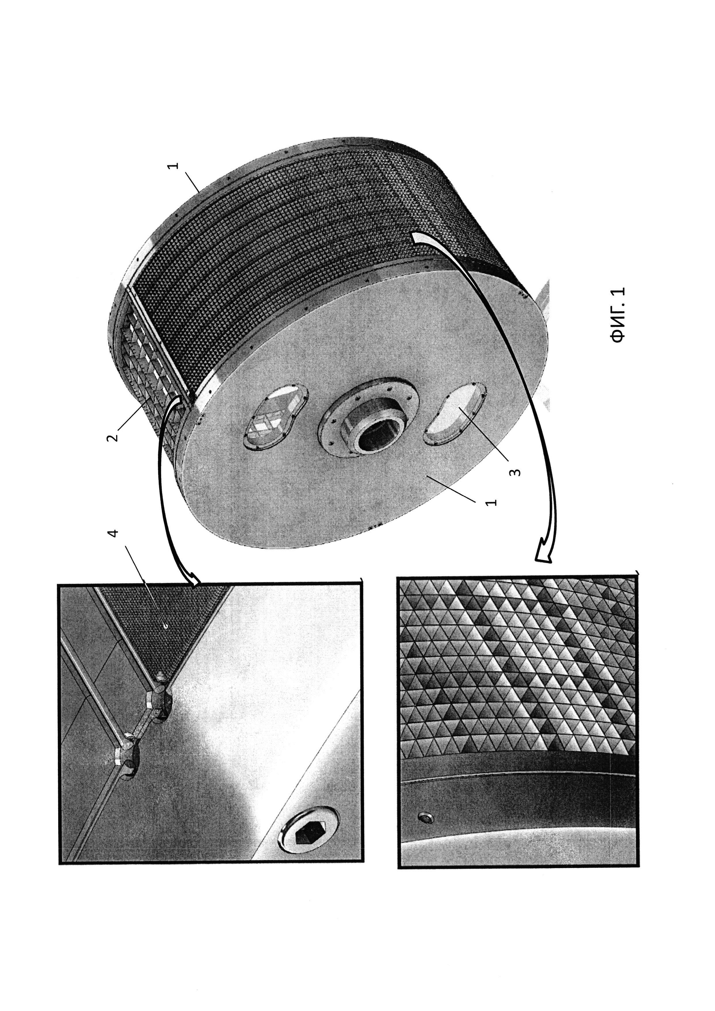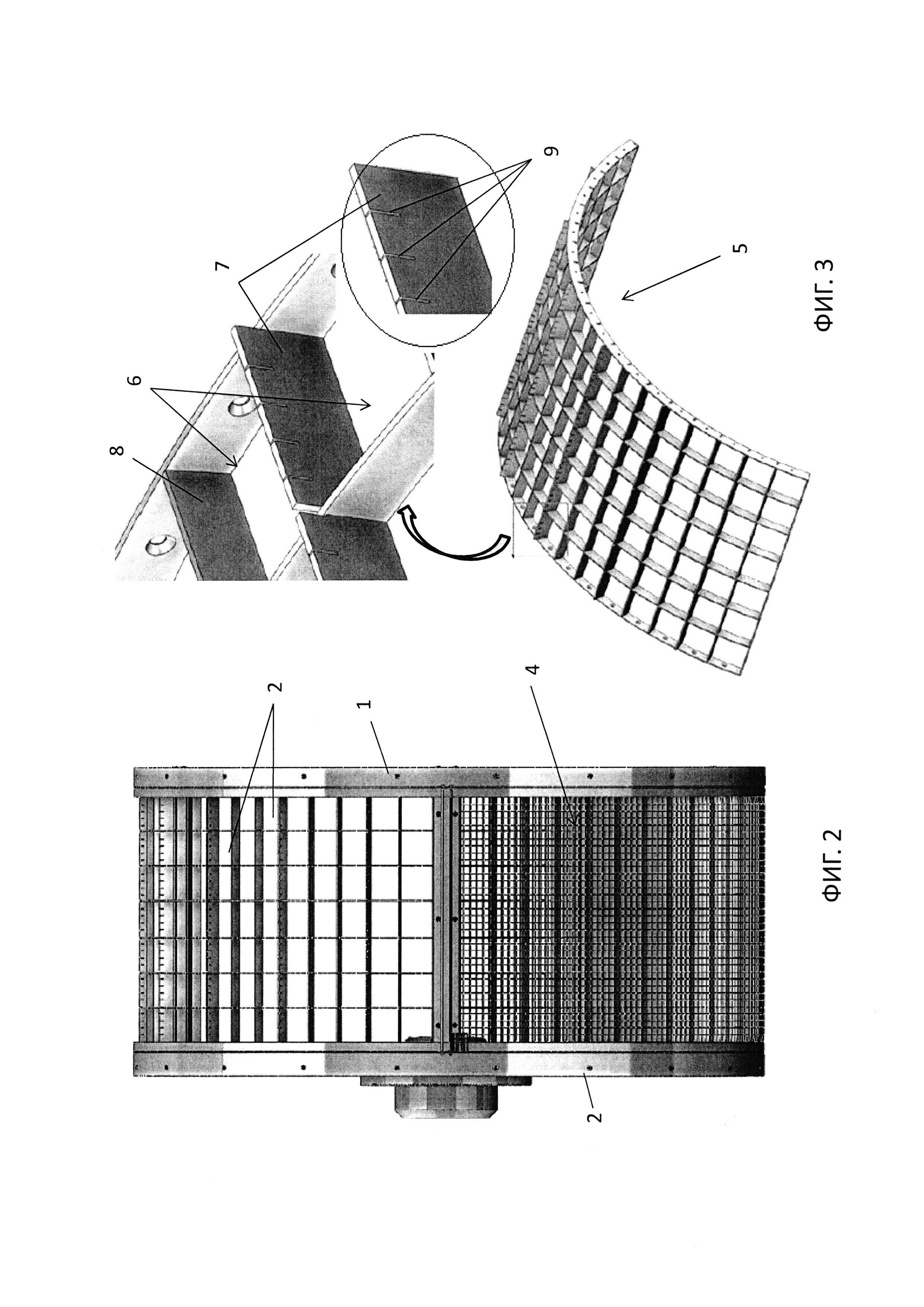 Изобретение в целом относится к области формования волокнистого изделия. Формовочный барабан для образования полотна из коротких волокон состоит из по крайней мере двух кольцевой формы силовых шпангоутов, расположенных на расстоянии друг от друга и связанных между собой поперечными пластинчатыми элементами, расположенными радиально и образующими вместе с силовыми шпангоутами каркас для размещения окружной сетчатой поверхности, при этом сетчатая поверхность образована укладкой вдоль и поперек сотовой секции радиально направленных пластинок, одни из которых вставлены в прорези других пластин. Согласно изобретению окружная сетчатая поверхность выполнена по крайней мере из двух участков, расположенных в окружном направлении и каждый из которых расположен на отдельной сотовой секции, выполненной в виде дугообразно изогнутой рамки, ограничивающей сотовую структуру, составленную из ячеек прямоугольной формы в плане, а образующие сетчатую поверхность пластинки расположены на сотовой секции с опиранием на образующие ячейки пластинки, причем для закрепления пластинок на сотовой секции часть поперечно расположенных и продольно расположенных пластинок выполнена с язычками с отогнутыми концами для зацепления с образующими ячейки пластинками на тыльной стороне сотовой секции, при этом поверх каждой рамки размещена съемно установленная сетка под осаждаемые короткие волокна. 2 з.п. ф-лы, 9 ил.