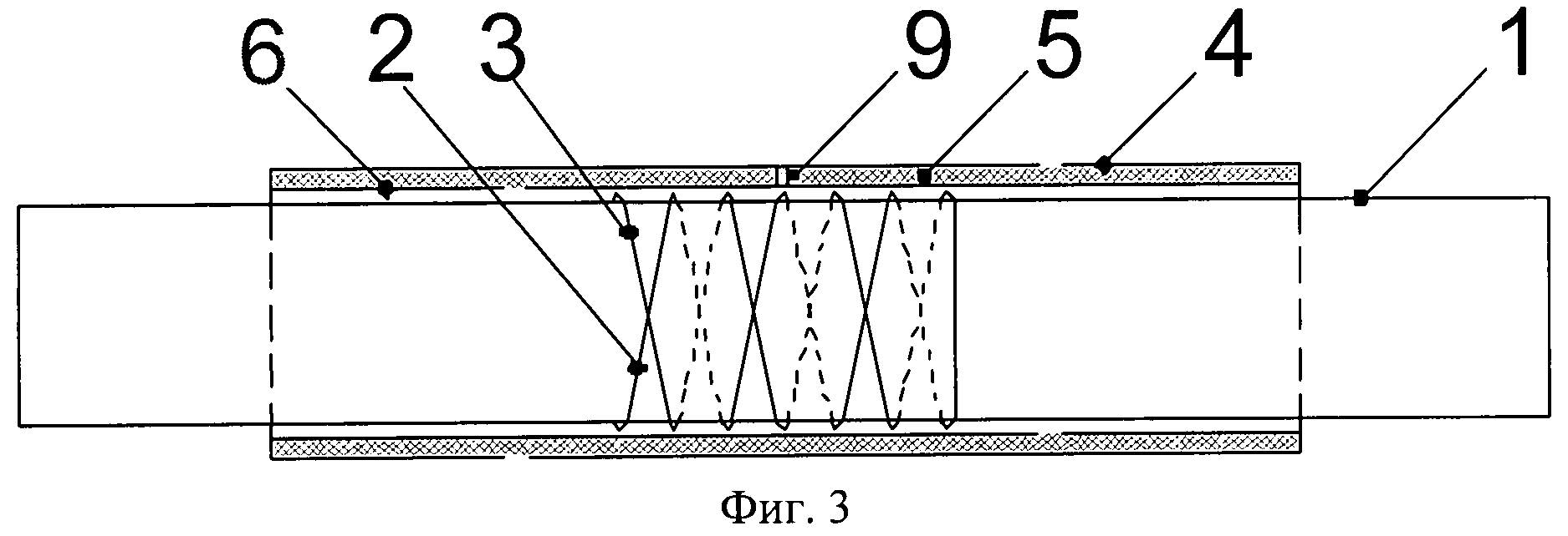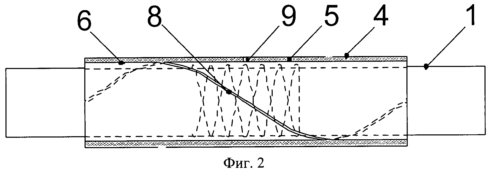 Изобретение относится к радиоприемной технике и может быть использовано в области радиоизмерений, радиосвязи, радионавигации или радиопеленгации. При решении задач анализа параметров радиоизлучений очень важным является сохранение первичной информации о радиоизлучении в сигнале на выходе приемной антенны. В этой роли себя наилучшим образом зарекомендовали приемные магнитные ферритовые антенны [1], которые при необходимой широкополосности обладают относительно небольшими габаритами. При этом основной помеховый фактор, вызывающий искажения выходного сигнала с ферритовой антенны, обусловлен влиянием на антенну электрического поля, сопутствующего в электромагнитной волне магнитному. Известна широкополосная приемная ферритовая антенна [2], в которой обмотка на стержневом ферритовом сердечнике помещена в электрический экран. Антенна предназначена для использования в радиоприемниках общего назначения. Недостатком антенны является то, что ее электрический экран представляет собой резистивную оболочку, плохо экранирующую даже слабопеременные электрические поля. Наиболее близким по своей технической сущности устройством (прототипом) является широкополосная приемная ферритовая антенна [3], содержащая обмотку, намотанную на стержневом ферритовом сердечнике и помещенную в электрический экран с продольной прямолинейной щелью, выполненный из металла с хорошей электропроводностью. Экран из металла с продольной щелью достаточно хорошо защищает обмотку ферритовой антенны в диапазоне частот от 0 до 100 кГц. Недостатком прототипа является то, что с дальнейшим ростом частоты такой экран становится все менее эффективным, и быстро возрастает восприимчивость антенны к помеховому воздействию электрической составляющей электромагнитного поля. Техническим результатом изобретения является снижение восприимчивости широкополосной приемной ферритовой антенны к электрической составляющей электромагнитного поля. Технический результат достигается тем, что у широкополосной приемной ферритовой антенны, содержащей обмотку, намотанную на стержневом ферритовом сердечнике и помещенную в электрический экран с продольной щелью, электрический экран выполнен в виде двух коаксиально вложенных одна в другую и разделенных диэлектрическим слоем электропроводящих оболочек с идентичными винтовыми щелями, каждая из которых совершает один оборот вокруг продольной оси оболочек на длине соответствующей оболочки, причем начала винтовых щелей сдвинуты относительно друг друга на 180°, и оболочки электрически соединены между собой по винтовой линии, равноотстоящей от линий винтовых щелей каждой из оболочек, а обмотка антенны выполнена в виде двух равных частей, намотанных одна поверх другой, встречно, и концы этих частей с одной стороны электрически соединены между собой, а с другой образуют дифференциальный выход антенны. В результате с помощью двухоболочечного электрического экрана с идентичными сдвинутыми друг относительно друга на 180° винтовыми щелями в каждой из оболочек, электрически соединенных между собой, обмотка антенны эффективно экранируется от действия поперечных к продольной оси оболочек компонент электрического поля, а продольная компонента электрического поля, параллельная оси оболочек, возбуждает в каждой из