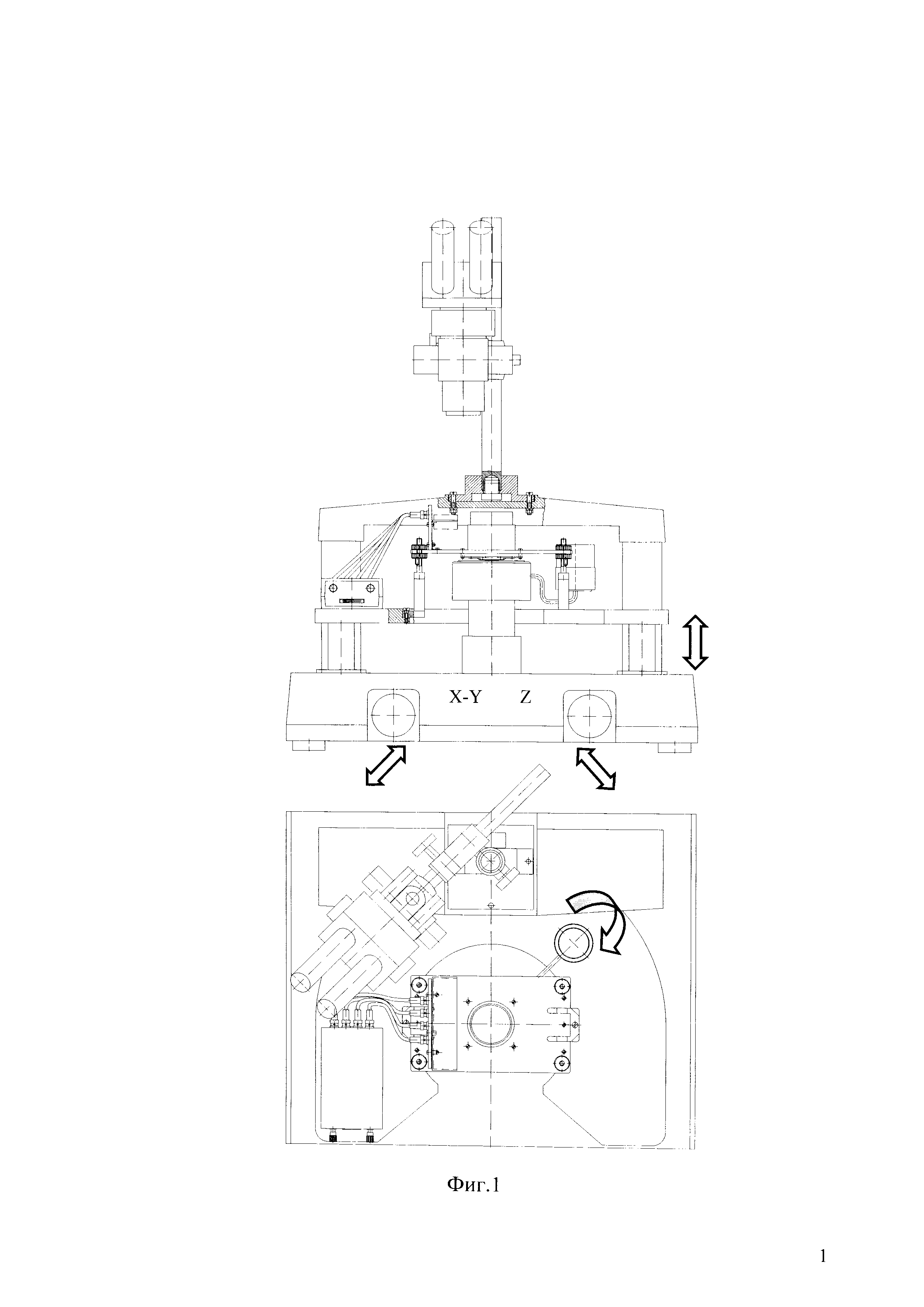 Изобретение относится к технологии изготовления полупроводниковых фотоприемников (ФП) и может использоваться при создании матричных фотоприемников (МФП) различного назначения. Известен способ изготовления матричного фотоприемника, описанный в [RU 2460174 C1], в котором фоточувствительный элемент из InSb утоньшался, как правило, до толщины 8-12 мкм. Такой способ изготовления предполагает проведение технологического контроля МФП до и после утоньшения при температуре жидкого азота. Однако при обычном способе контроля изготовленный фоточувствительный модуль, как показано на фиг. 2, после гибридизации БИС считывания (2) и матрицы фоточувствительных элементов (1) при помощи индиевых микроконтактов приклеивался криостойким клеем на растр (3, типично из сапфира) и разваривался проволочками. Далее БИС считывания (2) разваривалась на растр (3). После приклейки сборки с помощью временного клеевого соединения со стеклянным держателем проводилась разварка проволочками с растра на контакты держателя. После чего проводилось откачивание внутренней полости и герметизация через стеклянный спай (4). Далее проводился контроль фотоэлектрических параметров. При таком способе практически невозможен межоперационный контроль (например, до и после утоньшения), а финишный контроль перед сборкой на штатный держатель трудоемок и длителен. Аналогичными недостатками обладает тестирование с помощью металлического криостата, описанного в патенте [RU 2492435 C1]. С другой стороны, существует множество контактных устройств с фиксированным расположением зондов [см. ссылки в патенте US 8410806 В2], однако, они не позволяют охлаждать МФП до температуры жидкого азота [Автомат зондового контроля ЭМ-6290 компании ПЛАНАР-СО, ОАО, Минск (Беларусь), http://planar-so.all.biz/ru/avtomat-zondovogo-kontrolya-em-6290-g176176. Устройство контактное с фиксированным расположением зондов - УКФ, КБТЭМ-СО, УП, Минск (Беларусь), http://belarus.oborudunion.ru/company.php?comp=2461065. Устройства для зондового контроля полупроводниковых приборов, НП ООО СПЕКТРИН, Минская область, г. Держинск (Беларусь), http://www.spektrin.com/ru/about/. Устройства контактные с фиксированной топологией зондов УКФ, УП «Аранэй», Минская область, Минский район, район деревни Боровая 1 (Беларусь)]. Наиболее близким аналогом заявляемого устройства является полуавтоматическая криогенная зондовая установка фирмы Cascade Microtech, Inc [РАС200: 200 mm Semi-automated Cryogenic Probe System, Cascade Microtech, Inc., www.cascademicrotech.com], которая позволяет проводить межоперационный контроль МФП на пластинах и отдельных чипах при криогенных температурах. Однако такая многофункциональная и дорогостоящая система не позволяет проводить тестирование достаточно оперативно из-за необходимости откачки внутреннего значительного объема до охлаждения, во время охлаждения и во время отогревания. Характерное время термоцикла такой системы составляет величину существенно больше 1 часа. Заявляемое изобретение решает задачу оперативного межоперационного контроля матричных фотоприемников при температуре жидкого азота, где время термоцикла в основном ограничено временем охлаждения пьедестала (5 на фиг. 3) и может достигать пяти-десяти минут. Для этого использовалась зондовая установка открытого типа, как показано на фиг. 1, которая позволяла проводить охлаждения без временных затрат на откачку внутреннего объема. Основу ее составляло сменное кон