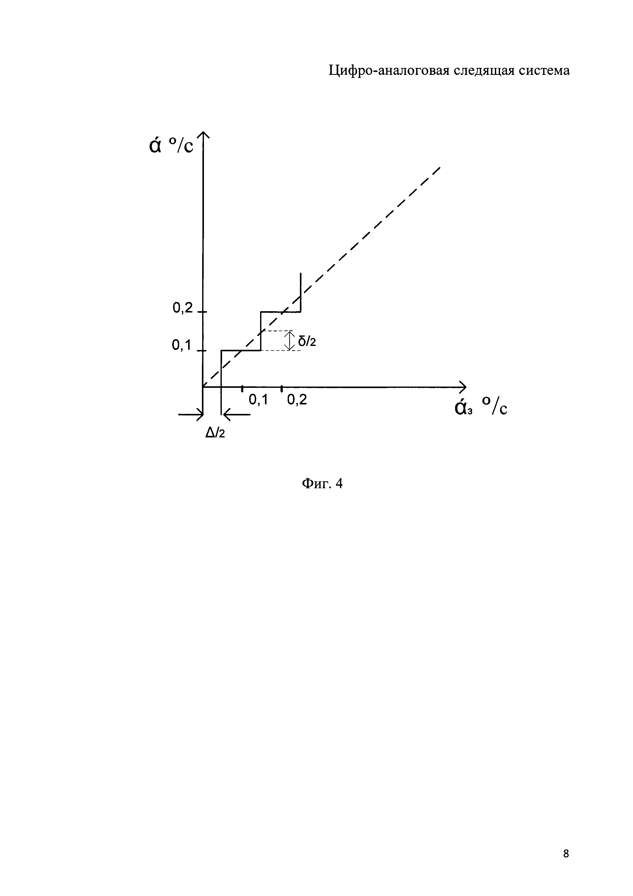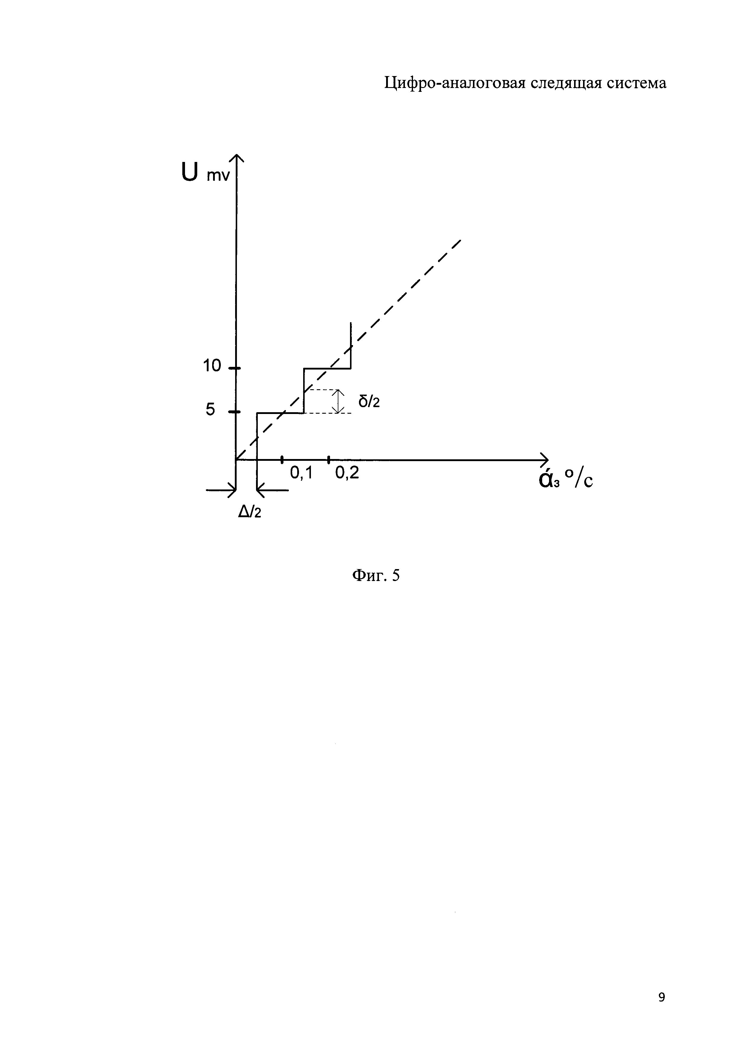 Изобретение относится к области автоматики и может быть использовано при построении следящих систем, управляемых от цифровых вычислительных устройств. Технический результат заключается в уменьшении зоны нечувствительности следящей системы и погрешности воспроизведения скорости и, как следствие, в повышении точности системы. Указанный технический результат достигается за счет того, что в цифро-аналоговую следящую систему, содержащую задающее цифровое вычислительное устройство, цифро-аналоговый преобразователь и скоростной привод, введен между задающим цифровым вычислительным устройством и цифро-аналоговым преобразователем n-разрядный сумматор, при этом задающее цифровое вычислительное устройство формирует заданное значение скорости в виде параллельного двоичного кода, n старшие разряды которого поступают на первый вход n-разрядного сумматора, а «n+1» разряд поступает на второй вход младшего разряда n-разрядного сумматора, а по остальным разрядам на второй вход n-разрядного сумматора поступают постоянные нули. 5 ил.