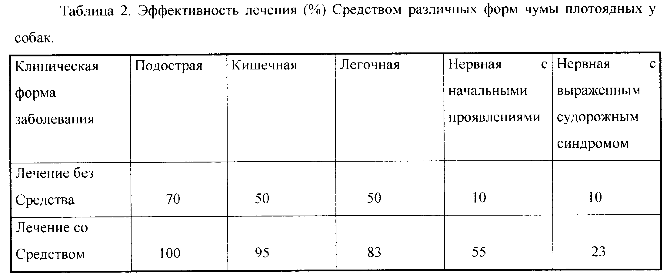 наблюдается при дозе средства 200 мкг/мл. 1.2. Терапевтическая активность средства при чуме плотоядных у собак. Для оценки терапевтической
