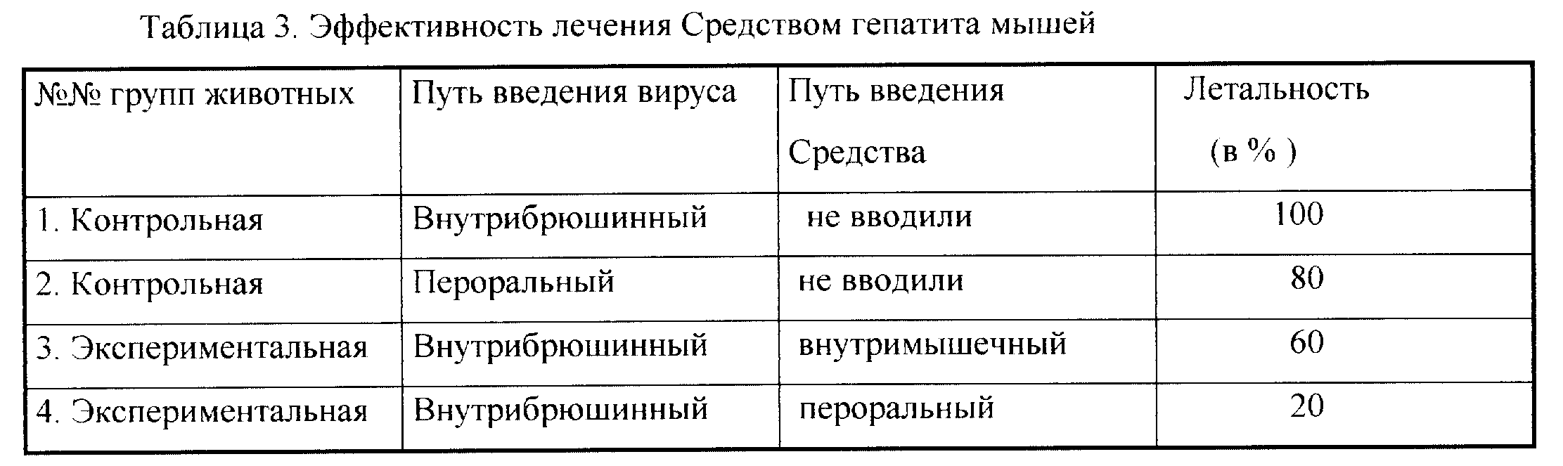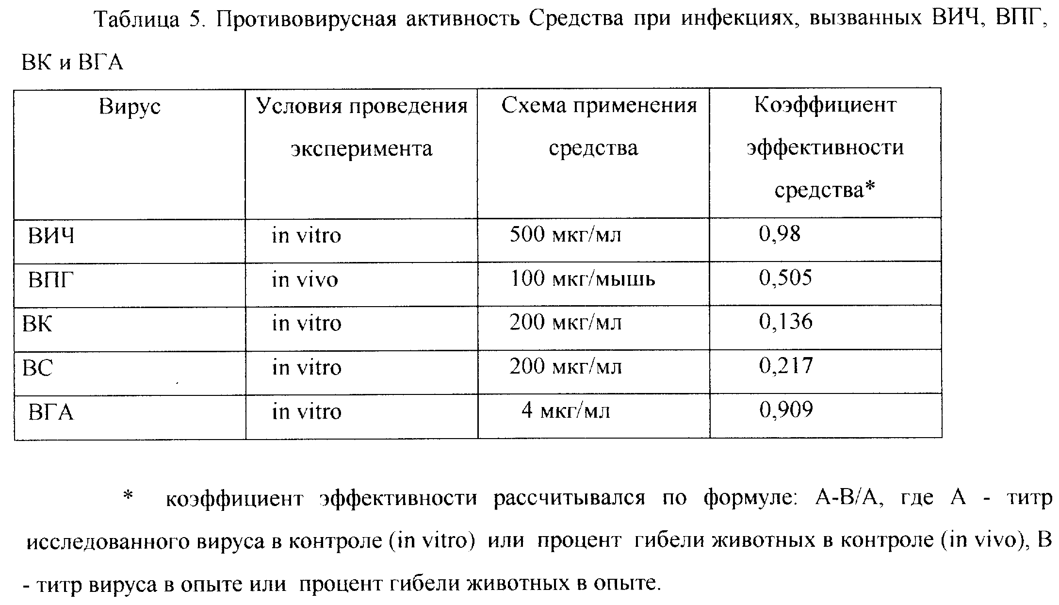 N 2005475, A 61 K 31/21, 1991). Использование известного противовирусного средства недостаточно эффективно для борьбы с вирусами. Технический результат от использования предлагаемого