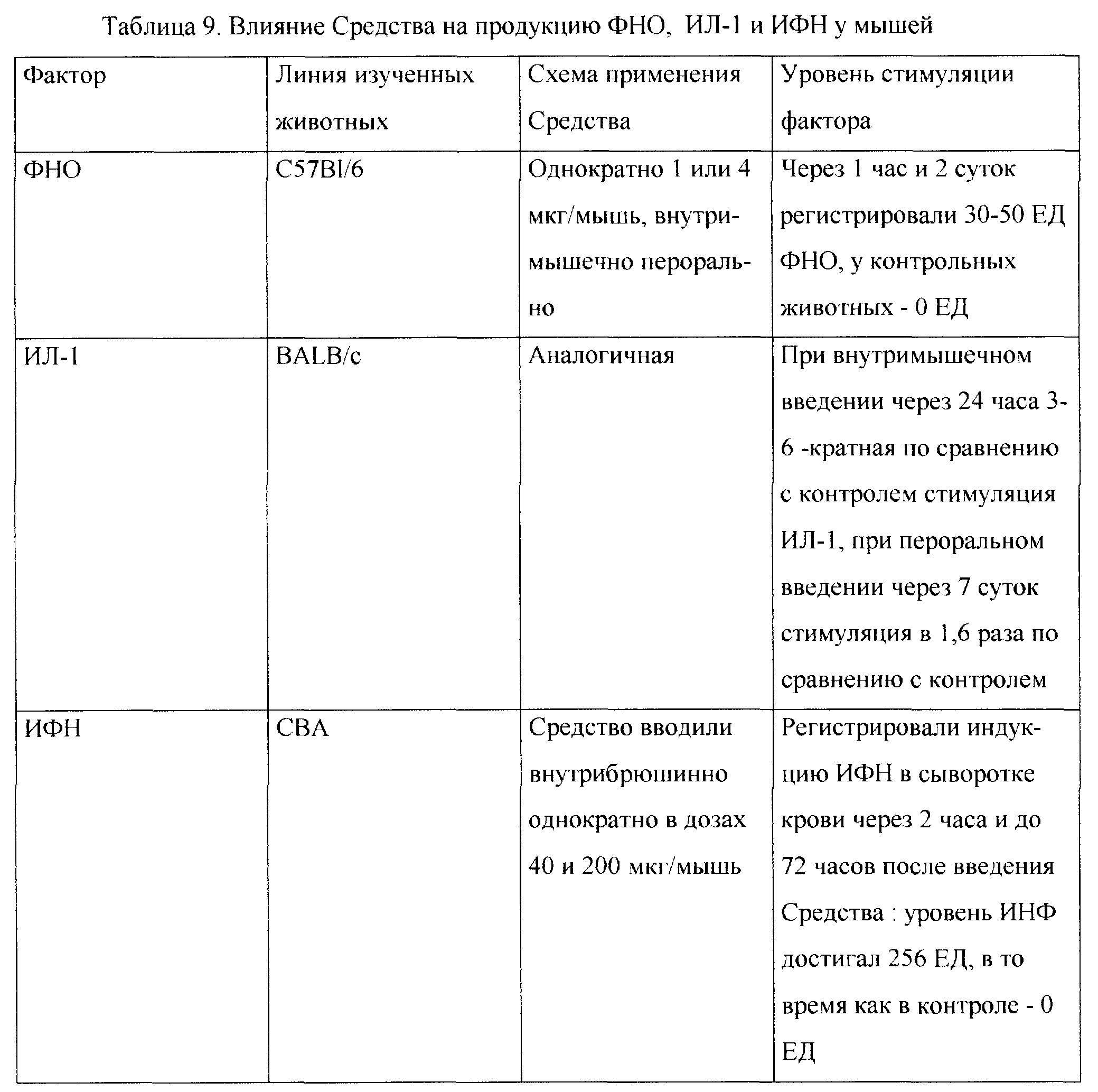 в табл.9, показывают, что средство является стимулятором всех исследованных фактором, то есть повышает естественную