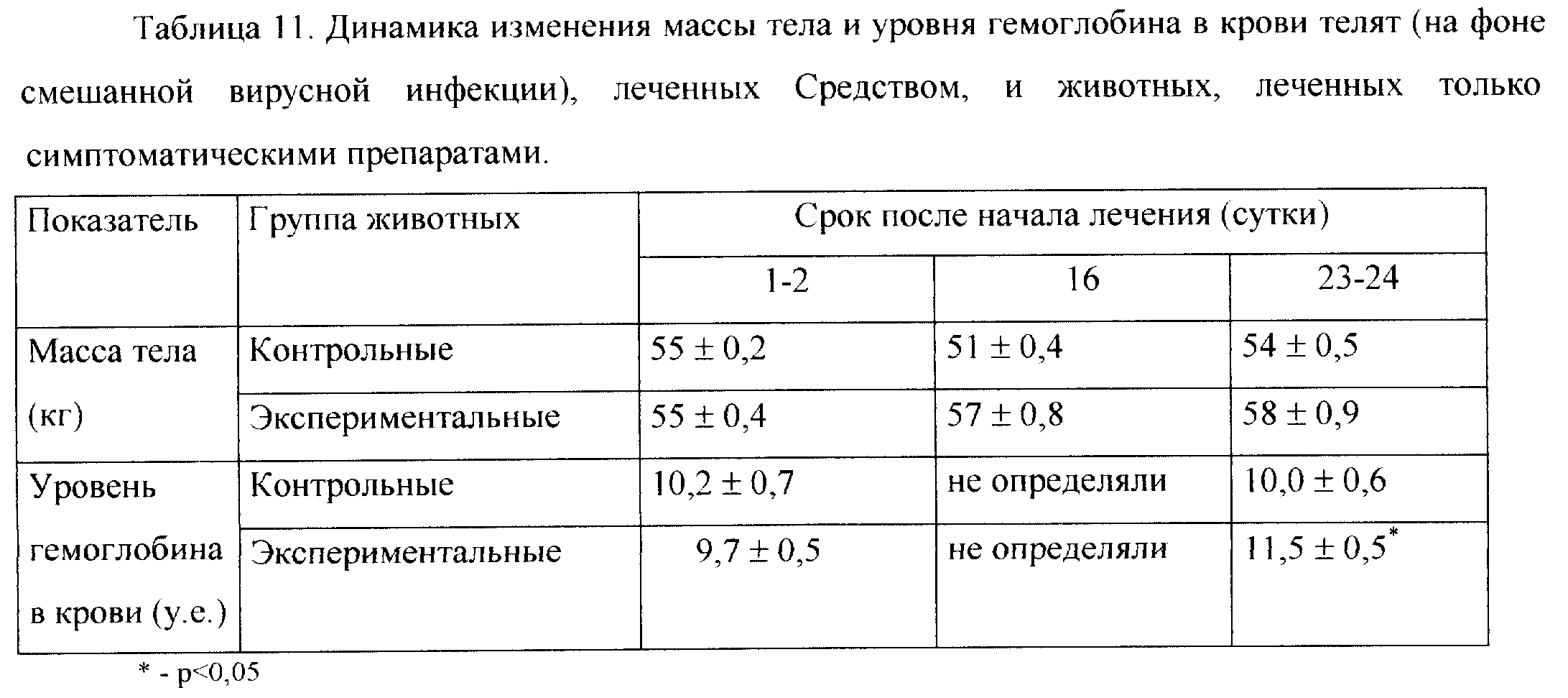 получавших средство (см. табл.11). При этом прибавка по первому показателю (масса тела) у