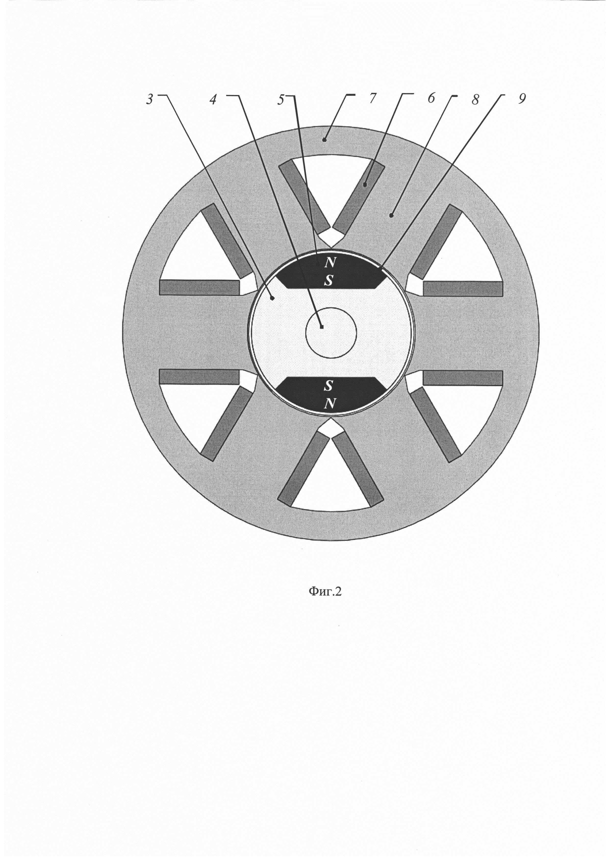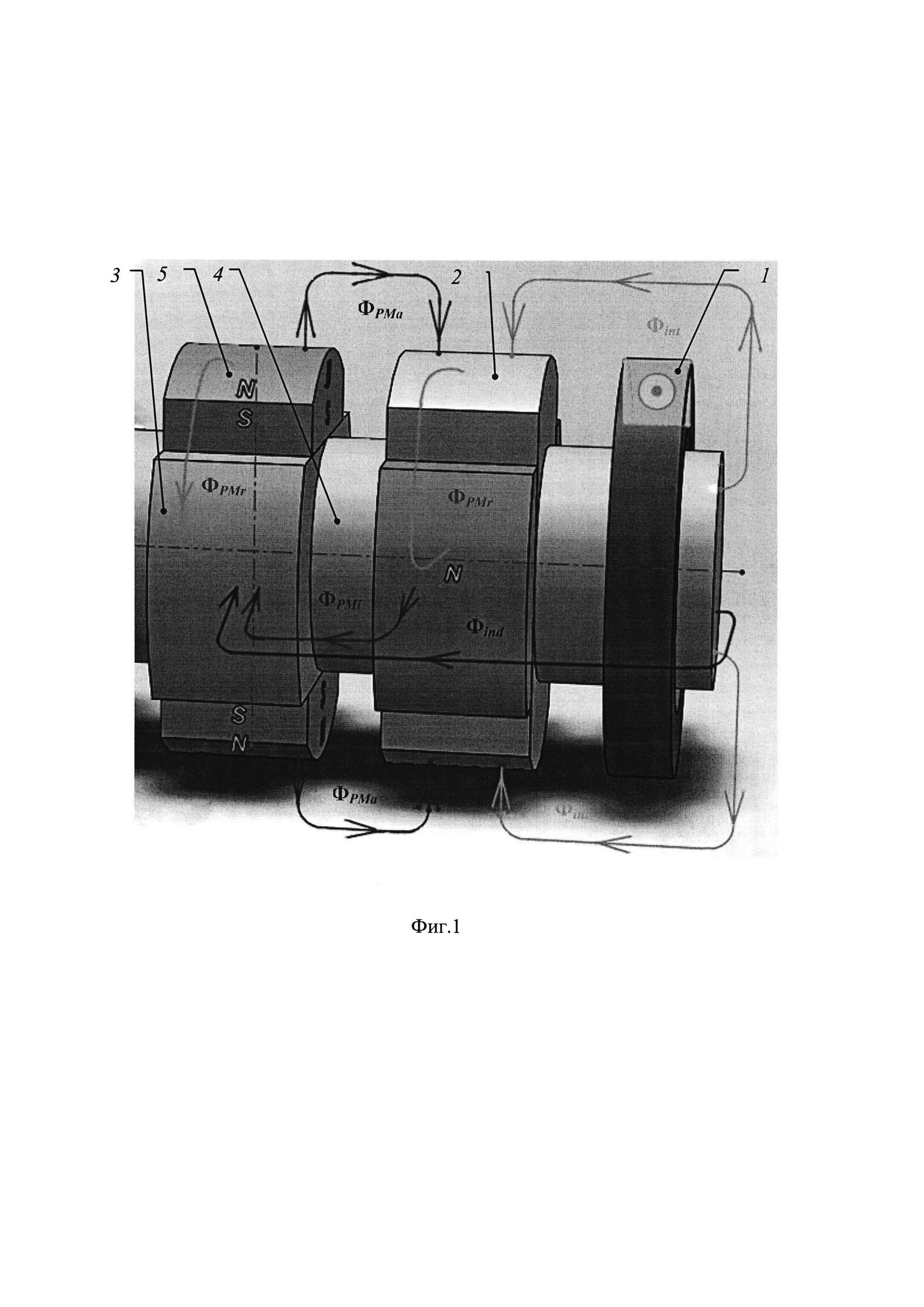 1. Двухпакетная индукторная электрическая машина с комбинированным возбуждением, содержащая два пакета, в каждом из которых статоры содержат шихтованные сердечники с размещенными на них трехфазными обмотками якоря, ферромагнитный вал, на котором установлены два ферромагнитных стальных сердечника ротора с роторными выступами, радиально намагниченные постоянные магниты (ПМ) с одинаковой полярностью, расположенные между ферромагнитными роторными выступами, неподвижную кольцевую обмотку возбуждения осевого магнитного потока, установленную на внутренней стороне ферромагнитного подшипникового щита, отличающаяся тем, что трехфазные обмотки якоря двух пакетов электрически независимы, выполнены сосредоточенными в виде кольцевых или рейстрековых катушек, при этом статоры с трехфазными независимыми сосредоточенными обмотками якоря выполнены со сдвигом, равным 30 электрическим градусам, а ферромагнитные стальные сердечники ротора с роторными выступами повернуты относительно друг друга на 90 электрических градусов, обмотки якоря и обмотка возбуждения выполнены из сверхпроводникового материала. 2. Машина по п. 1, отличающаяся тем, что в качестве сверхпроводникового материала сосредоточенных обмоток якоря и обмотки возбуждения используются высокотемпературные сверхпроводники второго поколения (ВТСП-2). 3. Машина по п. 1, отличающаяся тем, что в качестве сверхпроводникового материала обмоток якоря используется диборид магния. 4. Машина по п. 1, отличающаяся тем, что на роторе между пакетами и между пакетом и подшипниковым щитом дополнительно размещены аксиально намагниченные постоянные магниты. 5. Машина по п. 1, отличающаяся тем, что сердечники статоров одного или обоих пакетов дополнительно содержат витки обмотки якоря возбудителя. 6. Двухпакетная индукторная электрическая машина с комбинированным возбуждением, содержащая два пакета, в каждом из которых статоры содержат шихтованные сердечники с размещенными на них трехфазными обмотками якоря, ферромагнитный вал, на котором установлены два ферромагнитных стальных сердечника ротора с роторными выступами, радиально намагниченные постоянные магниты (ПМ) с одинаковой полярностью, расположенные между ферромагнитными роторными выступами, неподвижную кольцевую обмотку возбуждения осевого магнитного потока, установленную на внутренней стороне ферромагнитного подшипникового щита, отличающаяся тем, что трехфазные обмотки якоря двух пакетов электрически независимы, при этом статоры с трехфазными независимыми обмотками якоря выполнены со сдвигом, равным 30 электрическим градусам, а ферромагнитные стальные сердечники ротора с роторными выступами повернуты относительно друг друга на 90 электрических градусов, обмотки якоря и обмотка возбуждения выполнены из резистивных проводников. 7. Машина по п. 6, отличающаяся тем, что на роторе между пакетами и между пакетом и подшипниковым щитом дополнительно размещены аксиально намагниченные постоянные магниты. 8. Машина по п. 6, отличающаяся тем, что сердечники статоров одного или обоих пакетов дополнительно содержат витки обмотки якоря возбудителя.