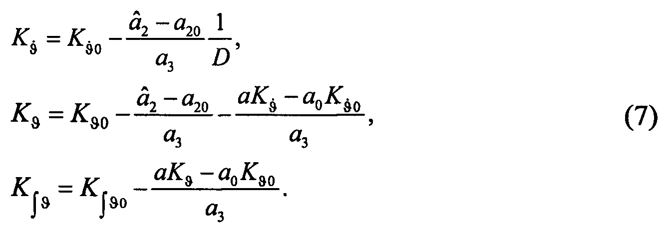 - коэффициенты усиления, обеспечивающие выполнение требований к качеству переходных процессов при номинальных аэродинамических характеристиках, D - добротность рулевого привода,