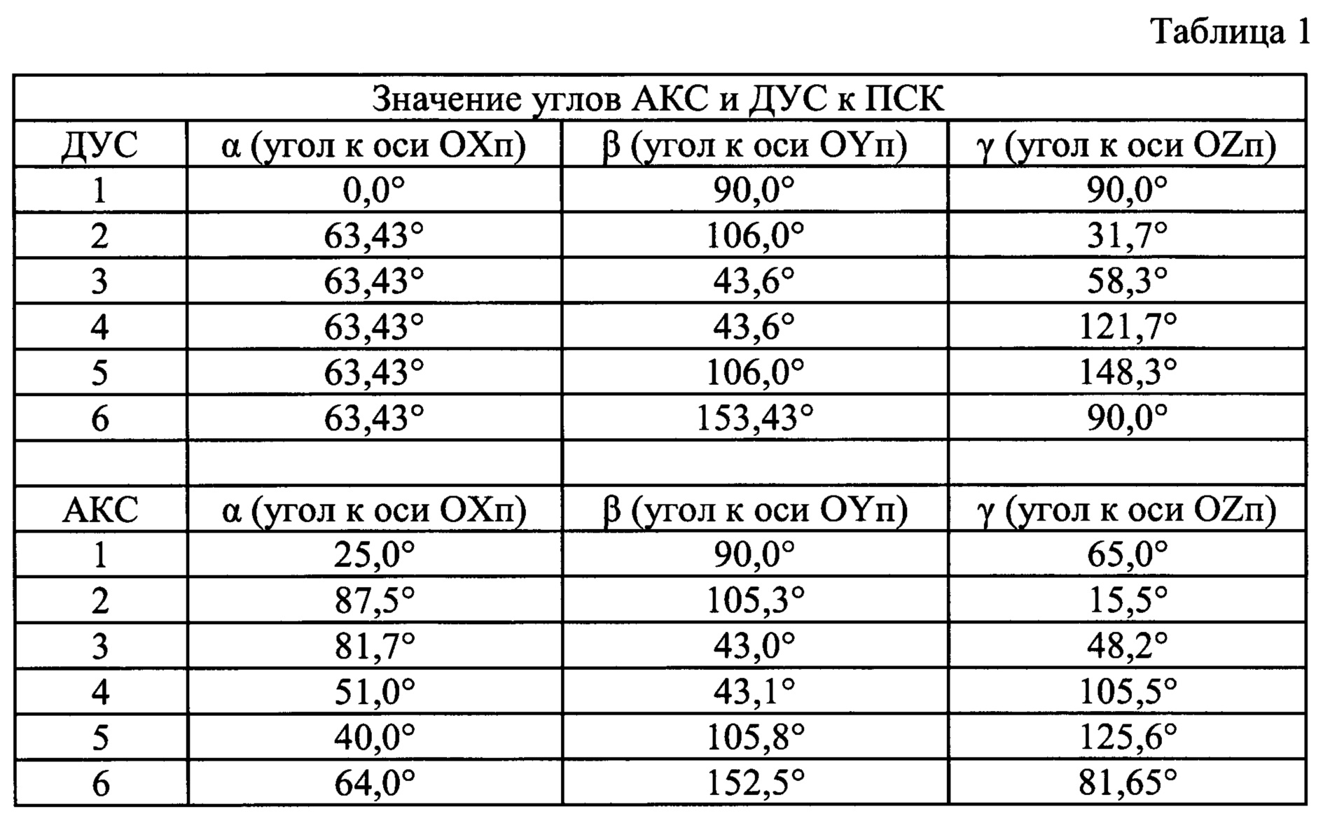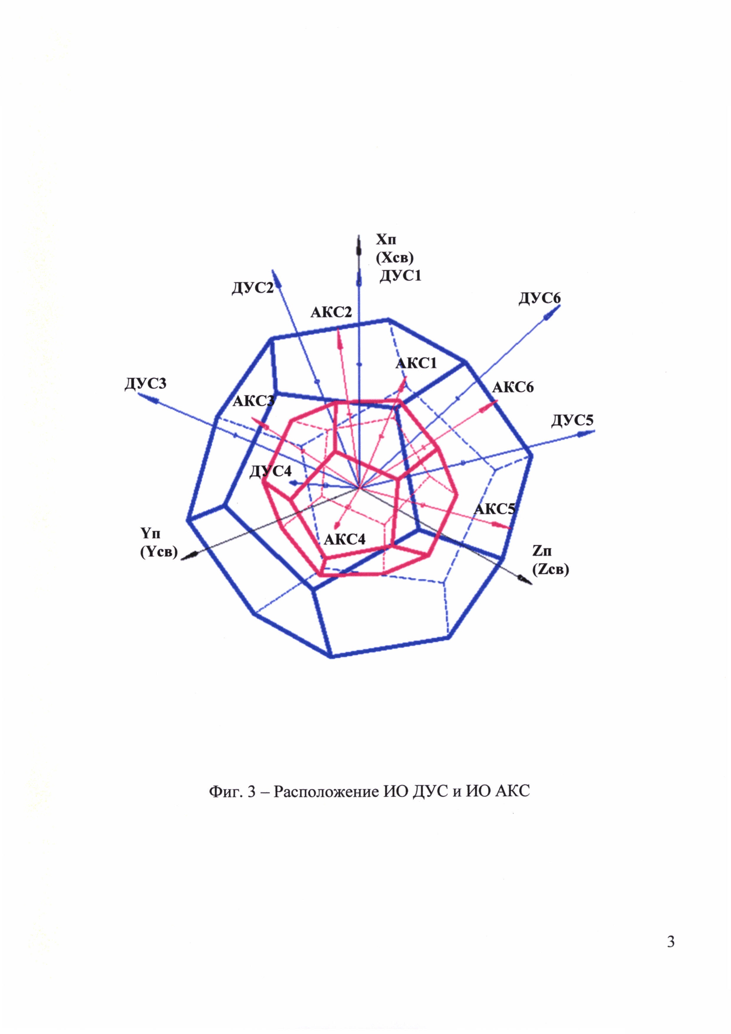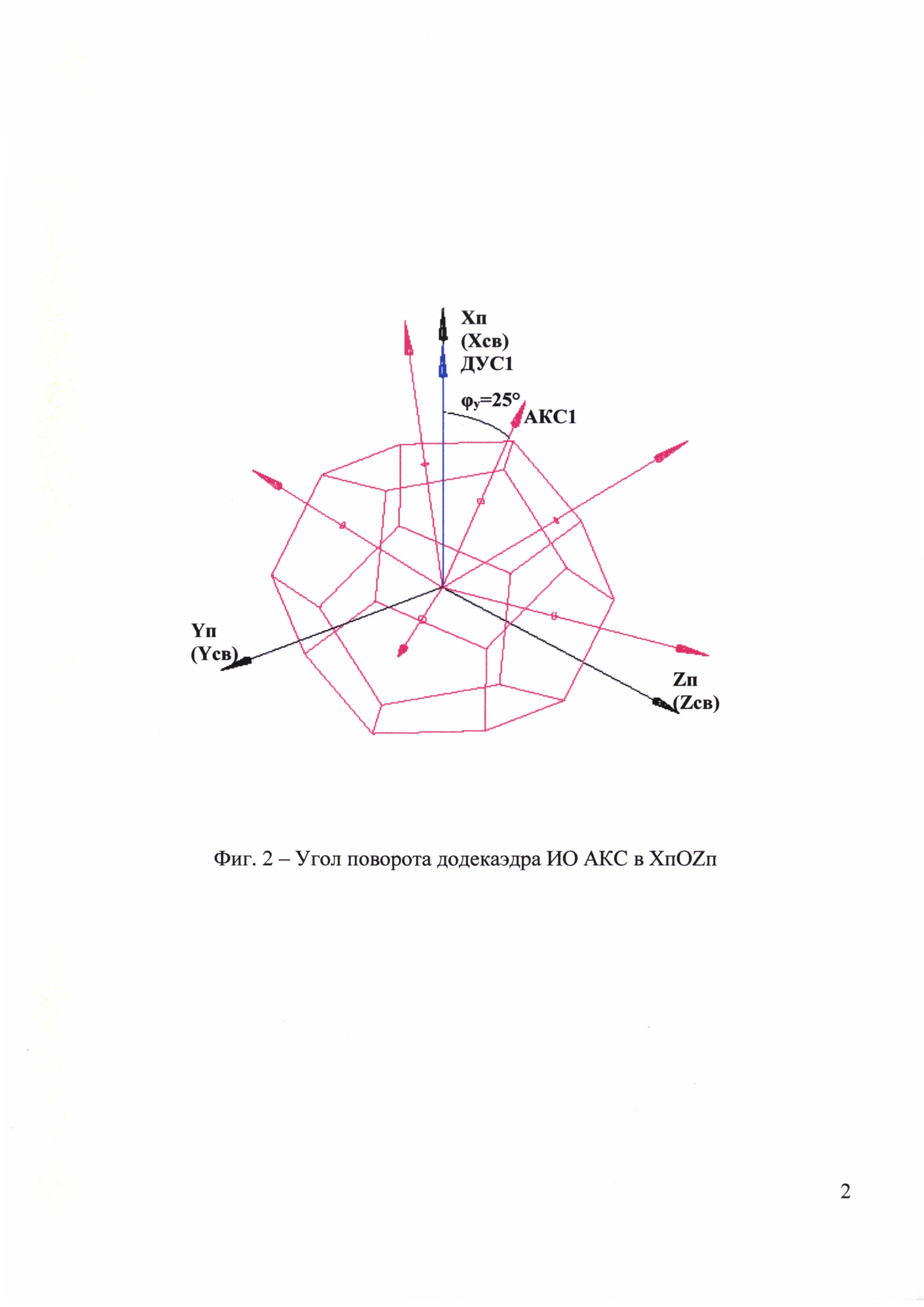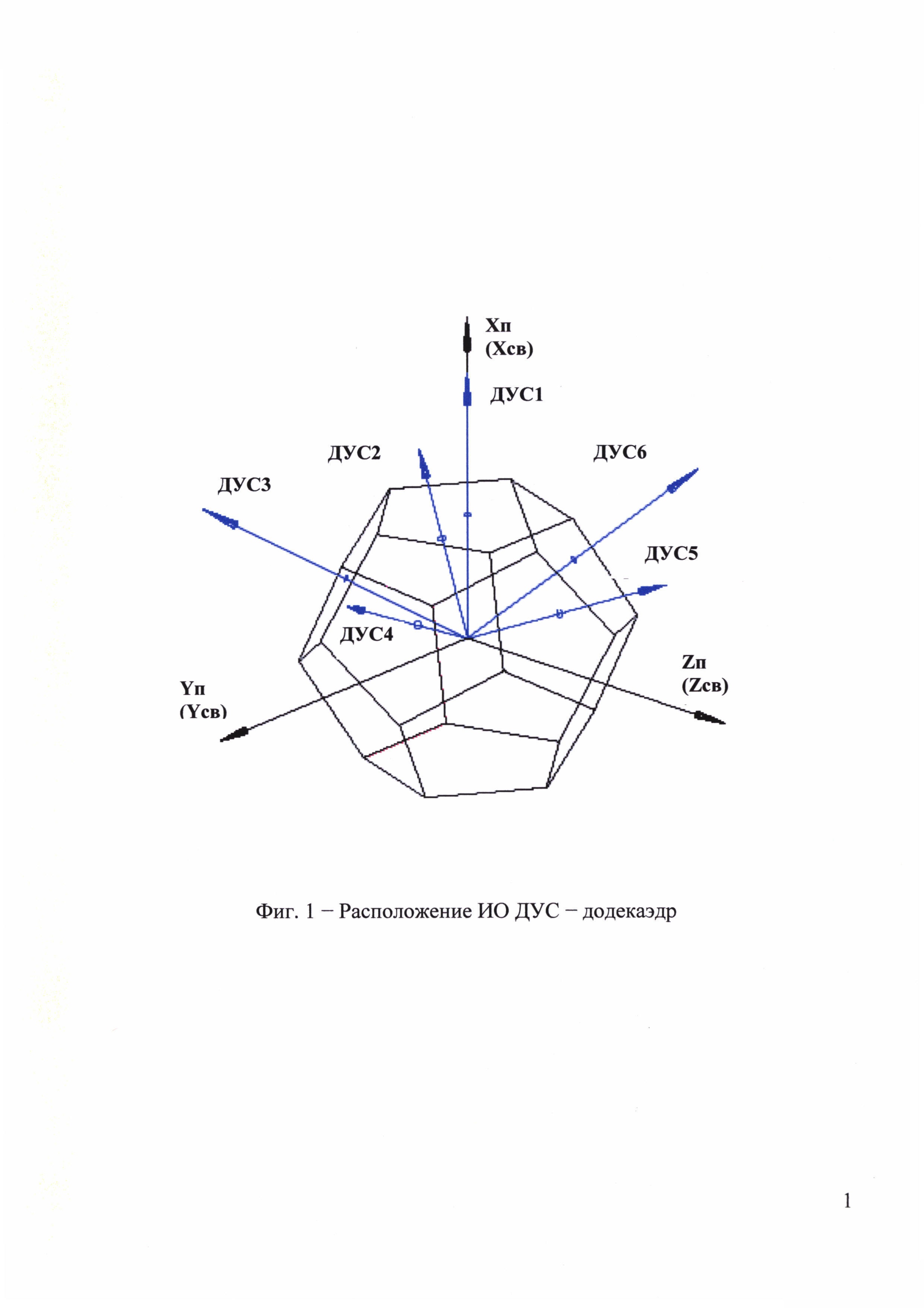 Изобретение относится к области измерительной техники и приборостроения и может быть использовано в летательных аппаратах (самолетах и космических летательных аппаратах), наземных и морских транспортных средствах для измерения векторов линейного ускорения и угловой скорости. Известен блок преобразователей механической величины в виде линейного ускорения или угловой скорости (патент РФ №2432548), в котором использованы шесть однотипных преобразователей механической величины, например, акселерометров или датчиков угловой скорости (ДУС), измерительные оси (ИО) которых ориентированы по многограннику (додекаэдру). Направление ИО каждого измерителя механической величины совпадает с нормалью к грани додекаэдра. Причем на одной из граней пары граней из шести пар граней додекаэдра, параллельных друг другу, установлено по одному преобразователю механической величины. Недостатком этой конфигурации является невозможность одновременного измерения параметров движения: линейного ускорения и угловой скорости, так как в изделии устанавливается шесть преобразователей одного типа. Задачей предлагаемого изобретения является создание бесплатформенного инерциального блока, который будет измерять проекции вектора линейного ускорения и вектора угловой скорости и позволит повысить точность и надежность бесплатформенной инерциальной навигационной системы (БИНС). Поставленная задача достигается тем, что известный прототип, в котором установлены шесть однотипных преобразователей механической величины, шесть акселерометров или шесть ДУС, ориентированных по додекаэдру, причем на одной из граней пары граней из шести пар граней додекаэдра, параллельных друг другу, установлено по одному преобразователю механической величины с направлением ИО относительно нормали к грани додекаэдра, дополнен тем, что в нем установлены шесть акселерометров и шесть ДУС, причем ИО центрального ДУС совпадает с нормалью к грани додекаэдра и с осью направления движения объекта в связанной с объектом движения системе координат, ИО остальных пяти ДУС направлены по нормалям к каждой из пяти граней додекаэдра, примыкающих к грани додекаэдра центрального ДУС, ИО центрального акселерометра совпадает с нормалью к грани додекаэдра и отклонена от оси направления движения объекта на угол 25°, ИО остальных пяти акселерометров направлены по нормалям к каждой из пяти граней додекаэдра, примыкающих к грани додекаэдра центрального акселерометра, таким образом, ИО акселерометров, ориентированные по додекаэдру акселерометров отклонены от ИО ДУС, ориентированных по додекаэдру ДУС на угол 25°. На фиг. 1 приведено расположение ИО ДУС, где принимается, что XпYпZп - приборная система координат (ПСК) БИНС с точностью до технологических погрешностей установки совпадает с XсвYсвZсв - связанной системой координат (ССК) объекта движения. Конфигурация, в основе которой используется додекаэдр - правильный двенадцатигранник, каждая грань которого представляет собой правильный пятиугольник, строится на ИО шести ДУС (ДУСi, i=1, 2…6). ИО ДУС направлены по нормалям к попарно непараллельным граням додекаэдра. Для расположения конфигурации додекаэдра ИО ДУС в ССК объекта (XсвYсвZсв) принимается положение, согласно которому ИО центрального в конфигурации ДУС1 совпадает с осью ОХп. Приче