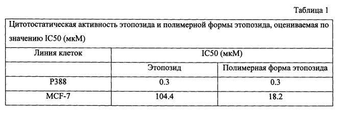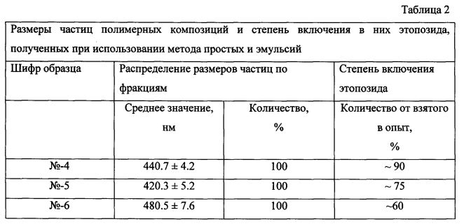 Область техники Изобретение относится к области фармакологии и медицины, а именно к новому поколению противоопухолевых препаратов на основе этопозида. Уровень техники Повышение эффективности лечения злокачественных новообразований является актуальной медицинской и социально-экономической проблемой. Известно, что химиотерапевтические методы лечения злокачественных опухолей затруднены низкой специфичностью многих препаратов, действующих также на здоровые ткани. Полимерные системы доставки противоопухолевых средств можно рассматривать в качестве перспективного технологического подхода повышения эффективности и безопасности противоопухолевых препаратов. Известно, что опухолевые ткани обладают способностью аккумулировать полимерные частицы. Для некоторых противоопухолевых лекарственных средств, таких как паклитаксел, доцетаксел, цисплатин, показано значительное увеличение эффективности полимерных систем доставки по сравнению со свободными веществами. В соответствии с современными представлениями идеальный полимерный носитель должен обладать рядом свойств, такими как: биосовместимость и биодеградируемость; способность защищать лекарственное вещество от быстрой деградации и обеспечивать селективность транспорта лекарственного средства в органы/клетки-мишени; способность обеспечивать пролонгированное действие лекарственного вещества; пригодность для различных способов введения; стабильность; апирогенность; возможность стерилизации. Всем вышеперечисленным требованиям в полной мере удовлетворяет биодеградируемый фармацевтический полимер полилактидгликолид (сополимер молочной и гликолевой кислот - PLGA), в связи с чем весьма актуальным представляется создание полимерных форм противоопухолевых препаратов на его основе. Одним из самых активных и полезных противоопухолевых агентов является этопозид, который используется обычно при лечении герминогенных опухолей (опухоли яичка, хориокарцинома), рака яичников, мелкоклеточного и немелкоклеточного рака легкого, лимфогранулематоза, неходжкинских лимфом, рака желудка (монотерапия и в составе комбинированной терапии), саркомы Юинга, саркомы Калоши, нейробластом, рака молочной железы (с метастазами в печень, в плевру), острых нелимфобластный лейкозов, мезотелиомы [1, 2]. Этопозид относится к полусинтетическим эпиподофиллотоксинам, производным 4′-диметилэпиподофиллотоксина, содержащегося в экстракте мандрагоры [3]. Этопозид в форме раствора для инъекций включен в Перечень жизненно необходимых и важнейших лекарственных препаратов. Фармакологически активным является транс-изомер этопозида. Этопозид является ингибитором ДНК-топоизомеразы II - фермента, создающего временные разрывы в обеих цепях ДНК и тем самым предотвращающего ее суперспирализацию [4]. Этопозид стабилизирует комплекс ДНК с ДНК-топоизомеразой II, мешая ферменту зашить разрывы в цепях ДНК. Препарат принимается внутривенно или перорально. Режим дозирования устанавливают индивидуально, в зависимости от используемой схемы химиотерапии. Для приема внутрь суточная доза составляет около 50 мг/м2 в течение 21 дня ежедневно, затем в той же дозе - на 28-й день. При необходимости курс лечения можно повторять 4-6 раз. Интервалы между курсами лечения устанавливают также индивидуально, в зависимо