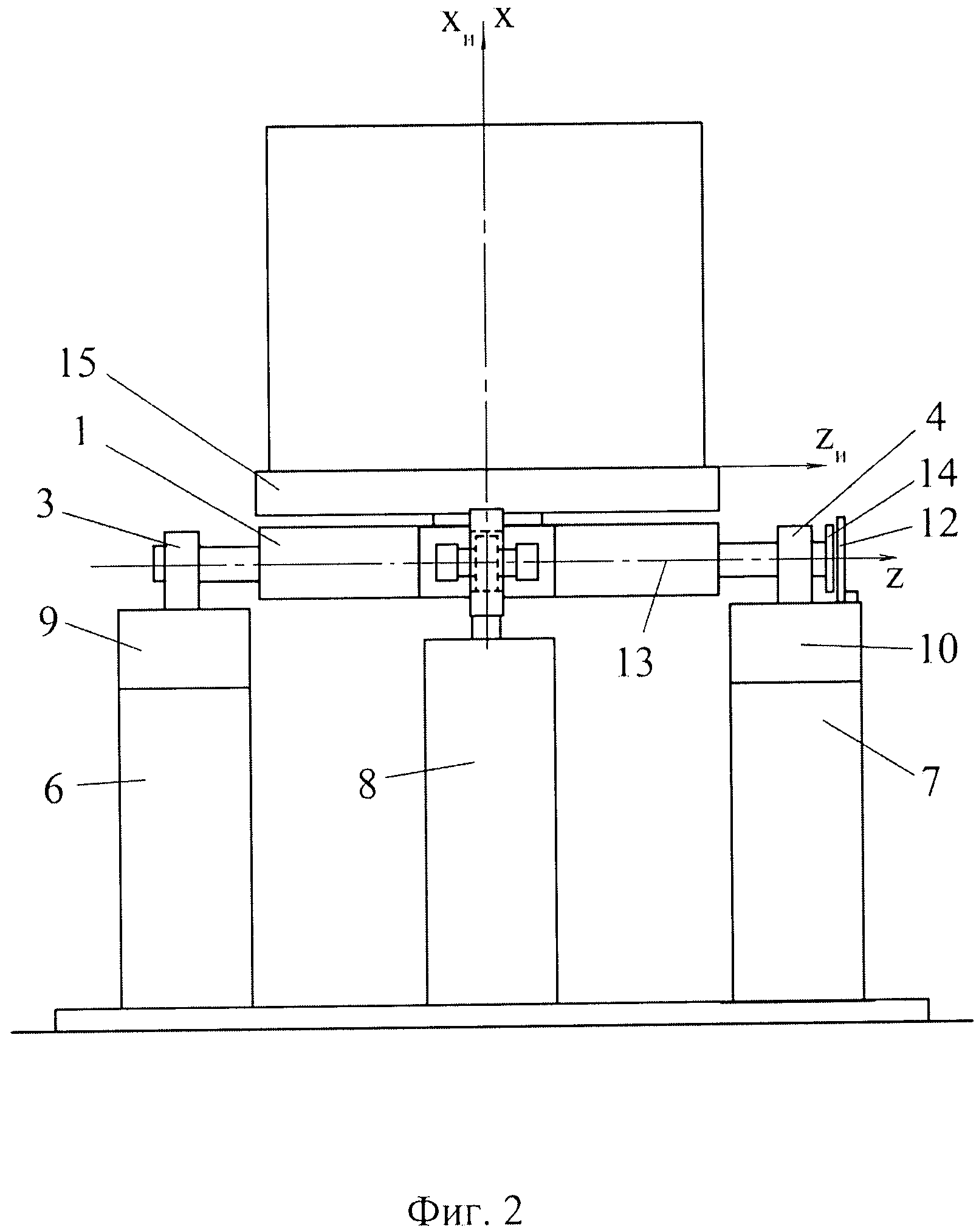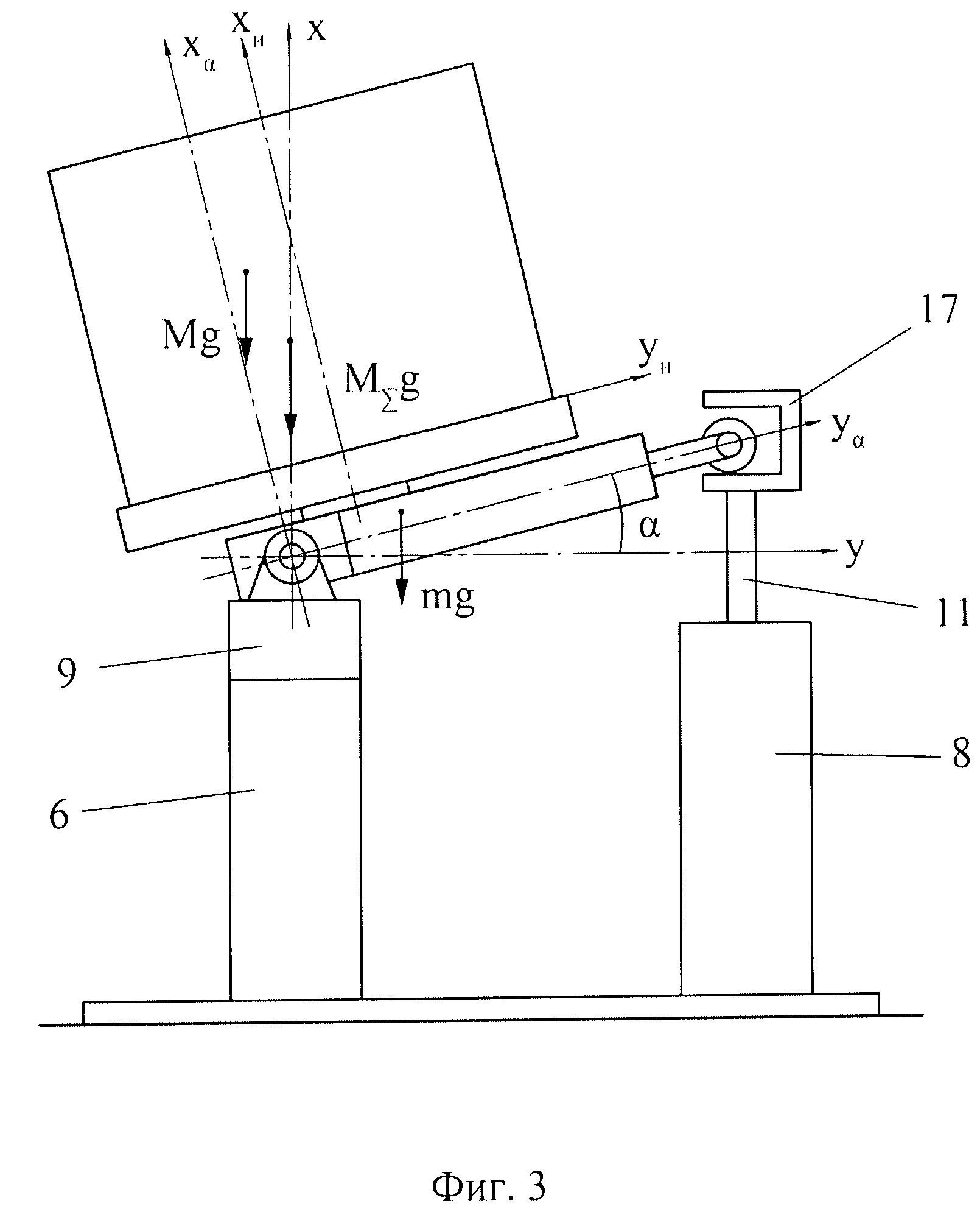 1. Способ определения массы и положения центра масс изделия, заключающийся в том, что изделие устанавливают на переходник, шарнирно установленный на трех опорах, и уравновешивают изделие с переходником путем приведения в состояние неустойчивого равновесия относительно оси наклона, проходящей через шарниры первых двух опор, отличающийся тем, что изделие устанавливают на переходник с заведомым смещением от оси наклона, уравновешивание изделия с переходником производят путем наклона переходника с изделием с помощью привода третьей опоры при различных положениях изделия относительно оси наклона, при достижении состояния неустойчивого равновесия измеряют угол наклона переходника и производят измерение массы изделия с помощью силоизмерительных датчиков в составе первых двух опор. 2. Способ по п.1, отличающийся тем, что изделие устанавливают на переходник в трех положениях, в которых переход из одного в другое производят поворотом изделия относительно оси, перпендикулярной плоскости, в которой находится ось наклона. 3. Способ по п.1, отличающийся тем, что в качестве начала отсчета угла наклона выбирают горизонтальное положение переходника, а измерение угла наклона производят в положении переходника, при котором происходит его отрыв от третьей опоры. 4. Устройство для определения массы и положения центра масс изделия, содержащее переходник для установки изделия, шарнирно соединенный с тремя опорами, две из которых снабжены силоизмерительными элементами, а третья имеет подвижную часть, выполненную с возможностью вертикального перемещения посредством привода, отличающееся тем, что устройство снабжено датчиком наклона переходника относительно оси, проходящей через шарниры первых двух опор, а на переходнике имеется поворотная платформа, ось поворота которой является скрещивающейся с осью наклона и отстоящей от нее на заданном расстоянии. 5. Устройство по п.4, отличающееся тем, что ось поворота платформы и ось наклона платформы скрещиваются под прямым углом. 6. Устройство по п.4, отличающееся тем, что датчик наклона переходника установлен соосно с осью наклона. 7. Устройство по п.4, отличающееся тем, что силоизмерительные элементы выполнены в виде тензодатчиков.